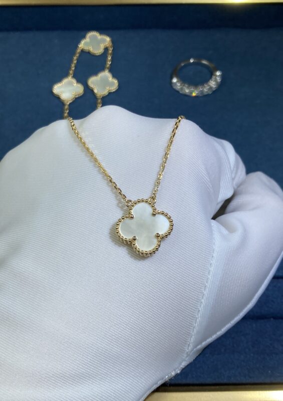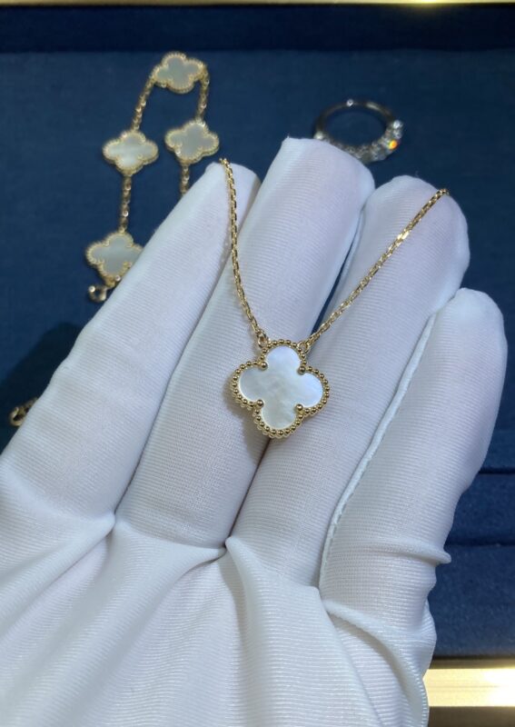VCA Medium White Shell Clover Necklace, Yellow Gold