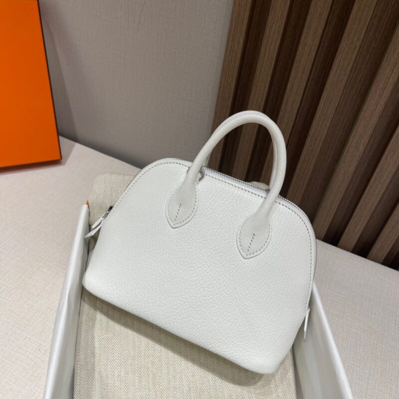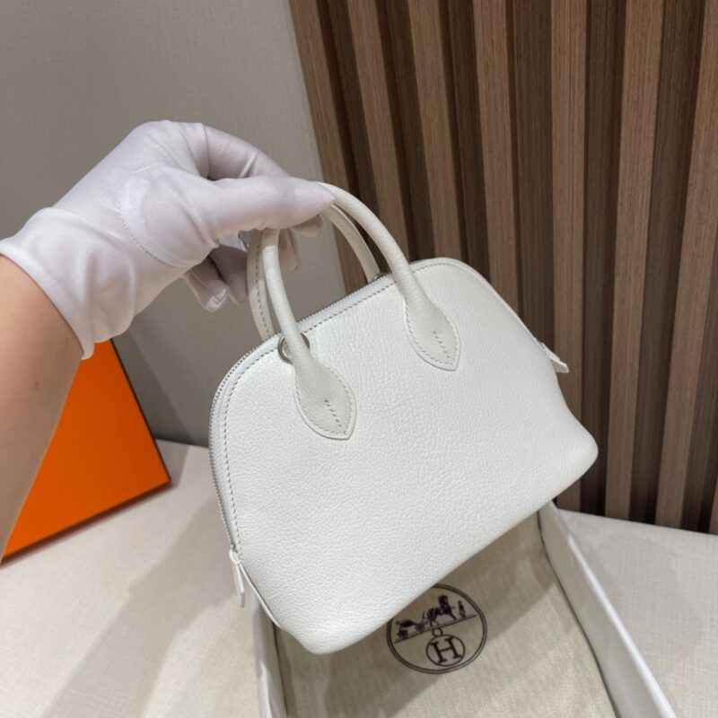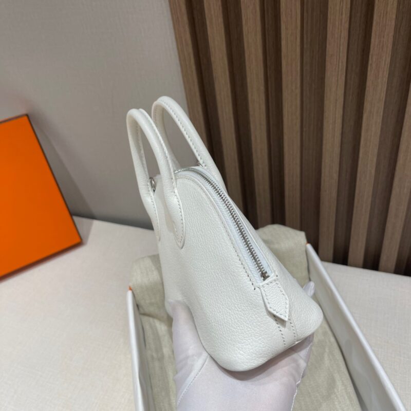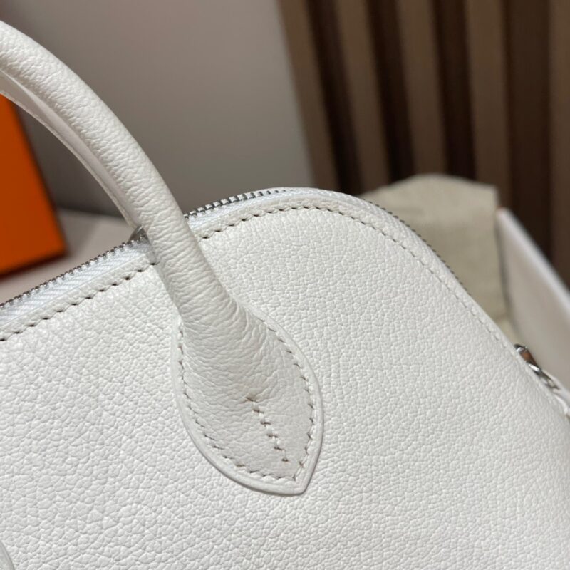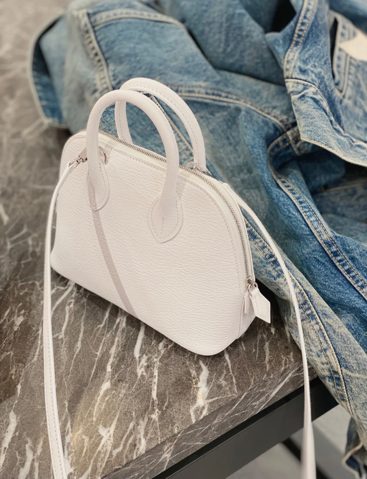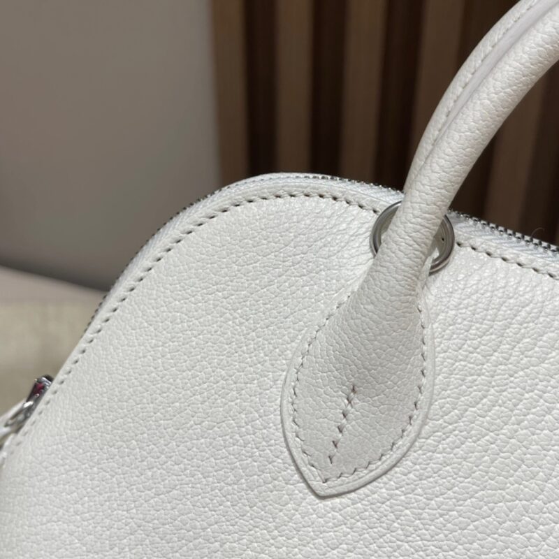 Bolide mini goat leather (Chevre Mysore). 01 Pure White inner spell 0M Marsala Brown.