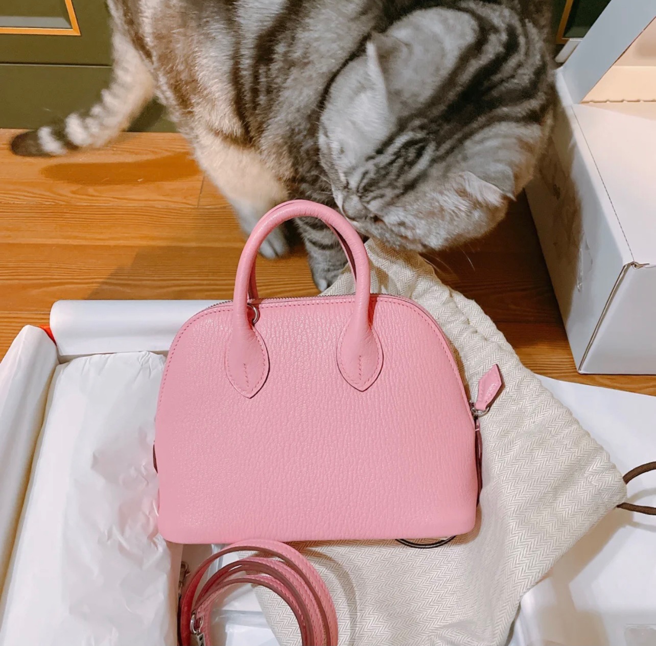 Bolide mini 18cm goat leather (Chèvre Mysore) 1Q Candy Pink. Rose Confetti.