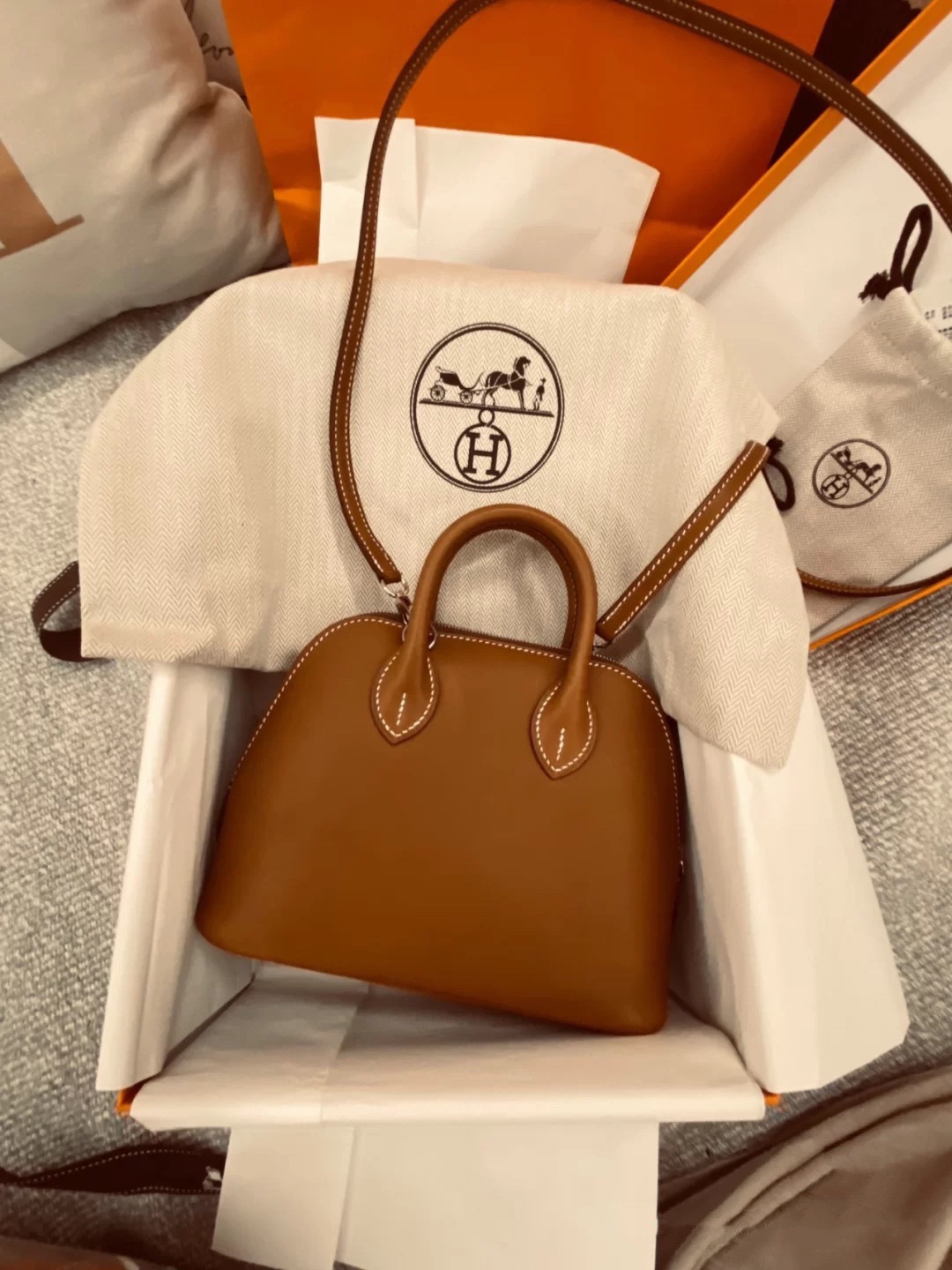 Mini Bolide 18cm cute little shell bag. The upper body is super awesome, the small body has a large capacity, it is no problem to put down three mobile phones, and the length of the shoulder strap is also very. No need to find ways to shorten the shoulder strap. Goat Skin Mysore. 37 Gold Brown
