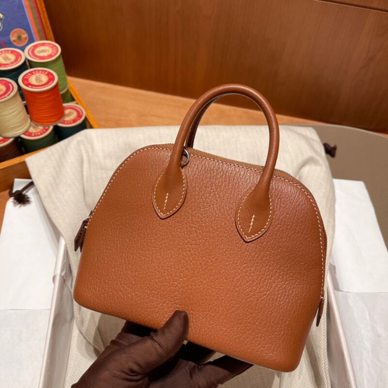 Mini Bolide 18cm cute little shell bag. The upper body is super awesome, the small body has a large capacity, it is no problem to put down three mobile phones, and the length of the shoulder strap is also very. No need to find ways to shorten the shoulder strap. Goat Skin Mysore. 37 Gold Brown