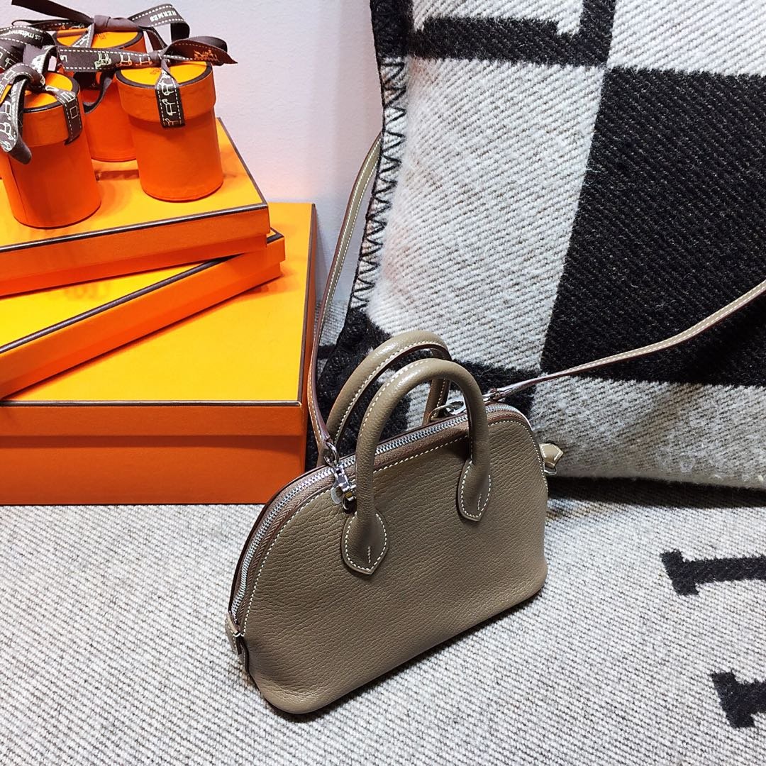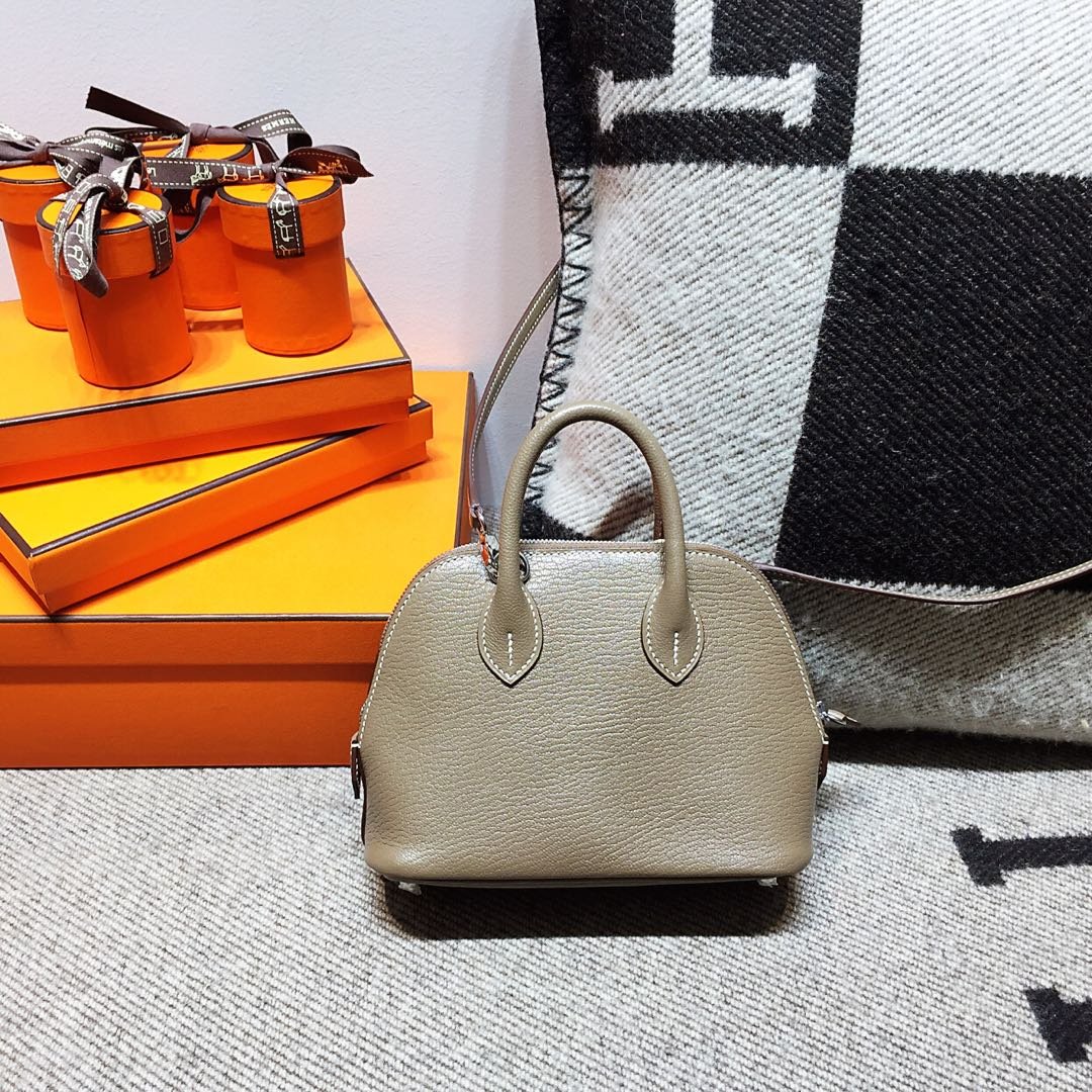 H Bolide Mini goatskin CK18 Etoupe elephant gray silver buckle one of the five classics national gray spot~~.