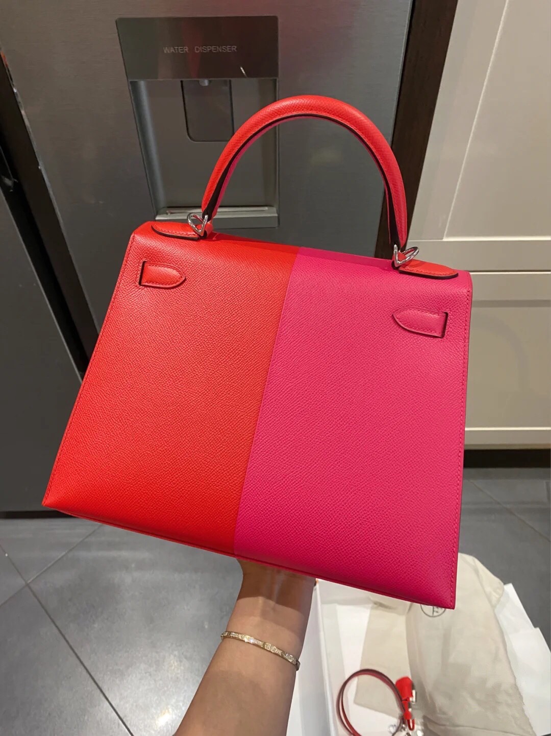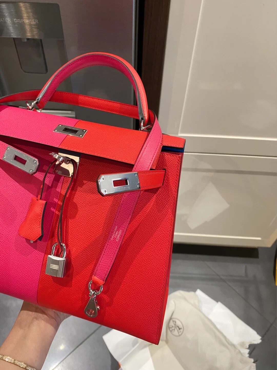 Kelly Casaque 28 Epsom in Rose Extreme&Rouge de Coeur&Bleu Zanzibar