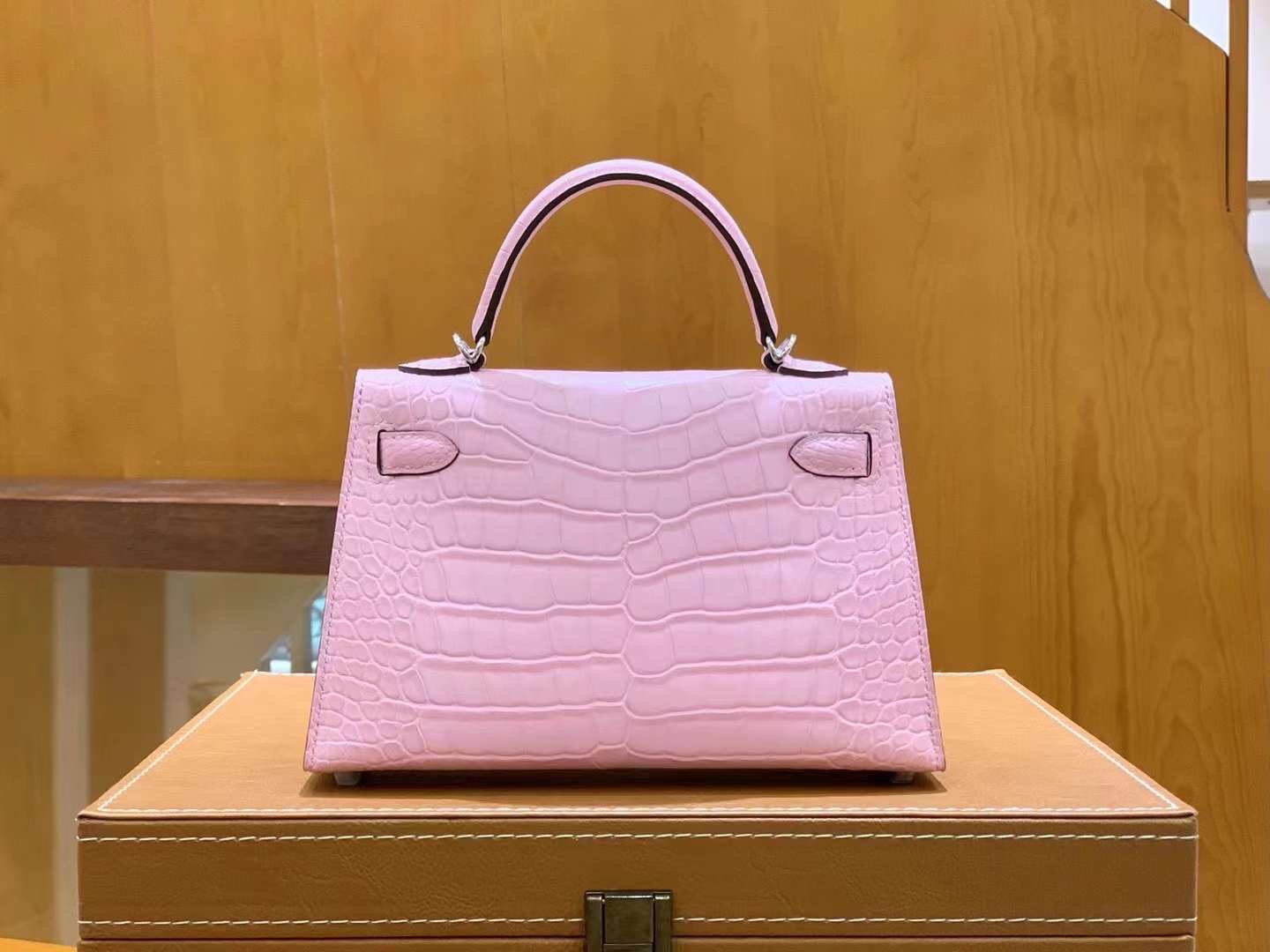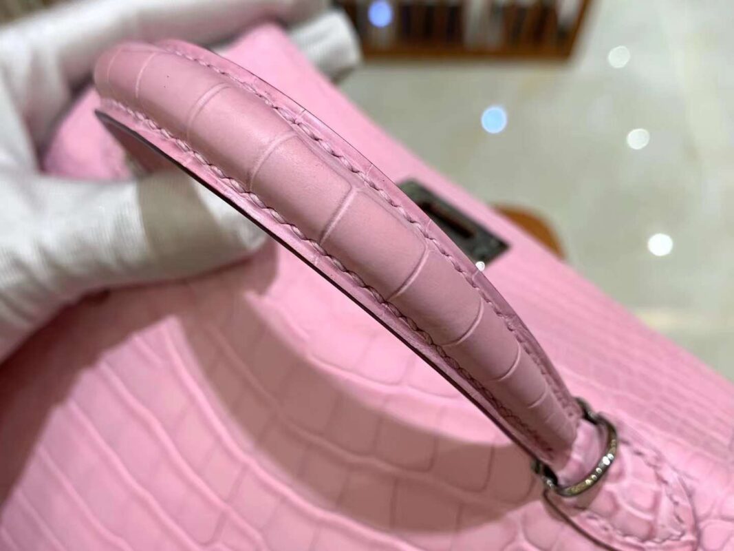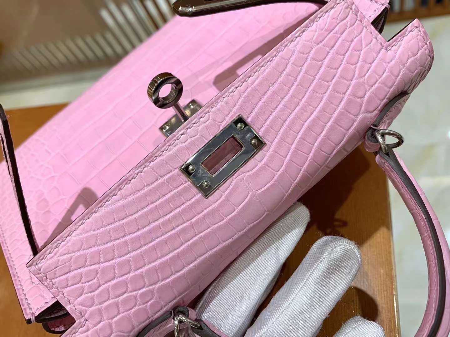 Mini Kelly 19 American Crocodile in Sakura Pink