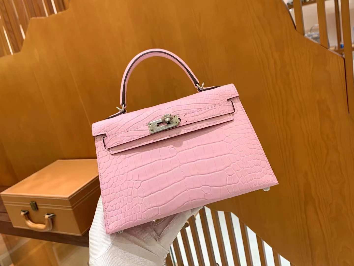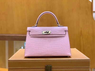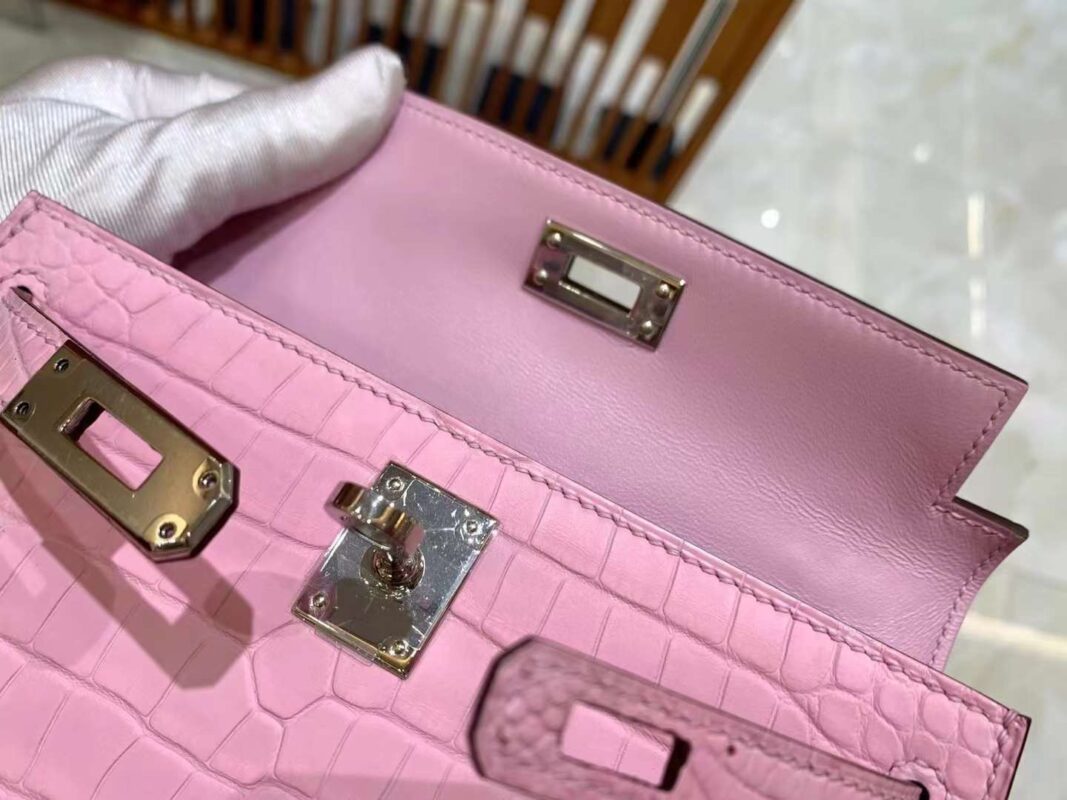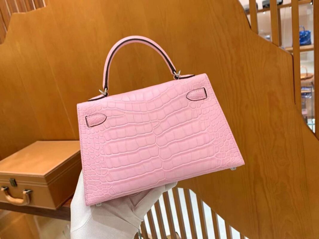 Mini Kelly 19 American Crocodile in Sakura Pink