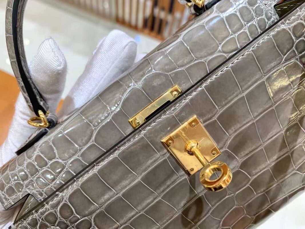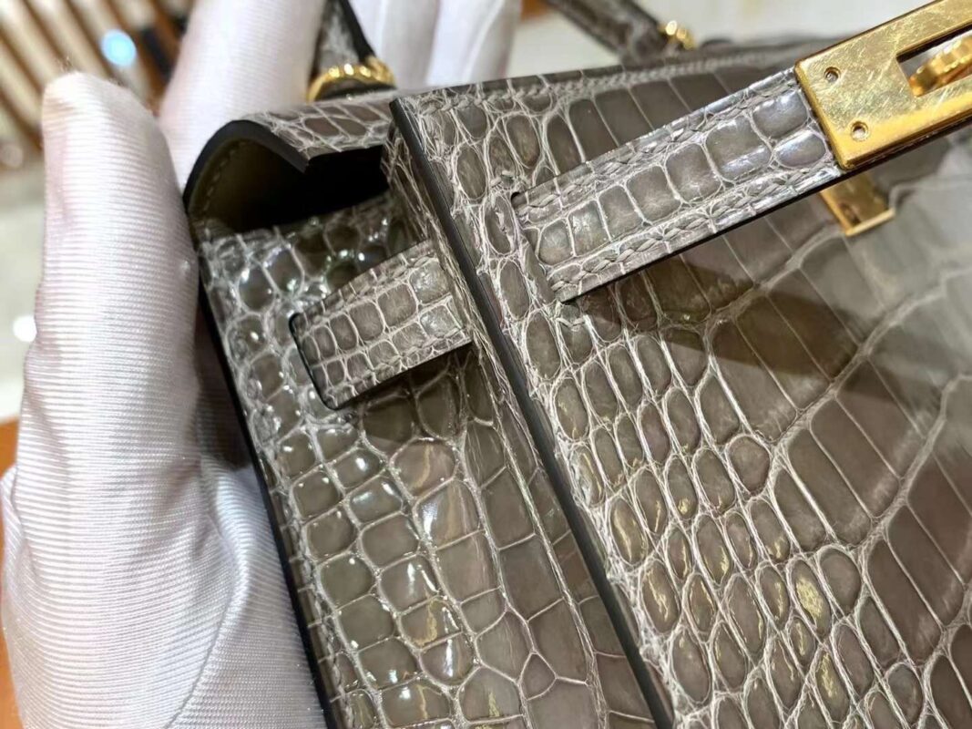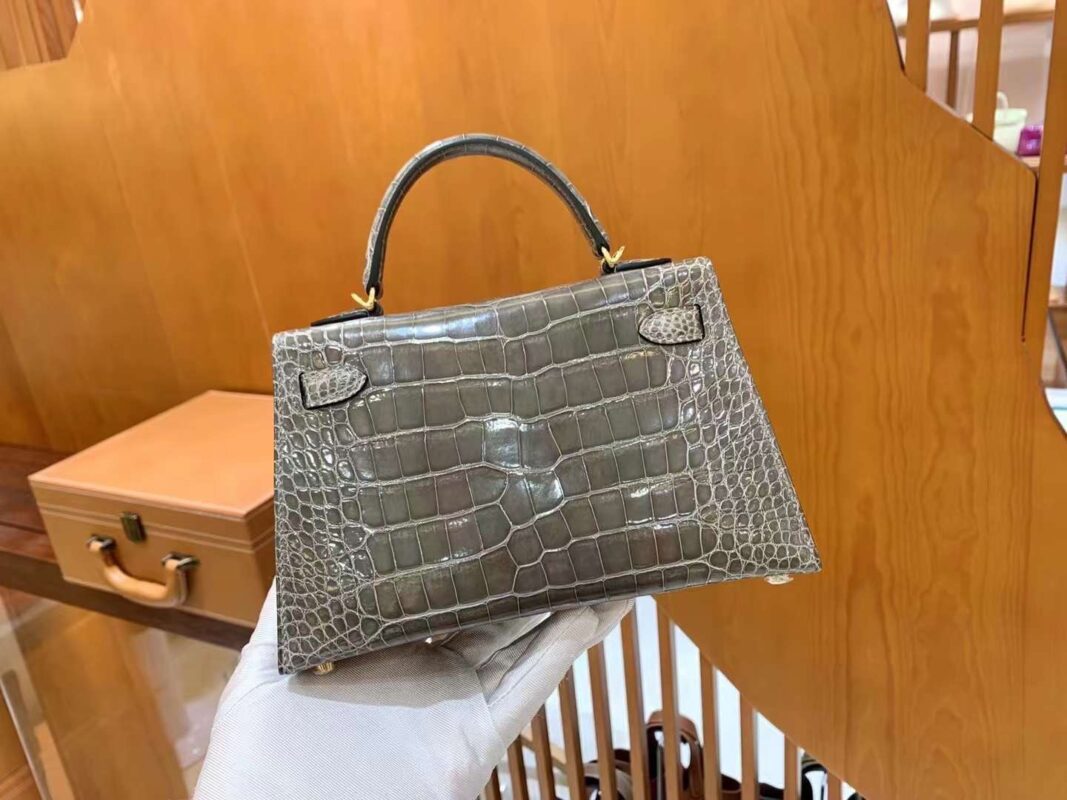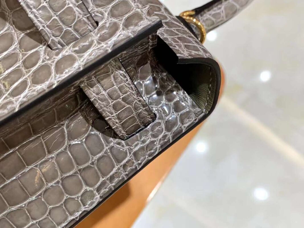 Mini Kelly 19 American Crocodile in Etoupe