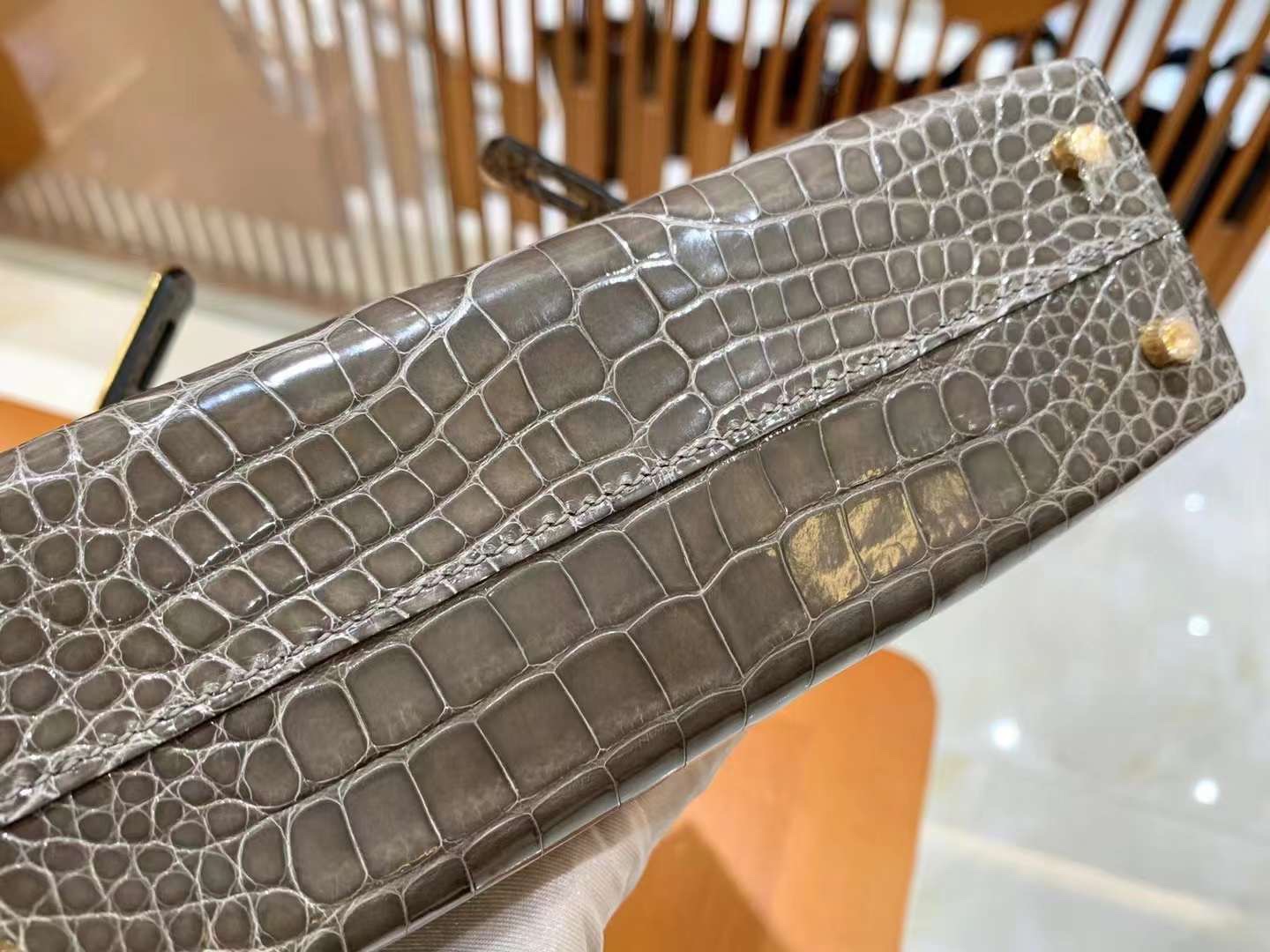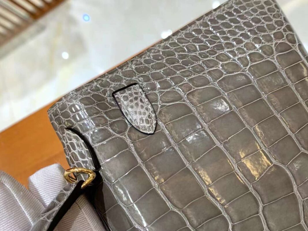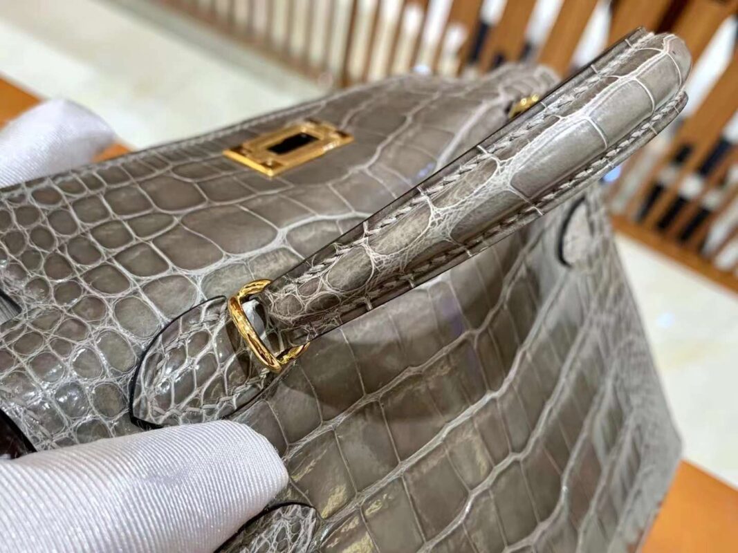 Mini Kelly 19 American Crocodile in Etoupe