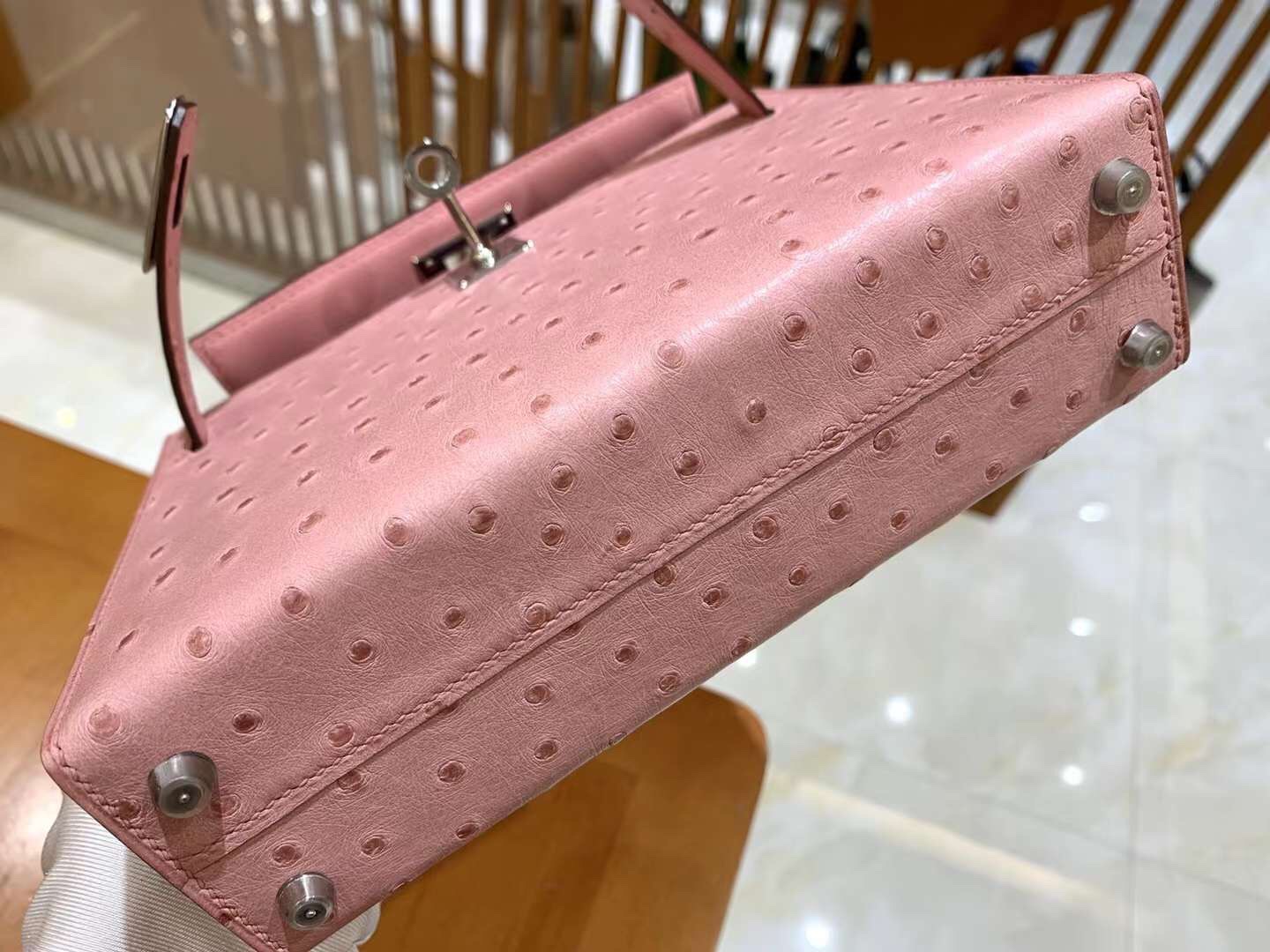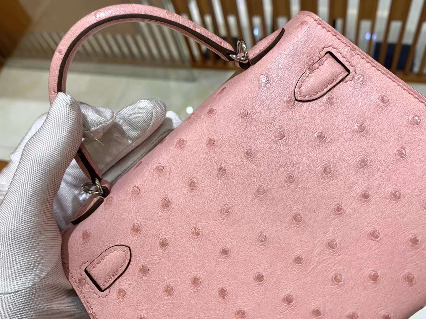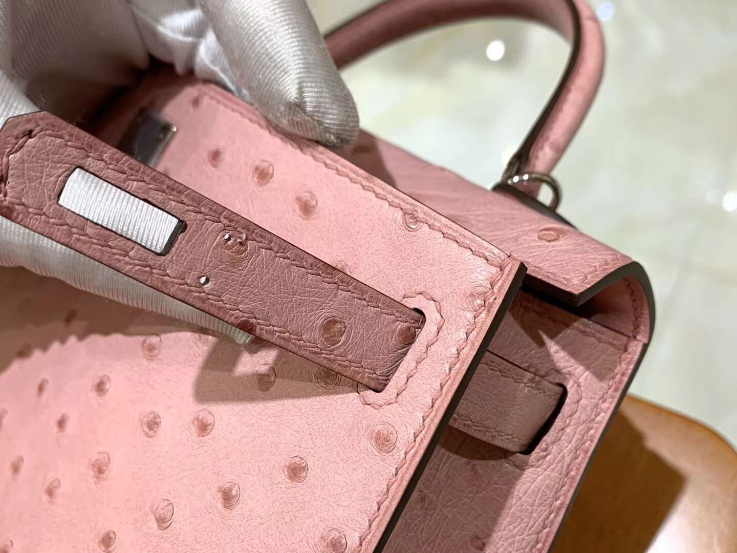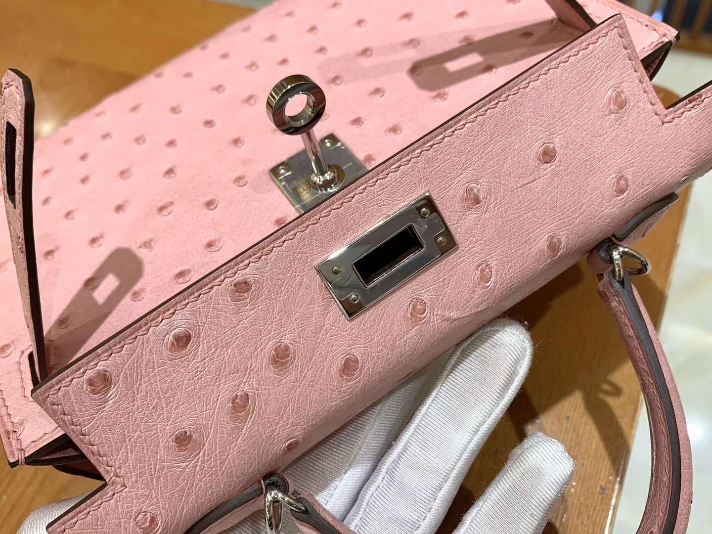 Mini Kelly Ostrich Rose Sakura