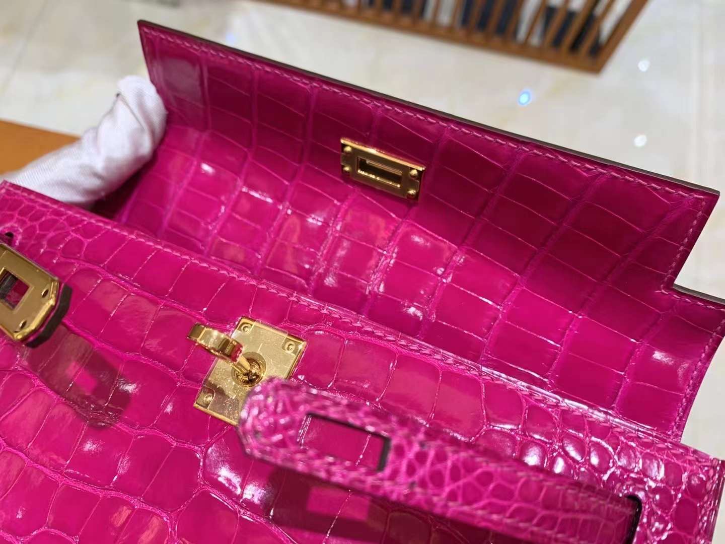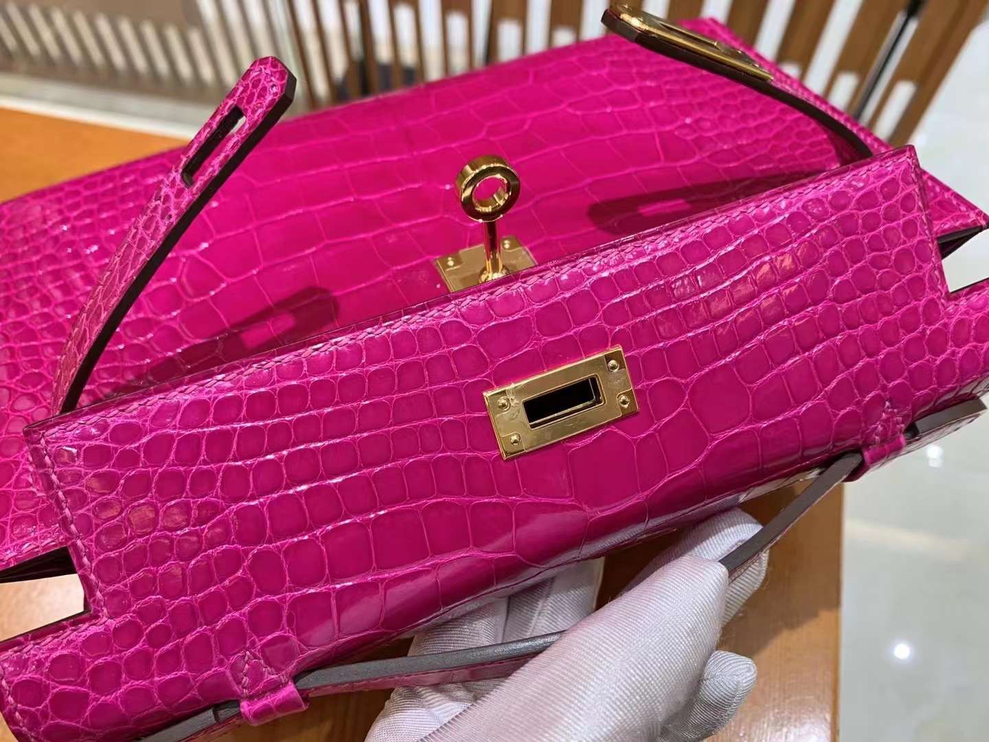 Kelly Pochette American Crocodile Arabian Night Purple