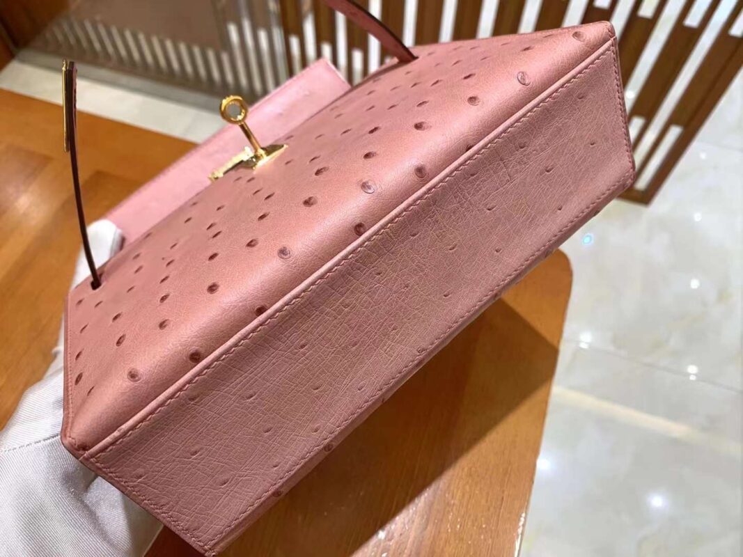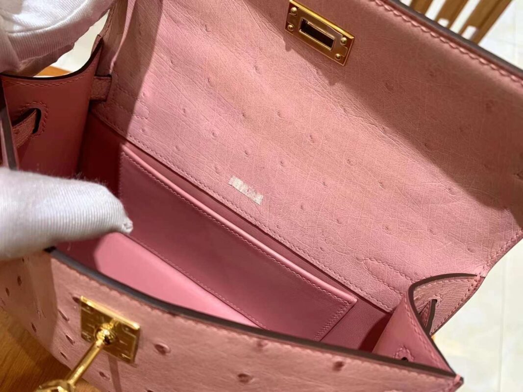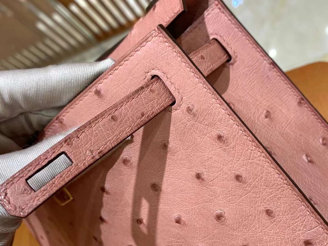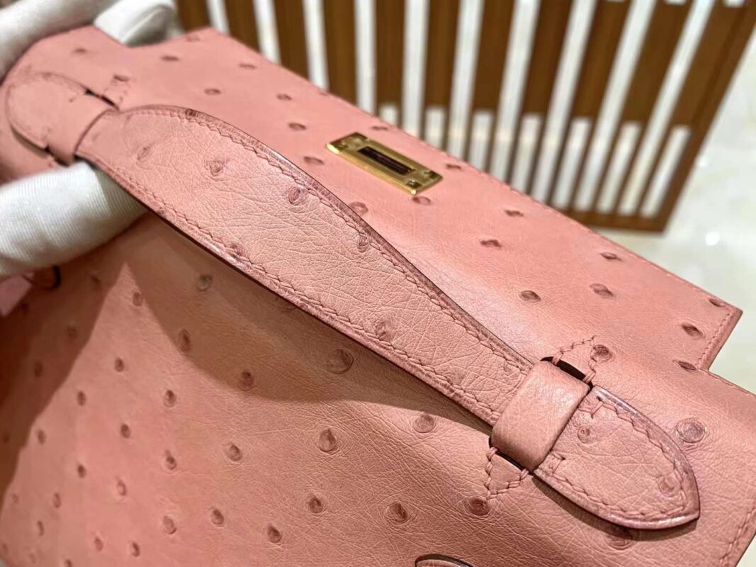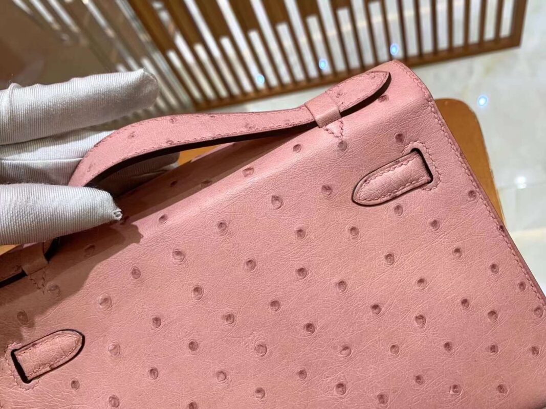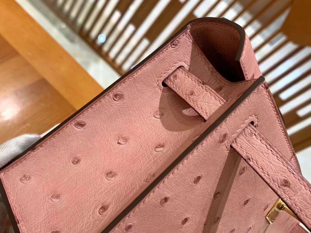 Mini Kelly 22 Ostrich Rose Ceramic