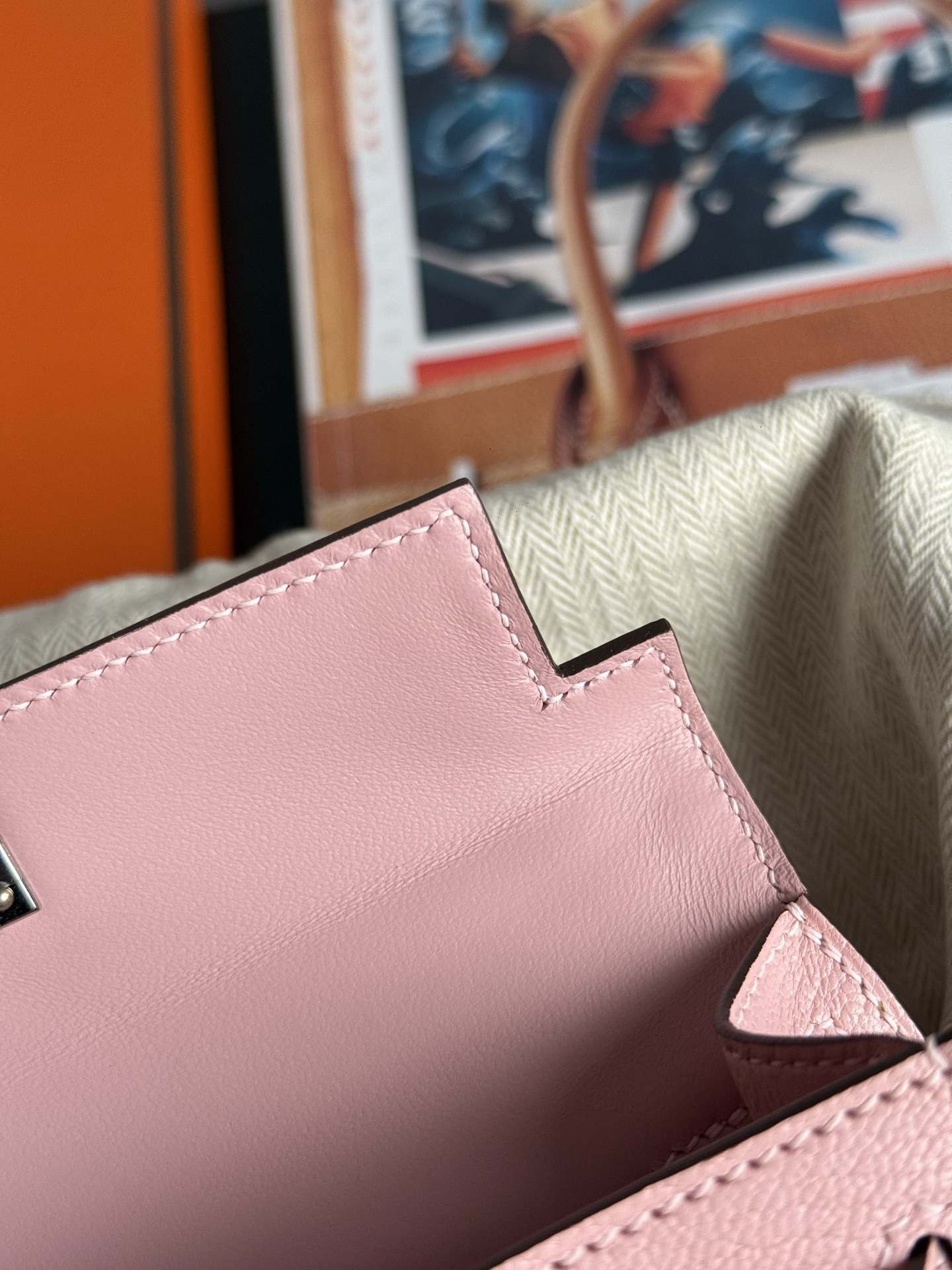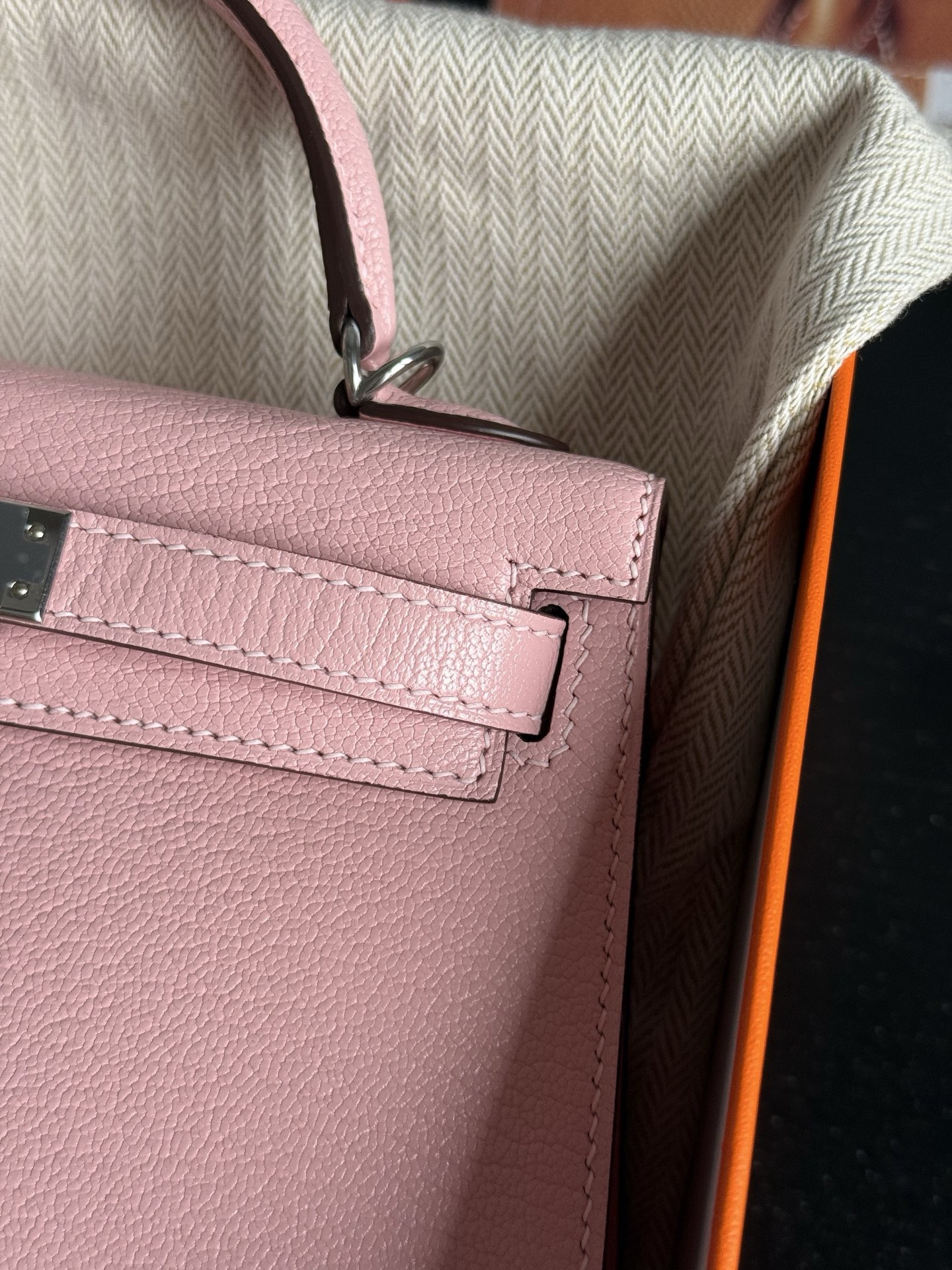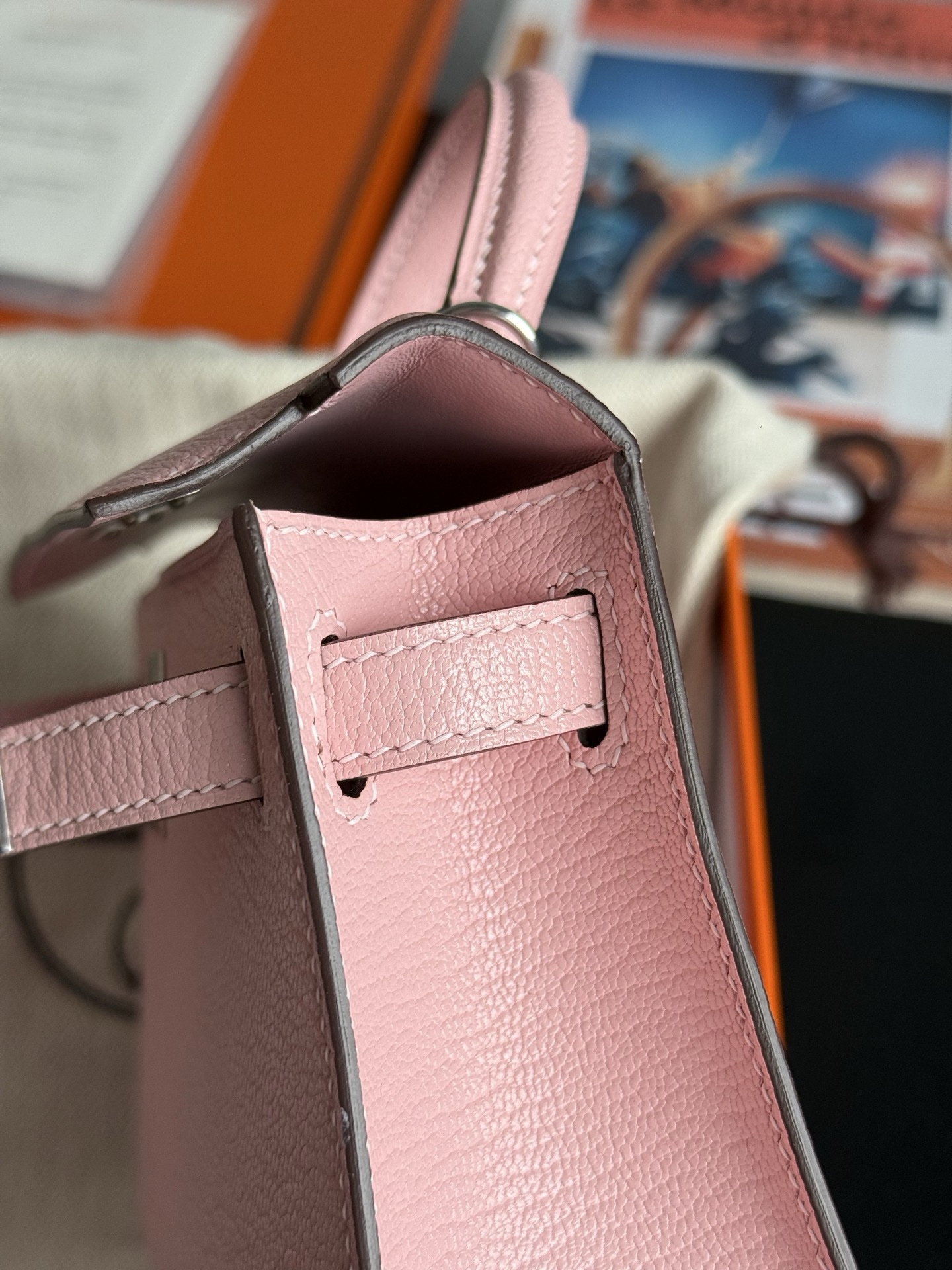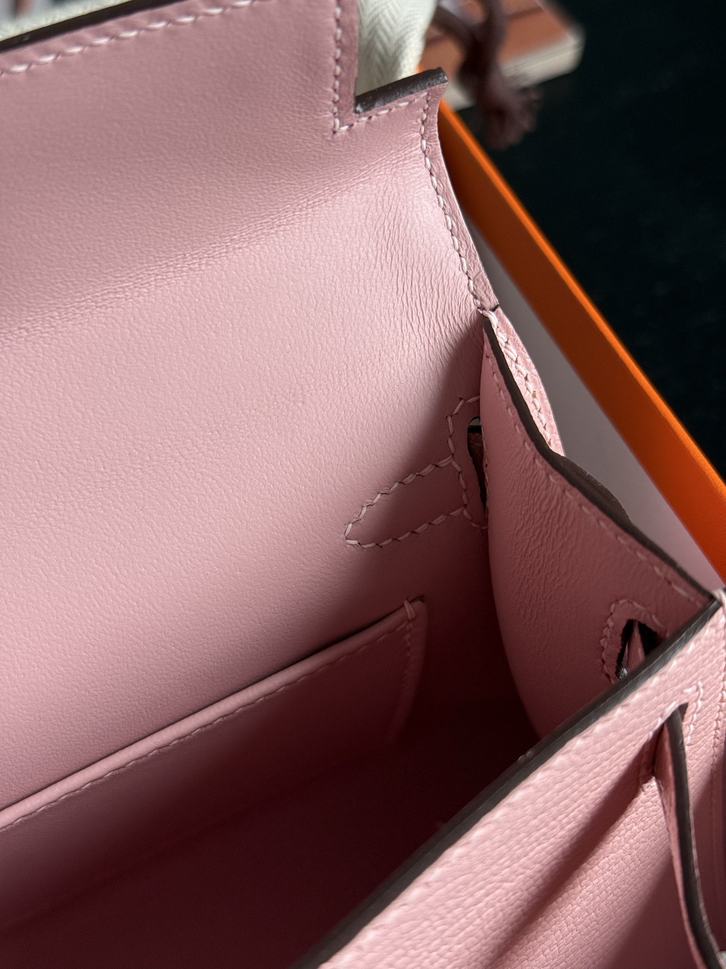 Mini kelly Chevre 3Q Rose Sakura PHW Stamp K