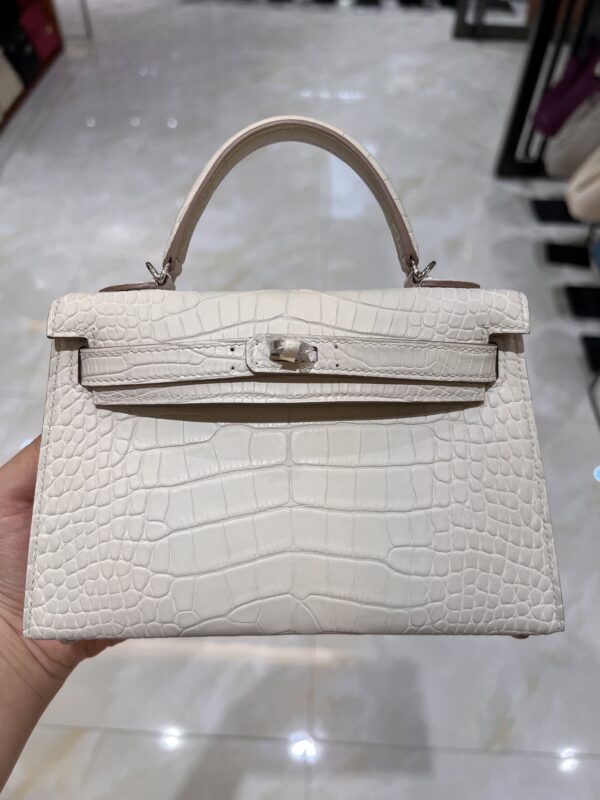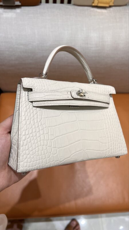 Mini Kelly Craie Matte Alligator PHW