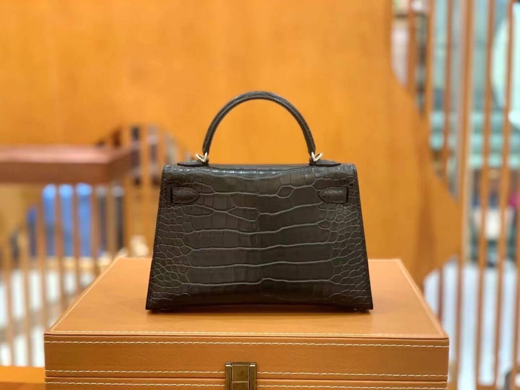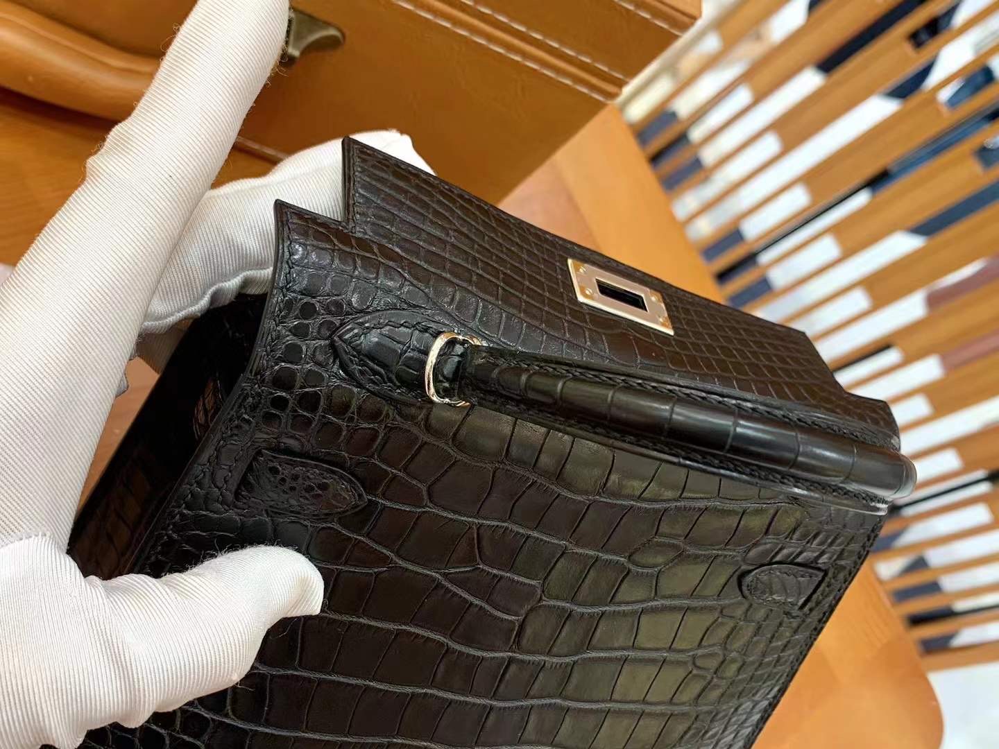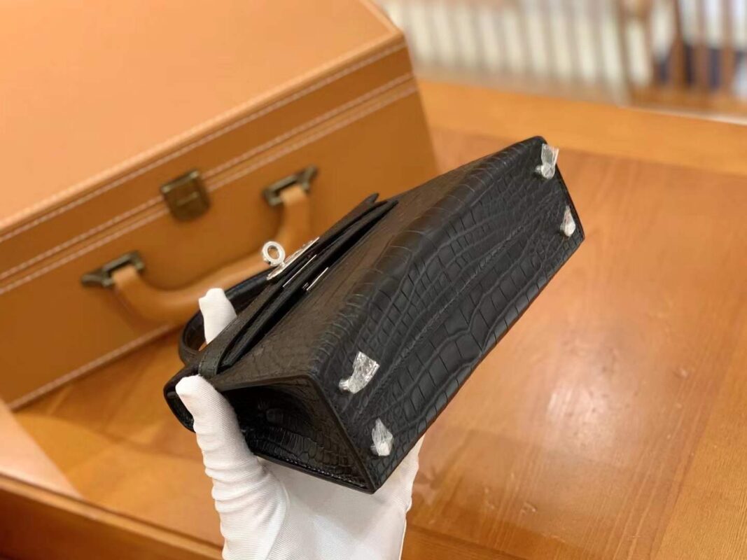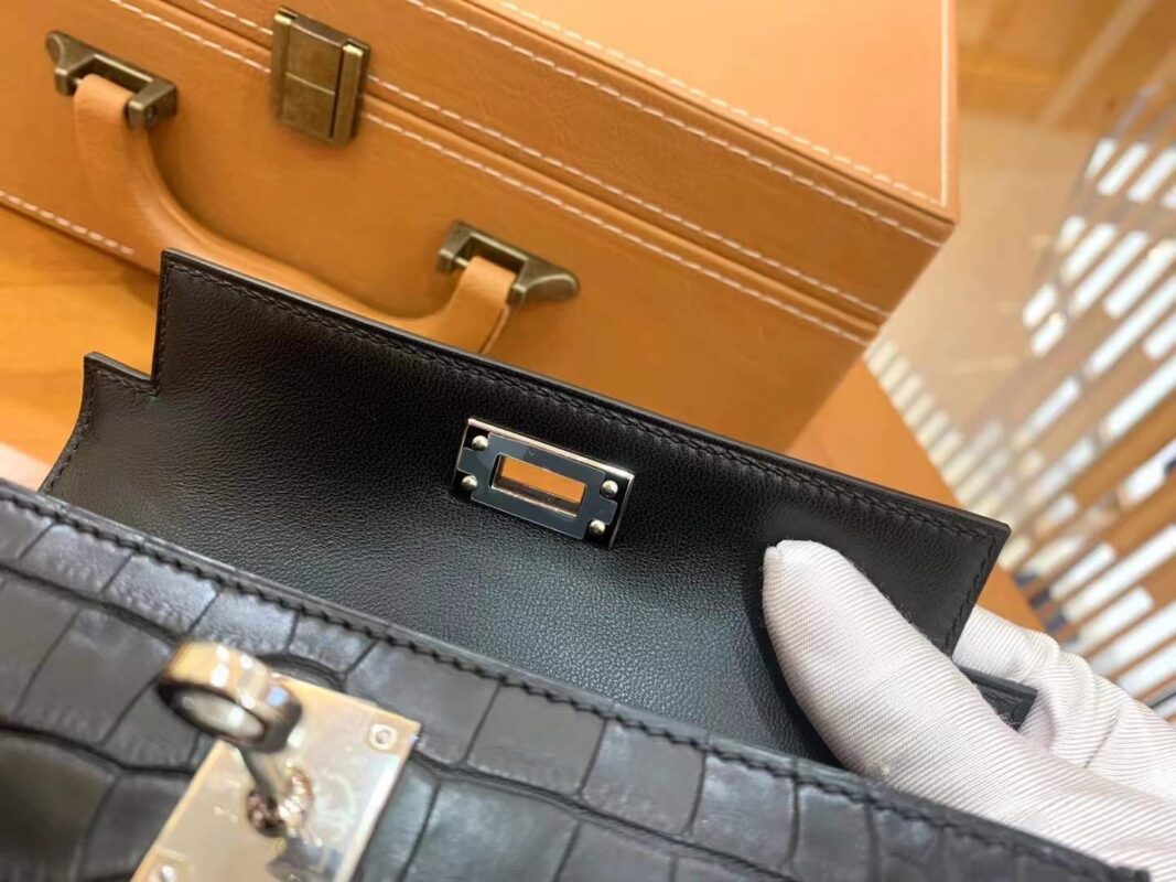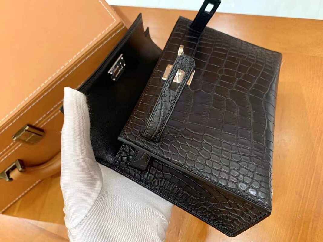Mini Kelly II 19cm Black Silver Imported first-class American crocodile. Fully hand-sewn