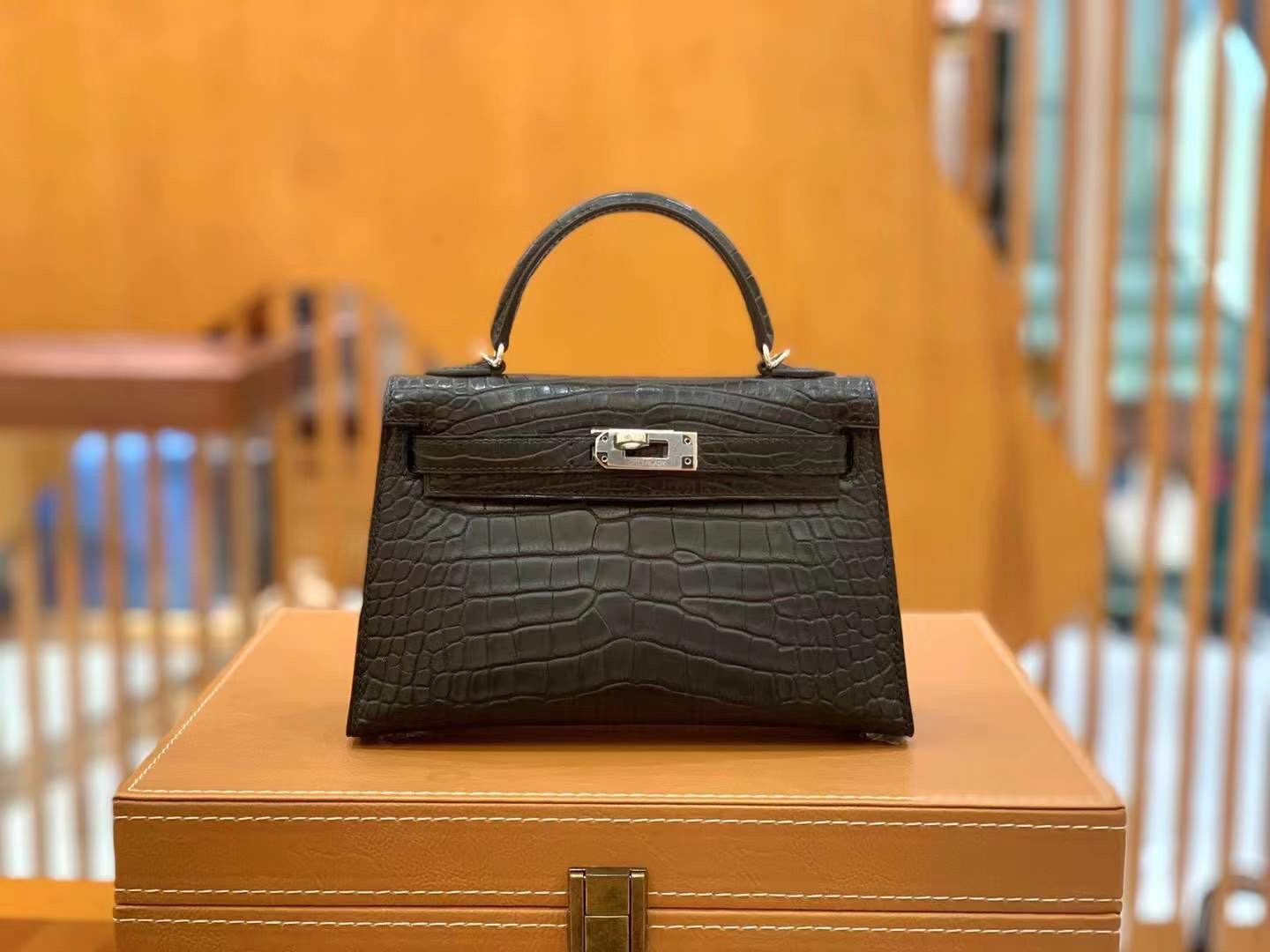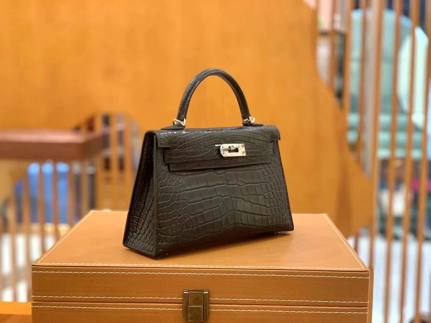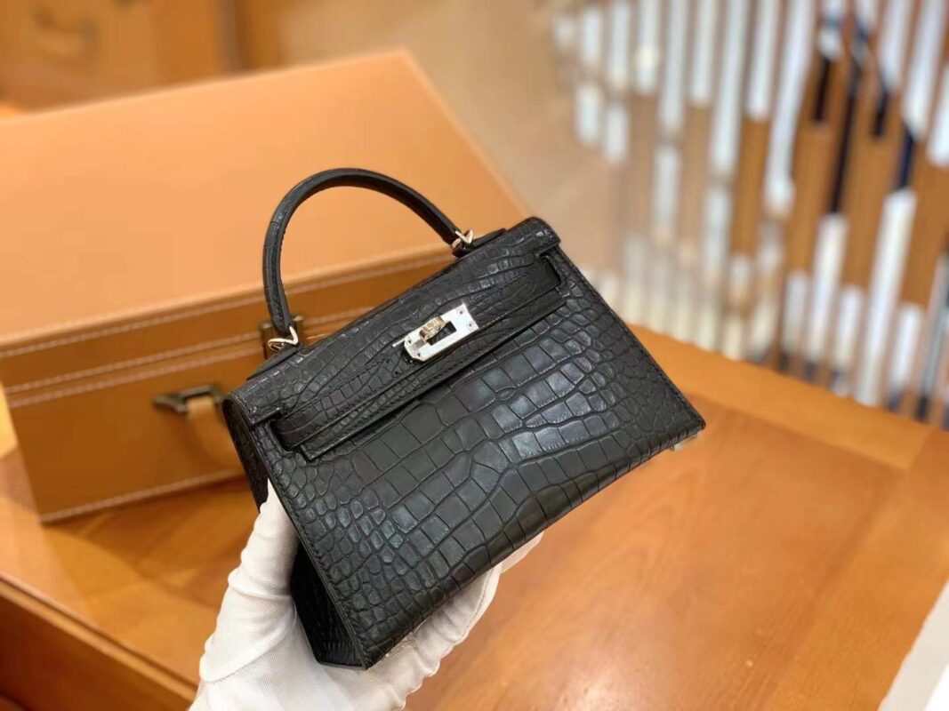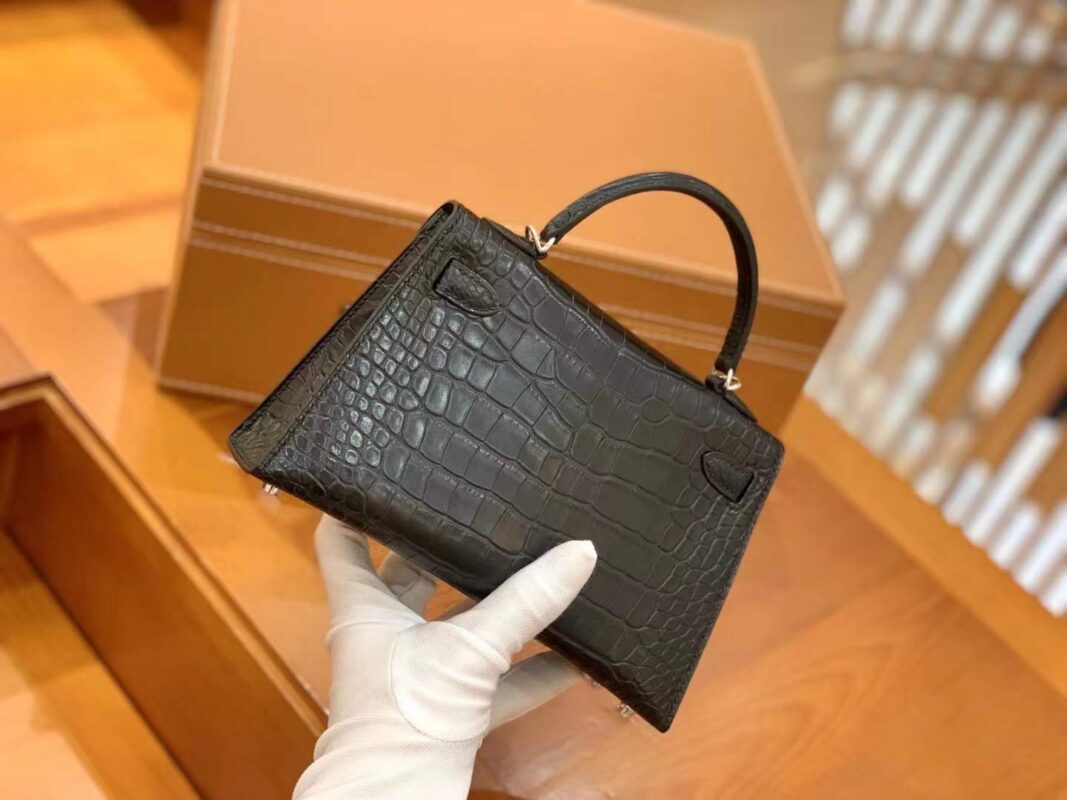 Mini Kelly II 19cm Black Silver Imported first-class American crocodile. Fully hand-sewn