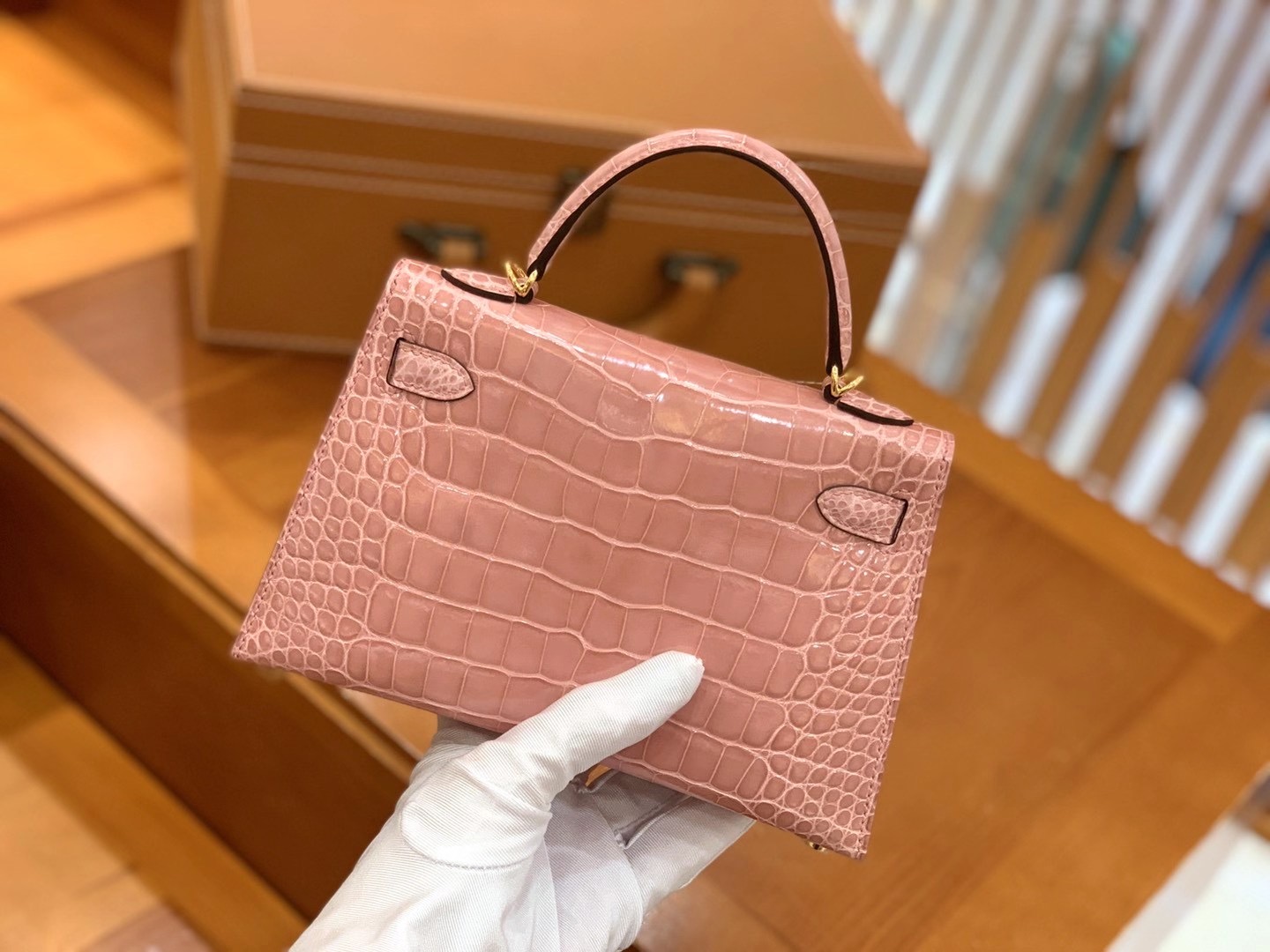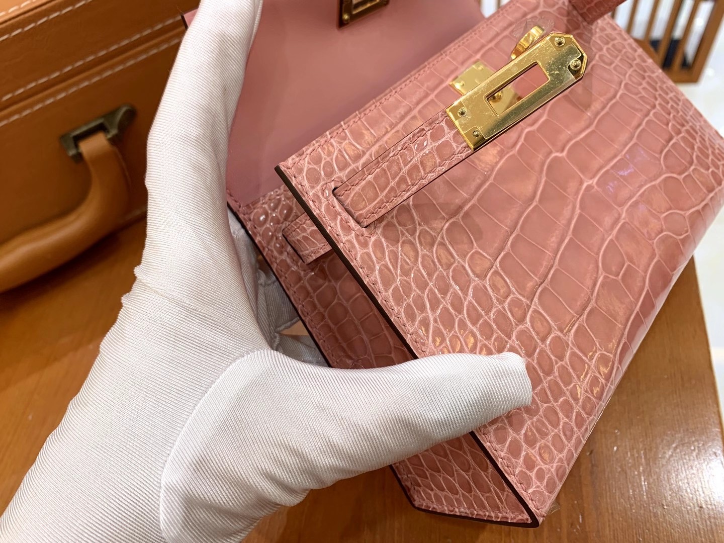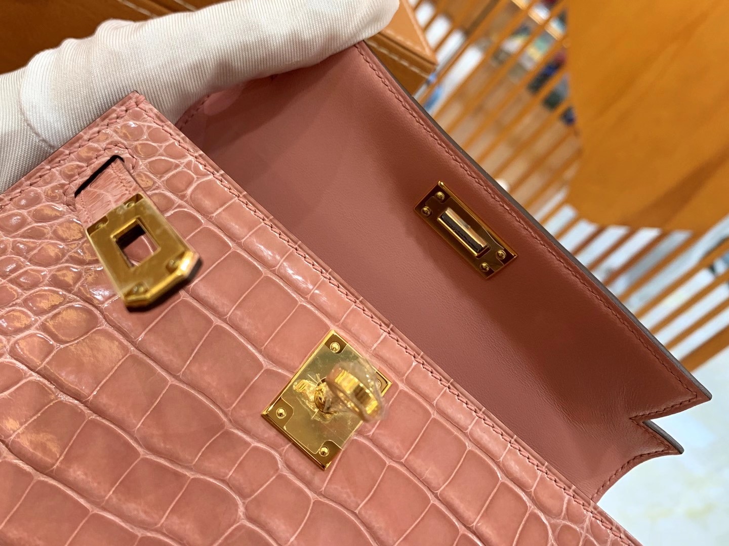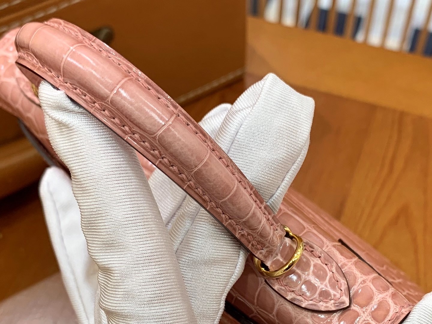 Mini Kelly 2nd Generation 19cm Ceramic Powder Imported first-class American crocodile. Fully hand-sewn