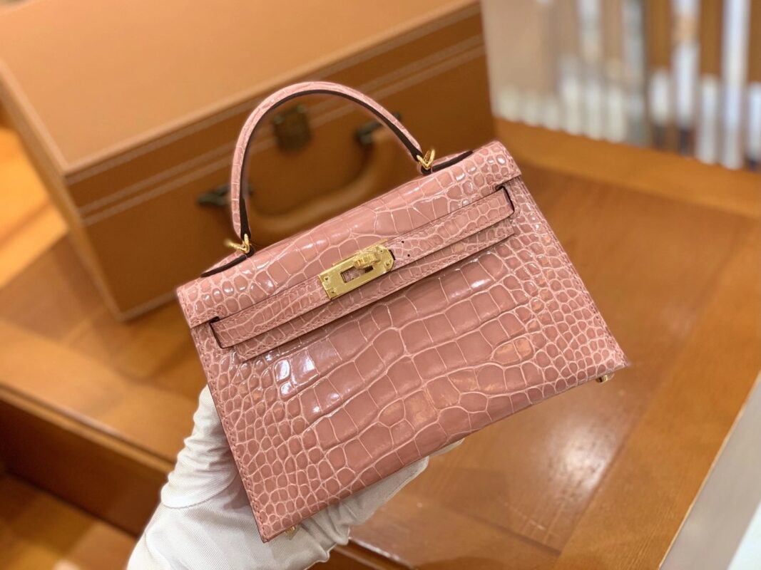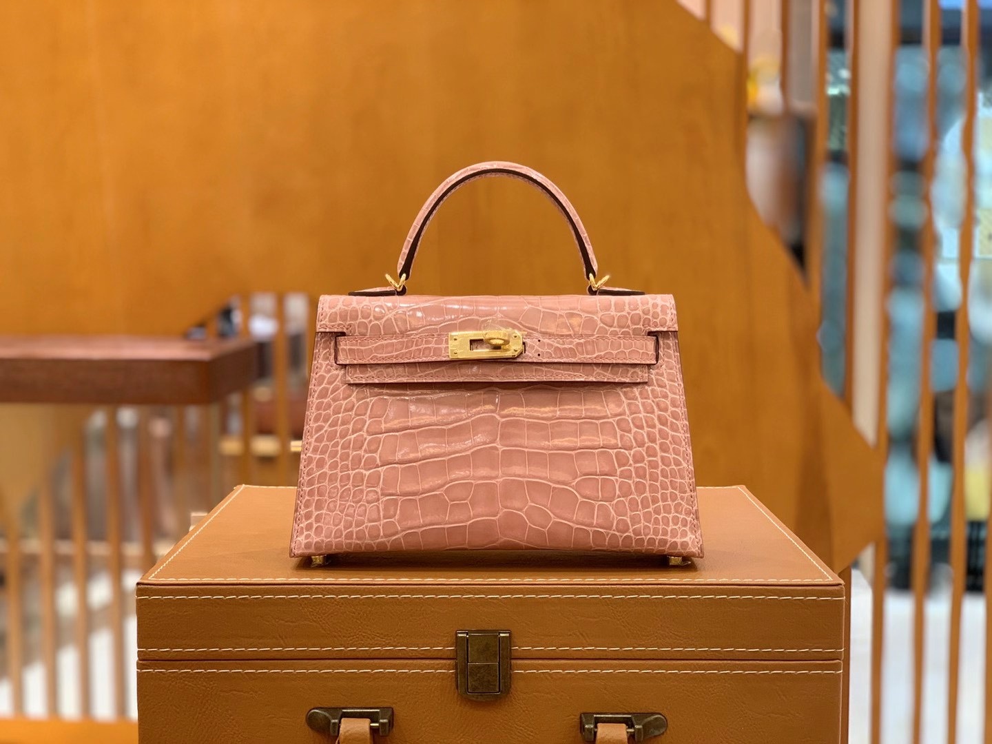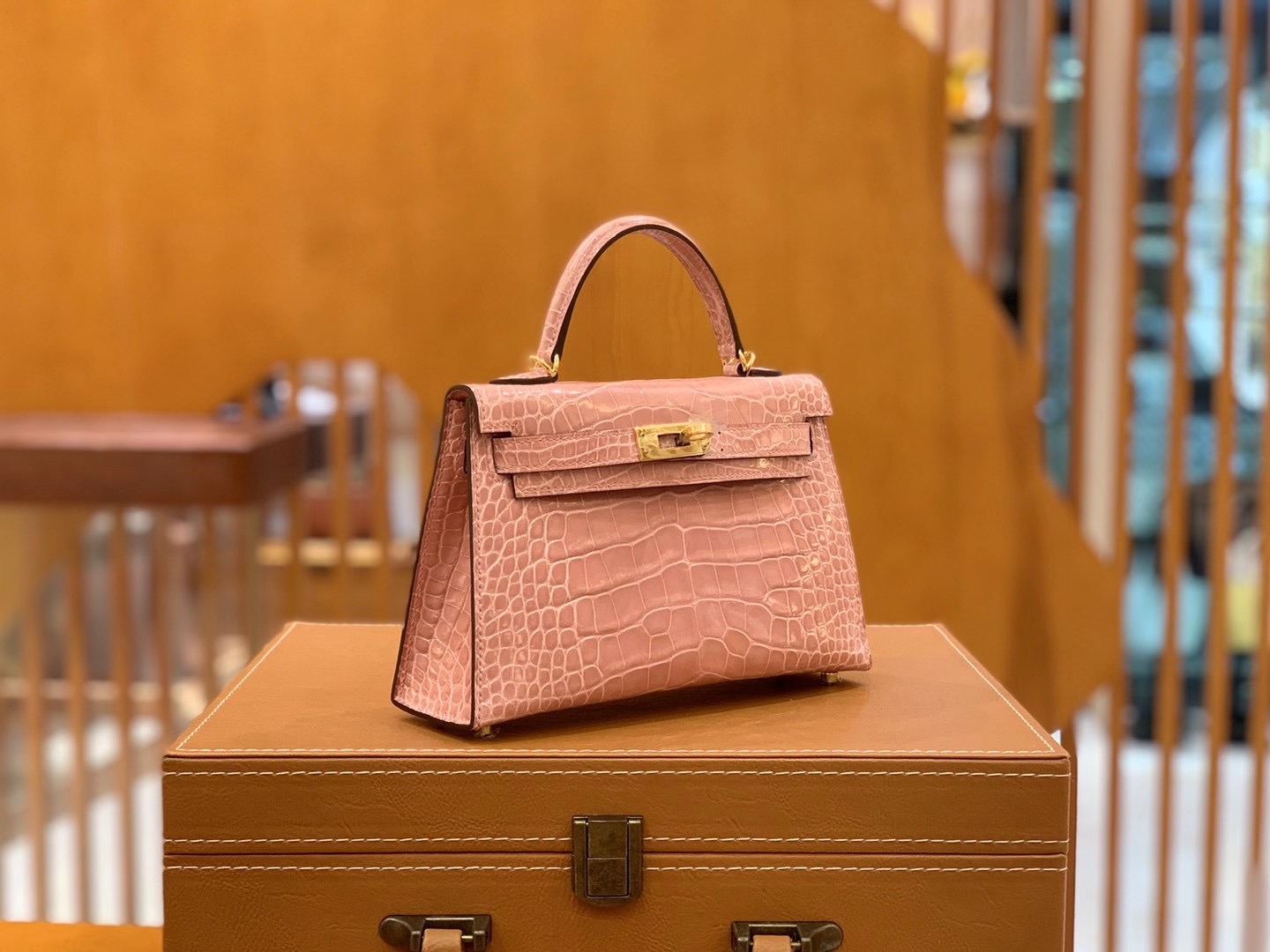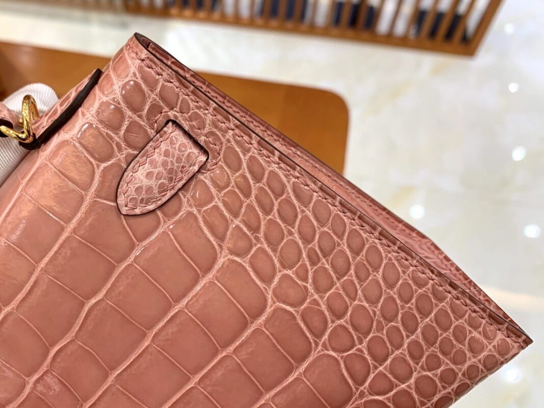 Mini Kelly 2nd Generation 19cm Ceramic Powder Imported first-class American crocodile. Fully hand-sewn