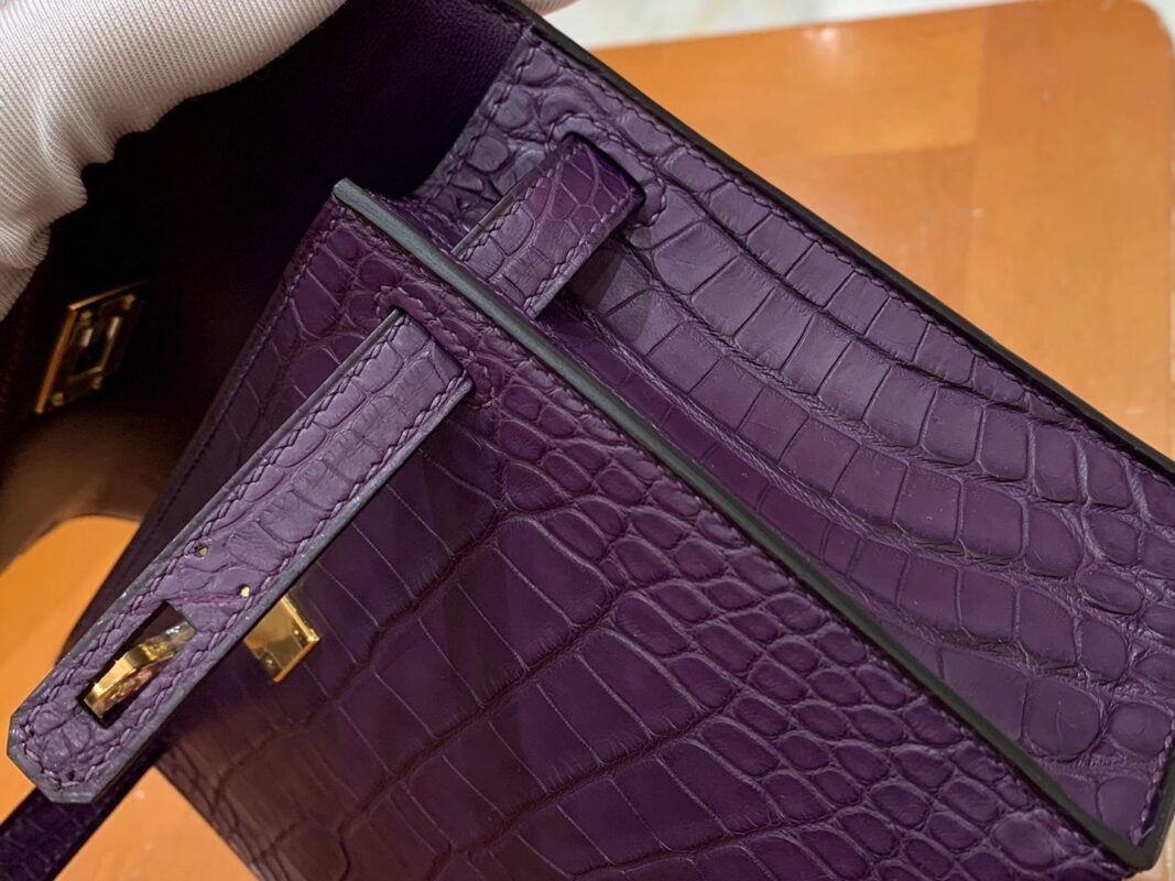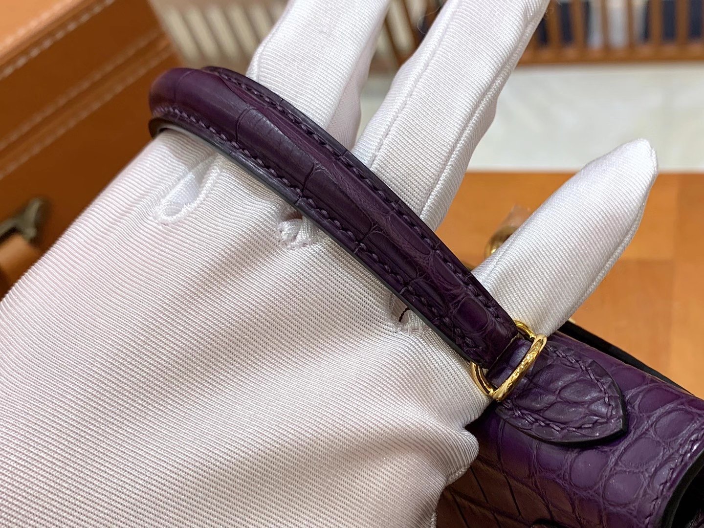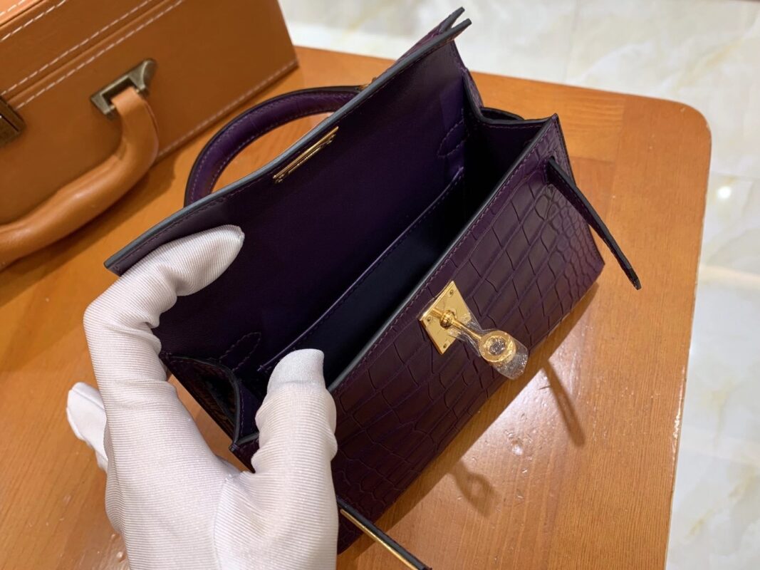 Mini Kelly II 19cm Crystal Purple Imported first-class American crocodile. Fully hand-sewn