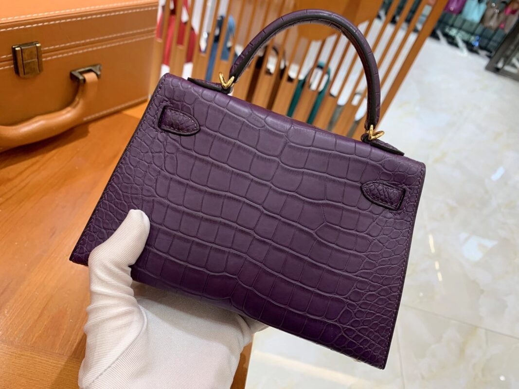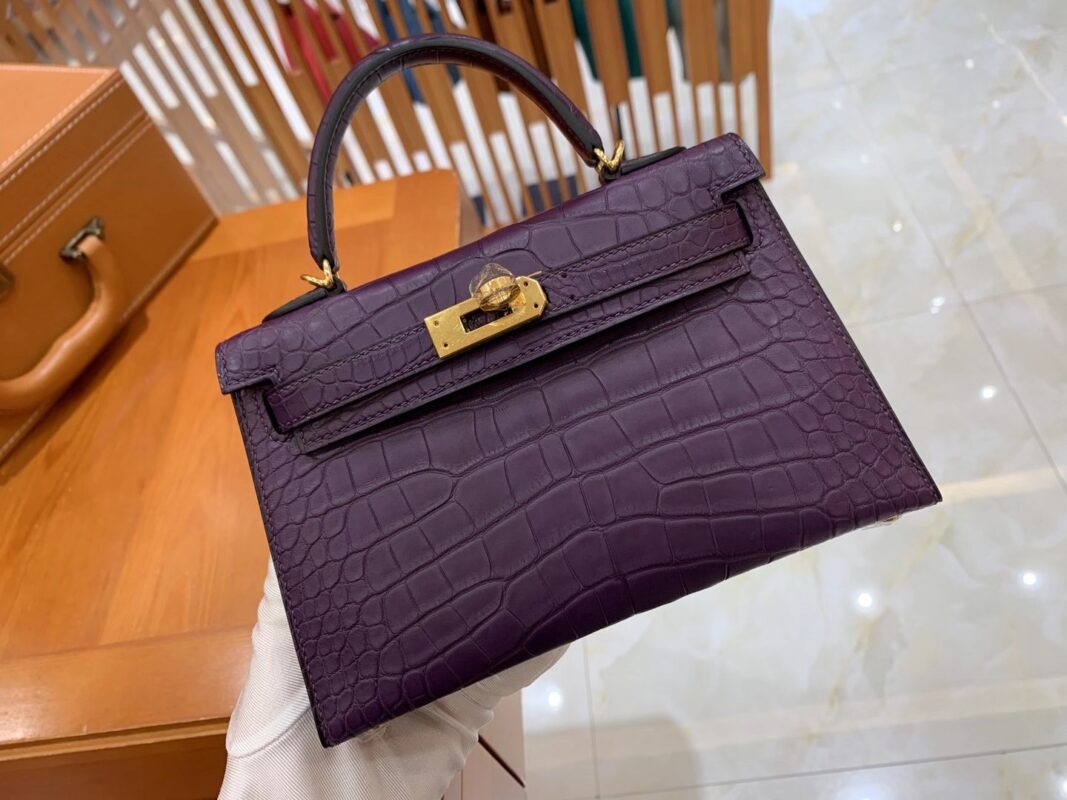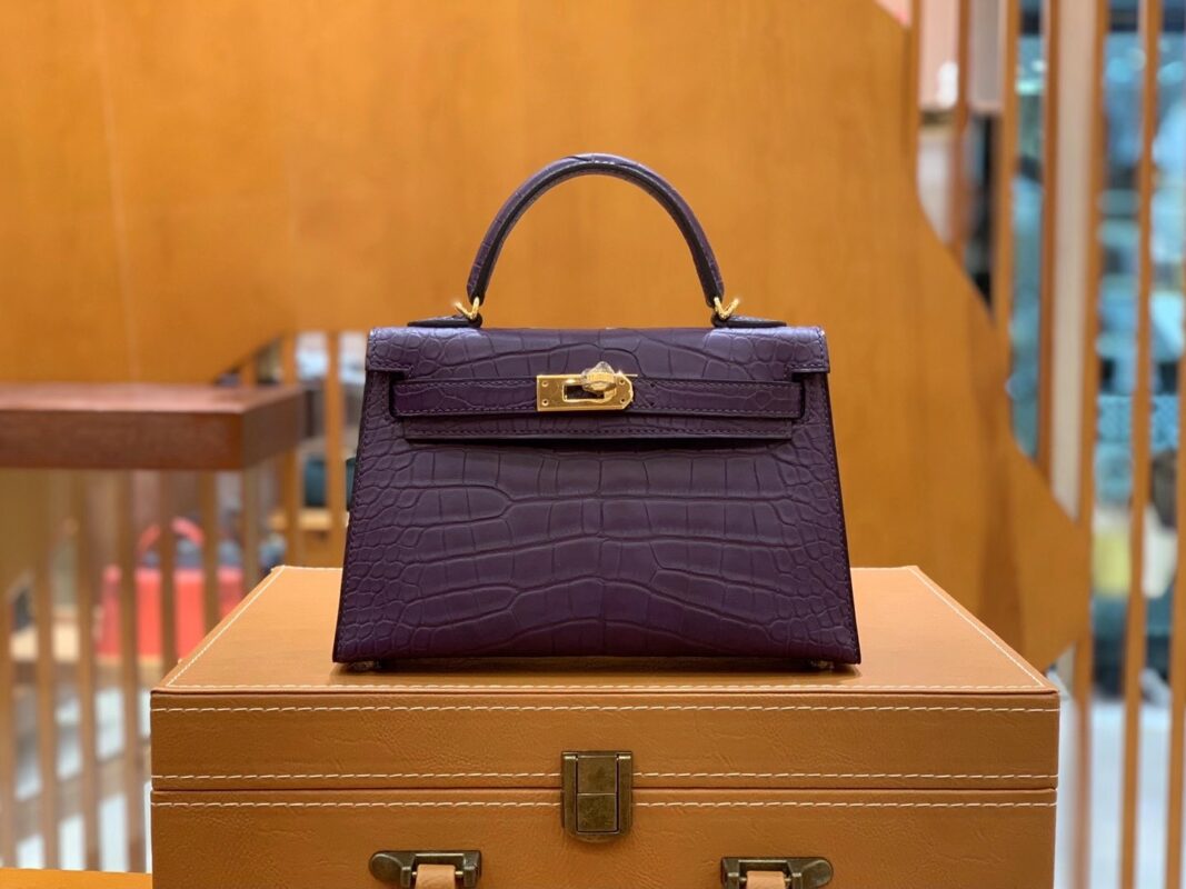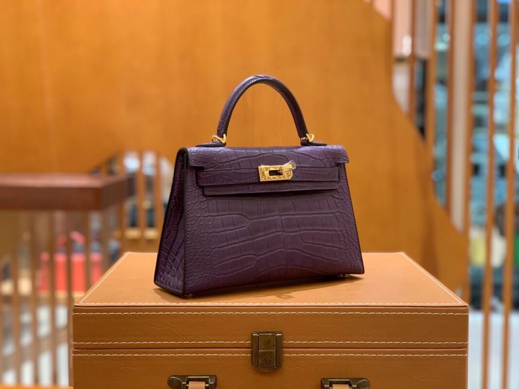 Mini Kelly II 19cm Crystal Purple Imported first-class American crocodile. Fully hand-sewn
