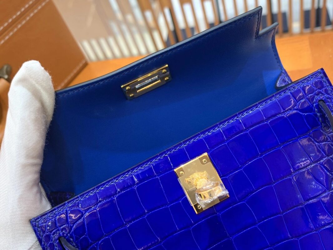 Mini Kelly II 19cm Electric Blue Imported first-class American crocodile leather. Fully hand-sewn