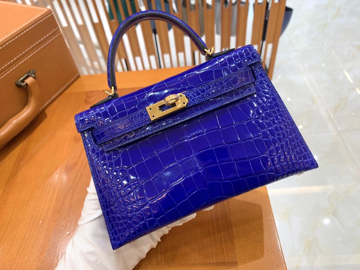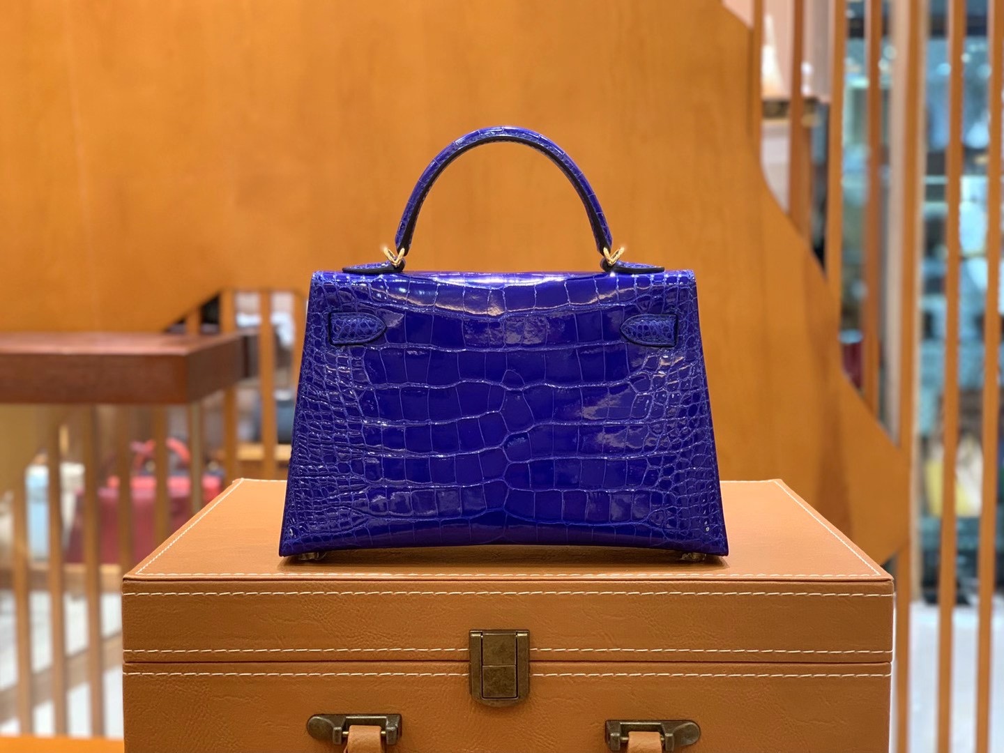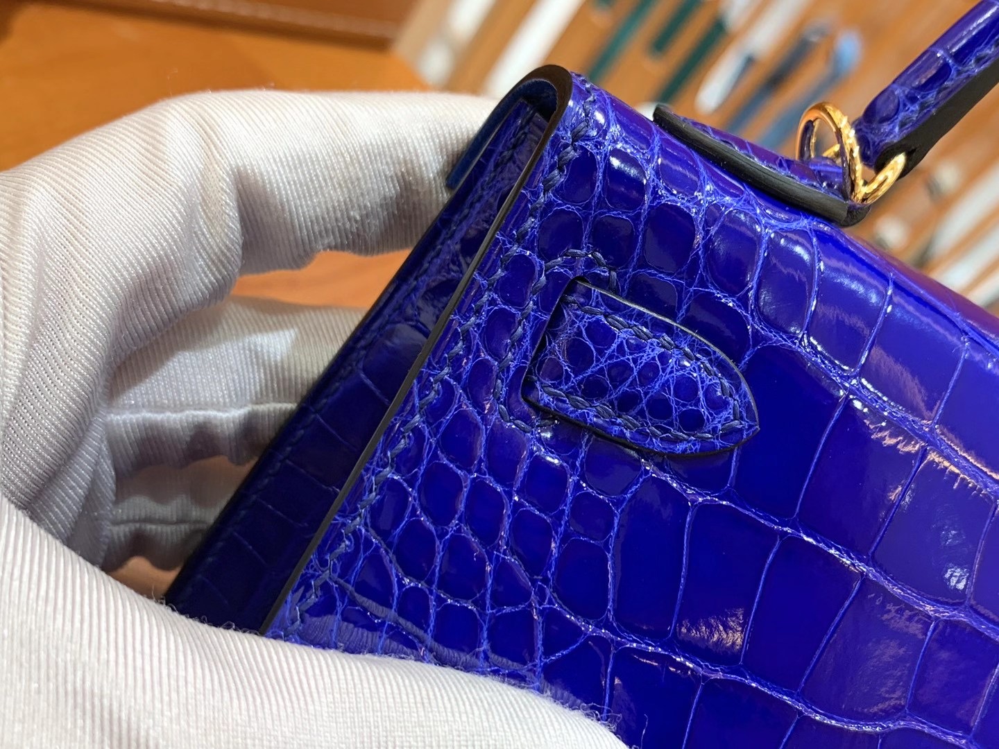 Mini Kelly II 19cm Electric Blue Imported first-class American crocodile leather. Fully hand-sewn