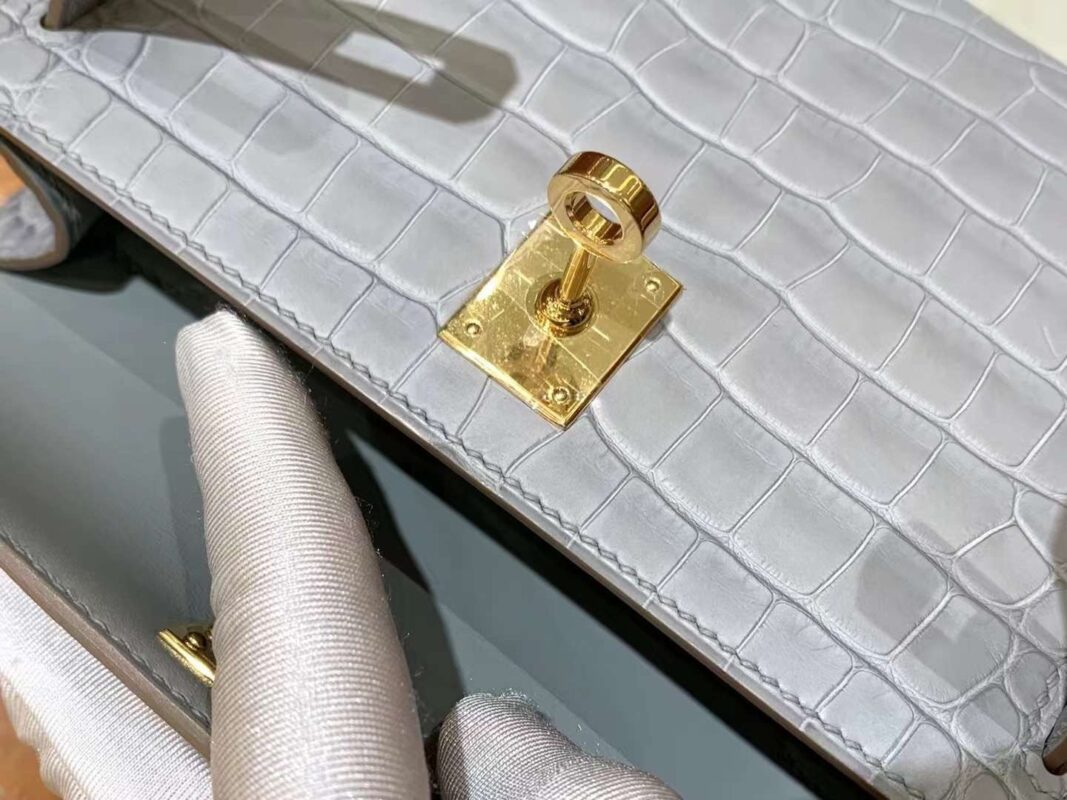 Mini Kelly Crocodile in Blue Glacier GHW