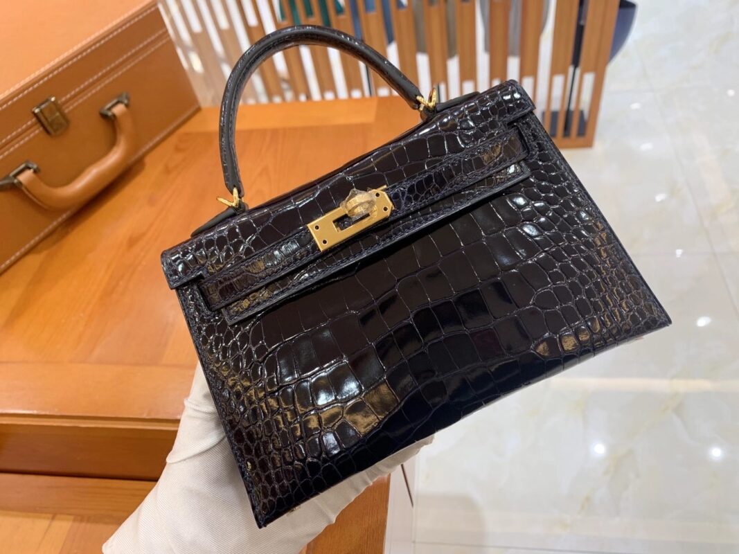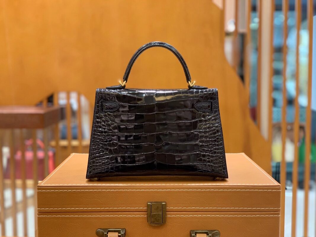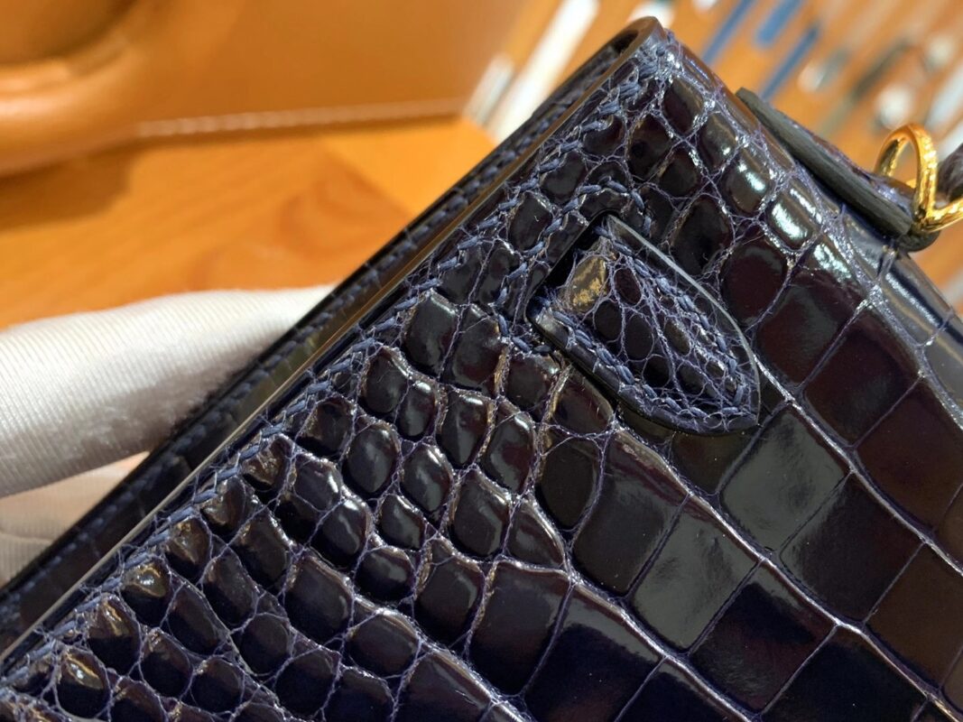 Mini Kelly II 19cm Midnight Blue Imported first-class American crocodile. Fully hand-sewn