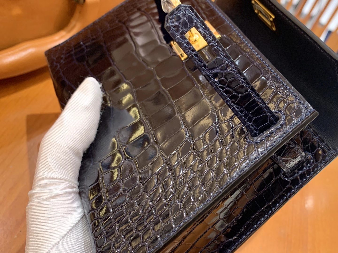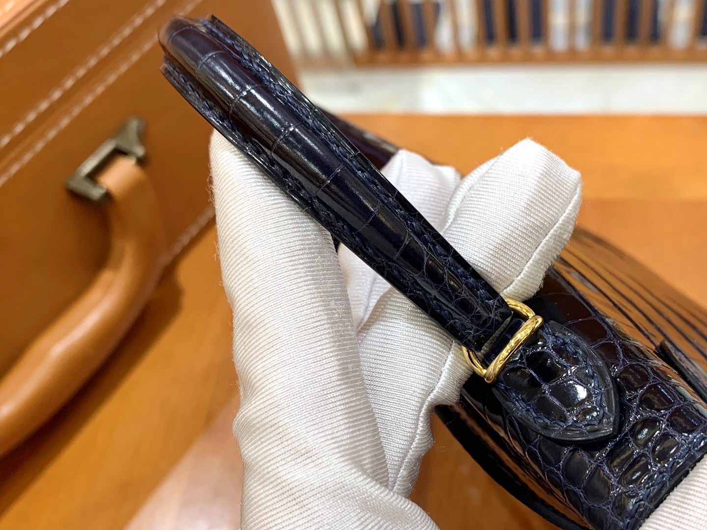 Mini Kelly II 19cm Midnight Blue Imported first-class American crocodile. Fully hand-sewn