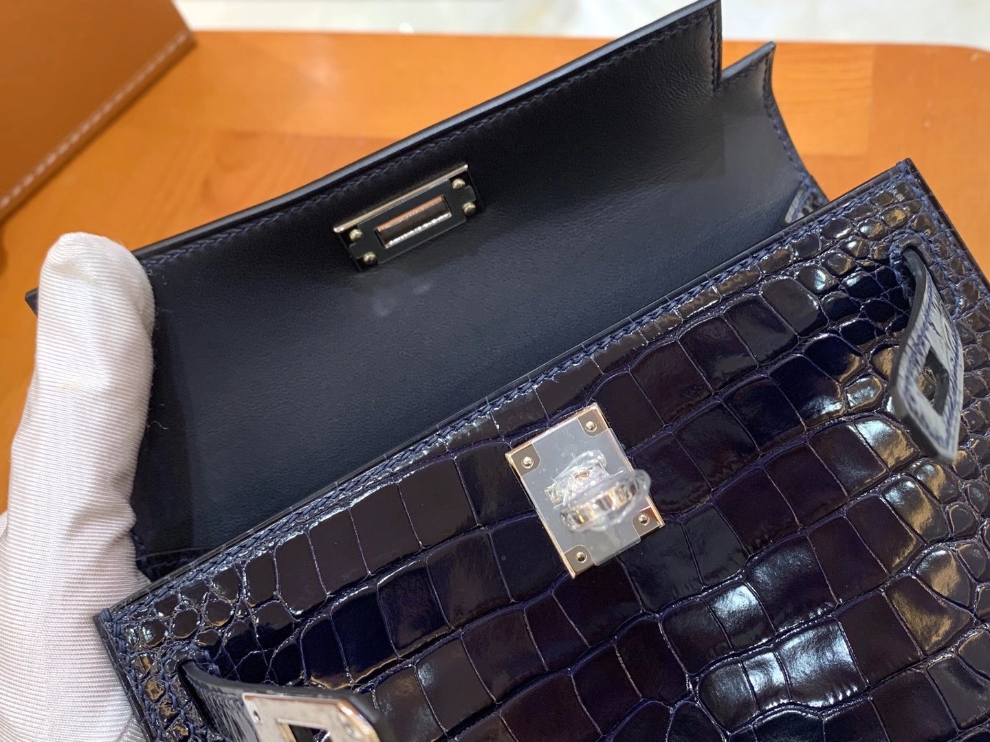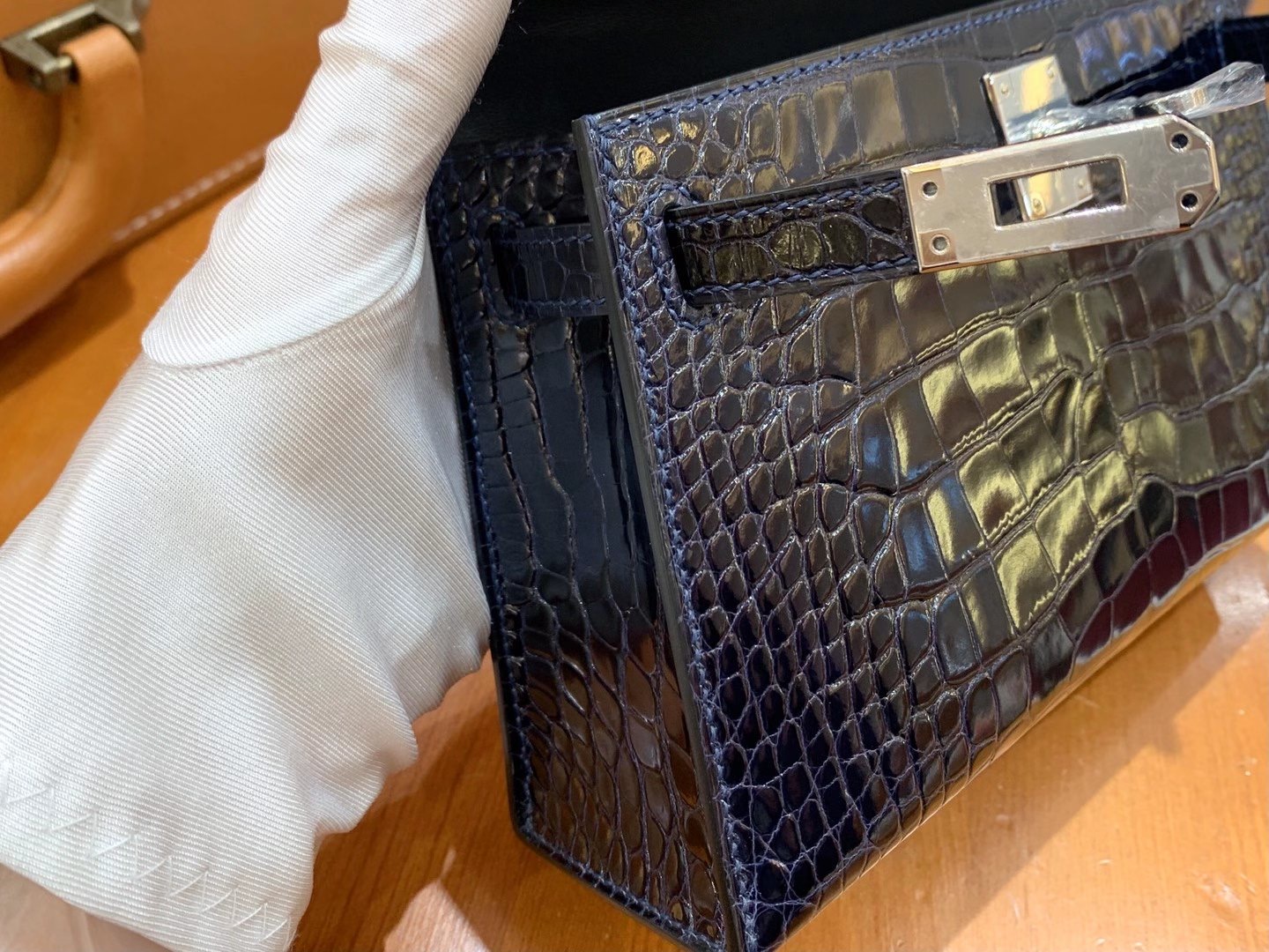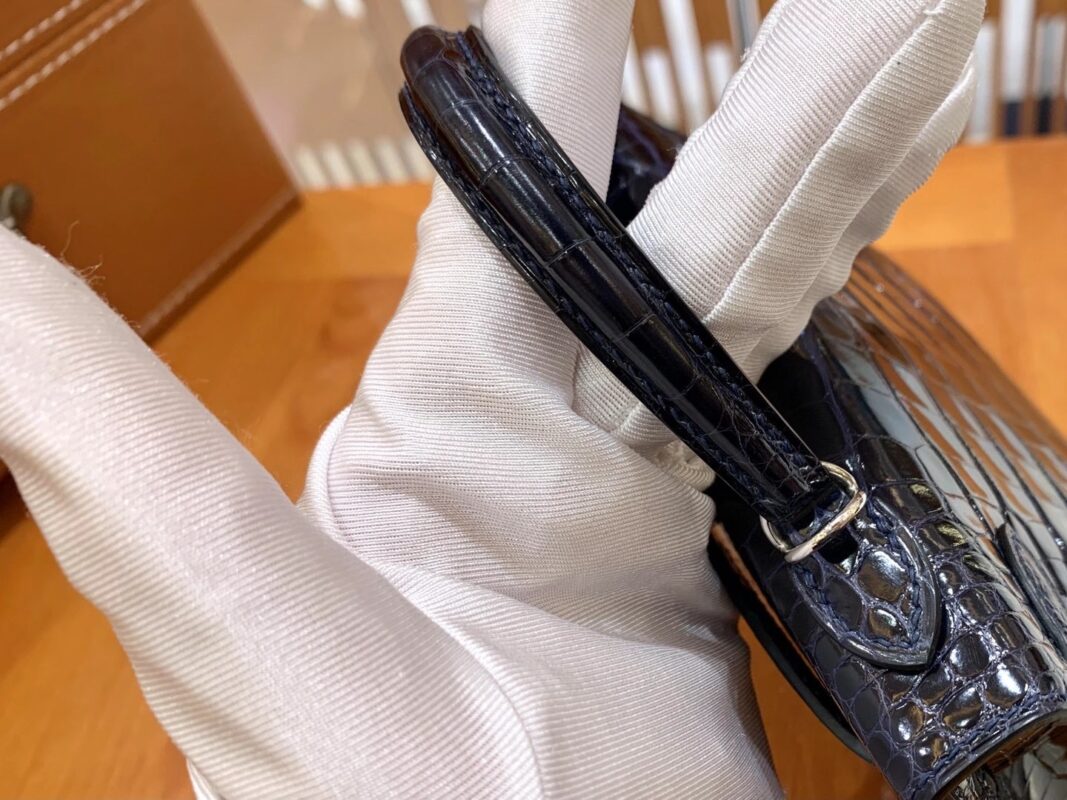Mini Kelly II 19cm Midnight Blue Imported first-class American crocodile leather. Fully hand-sewn