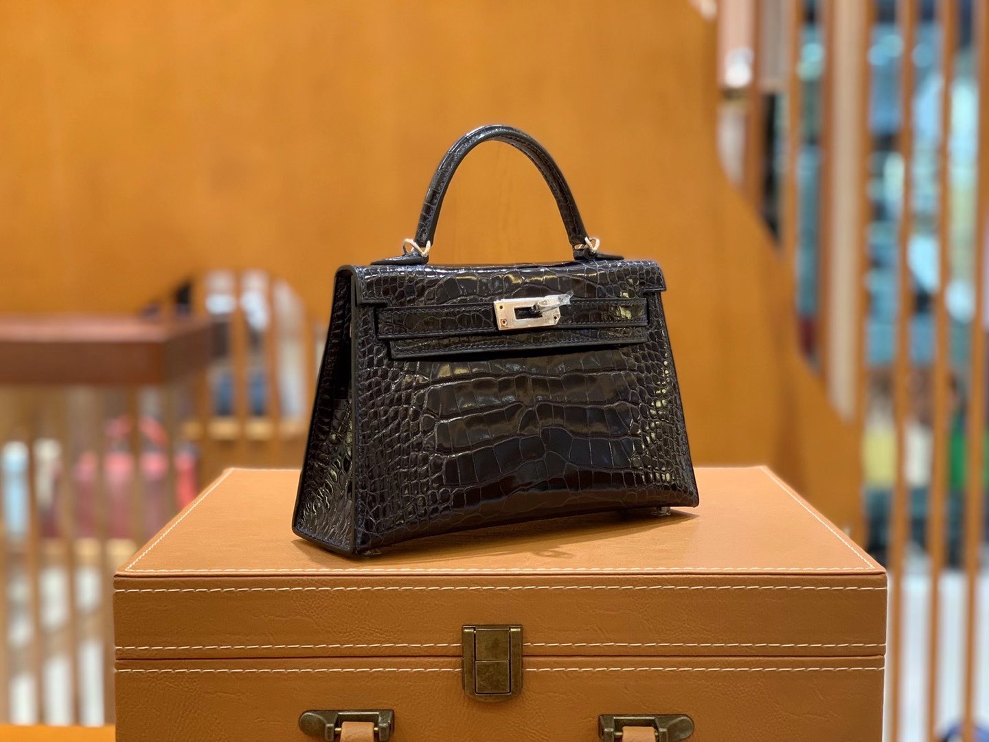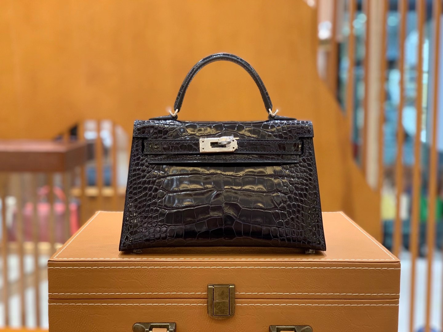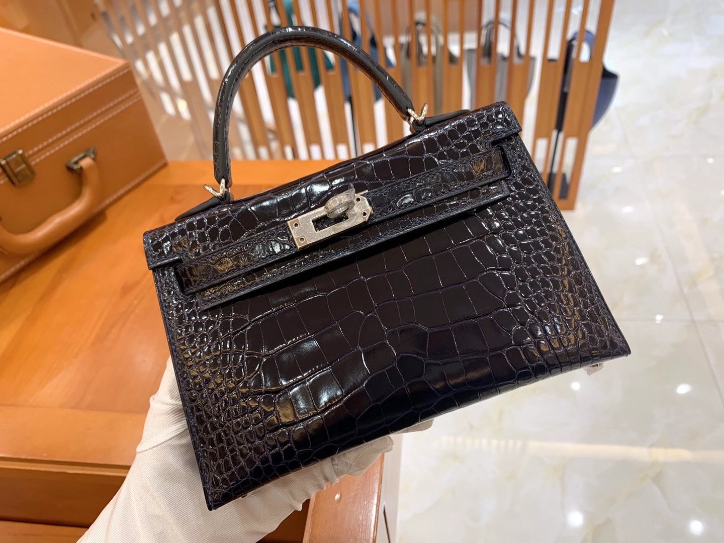 Mini Kelly II 19cm Midnight Blue Imported first-class American crocodile leather. Fully hand-sewn