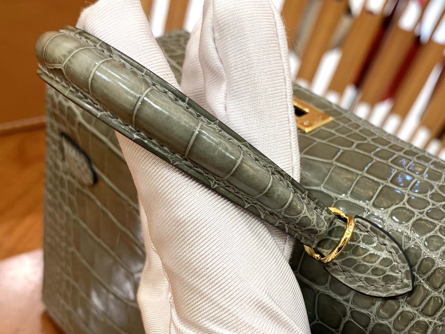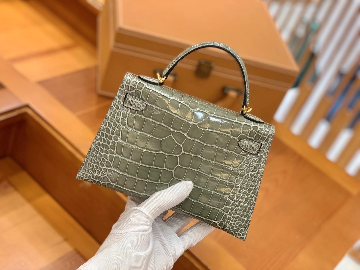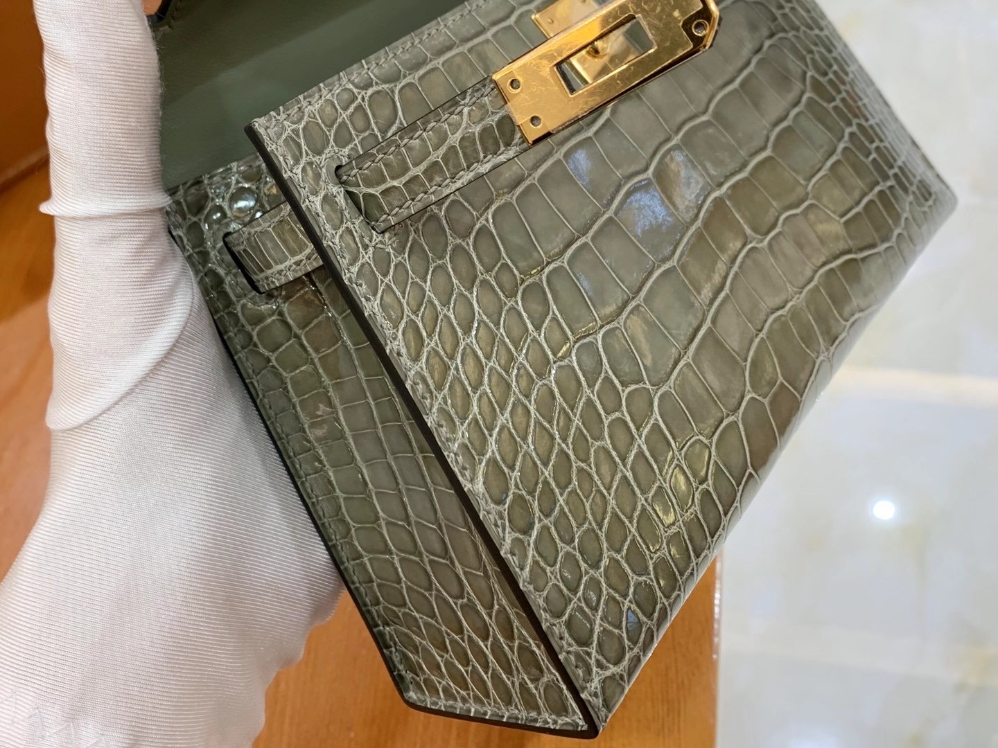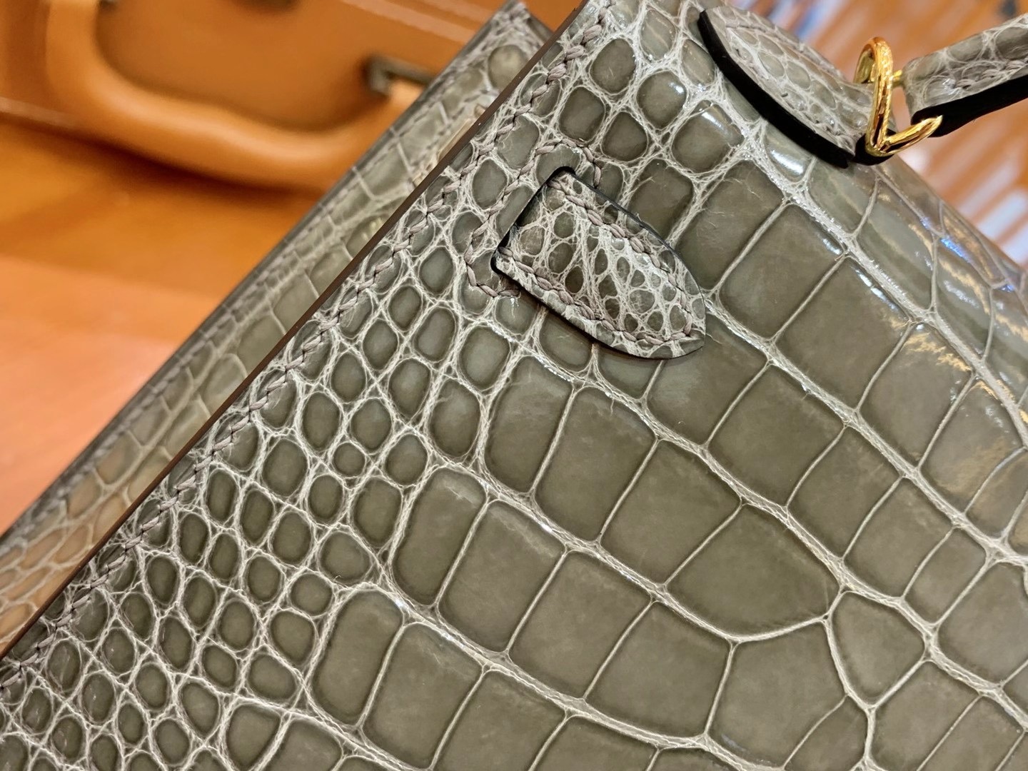 Mini Kelly II 19cm Turtle Dove Grey Imported first-class American crocodile. Fully hand-sewn