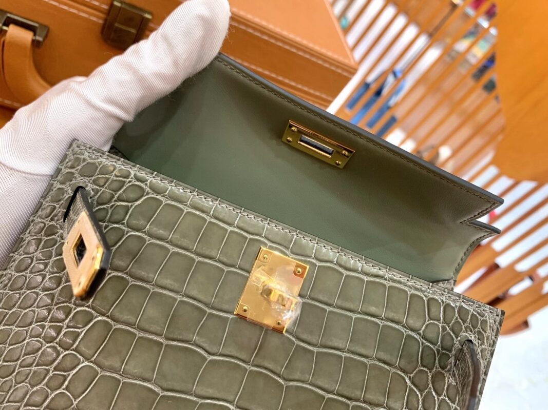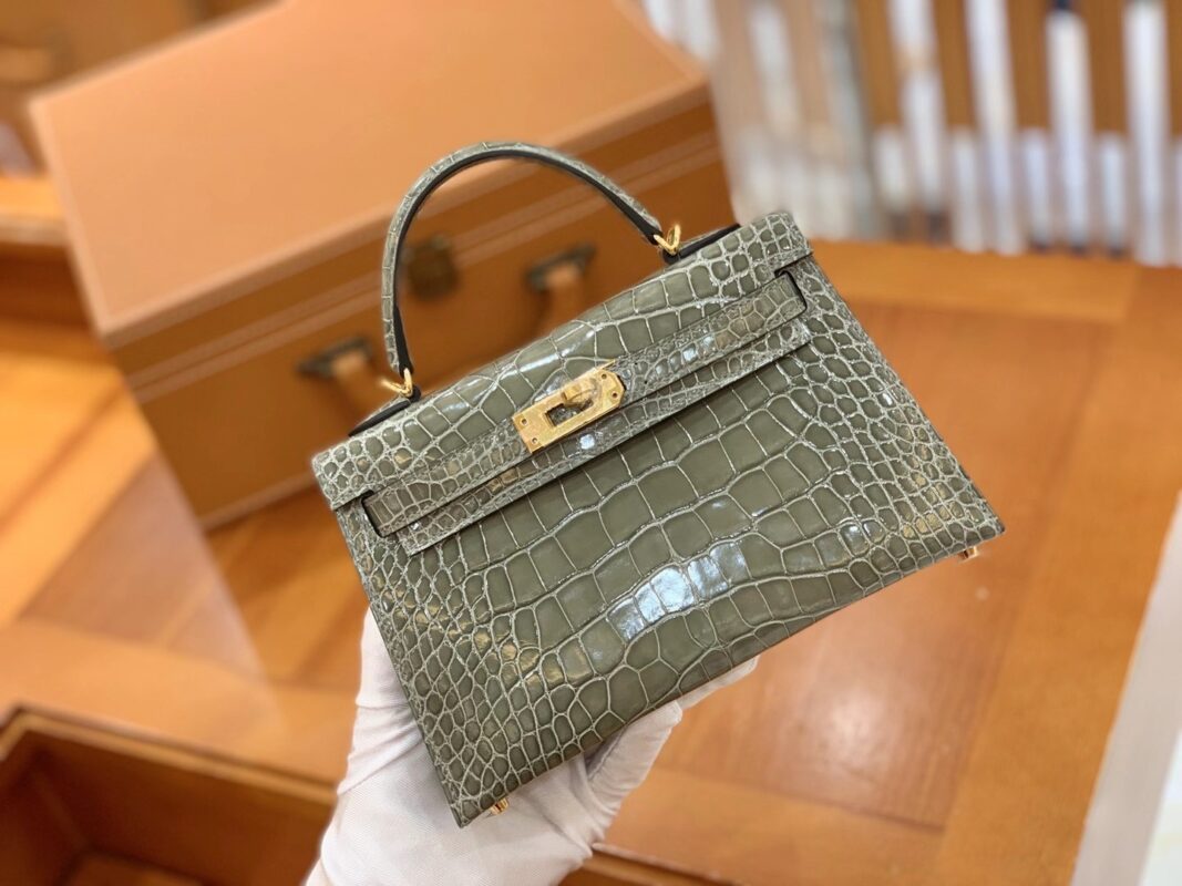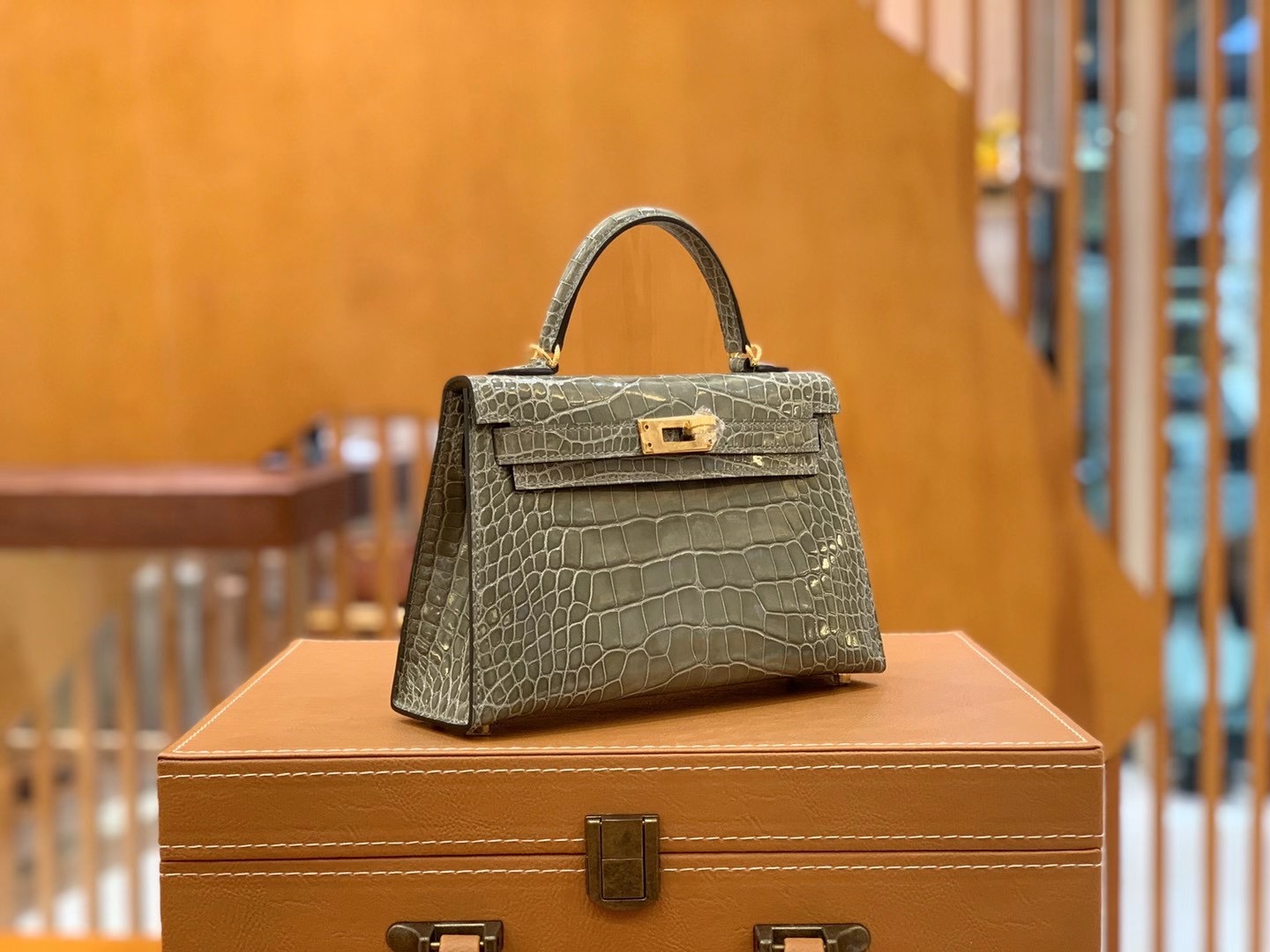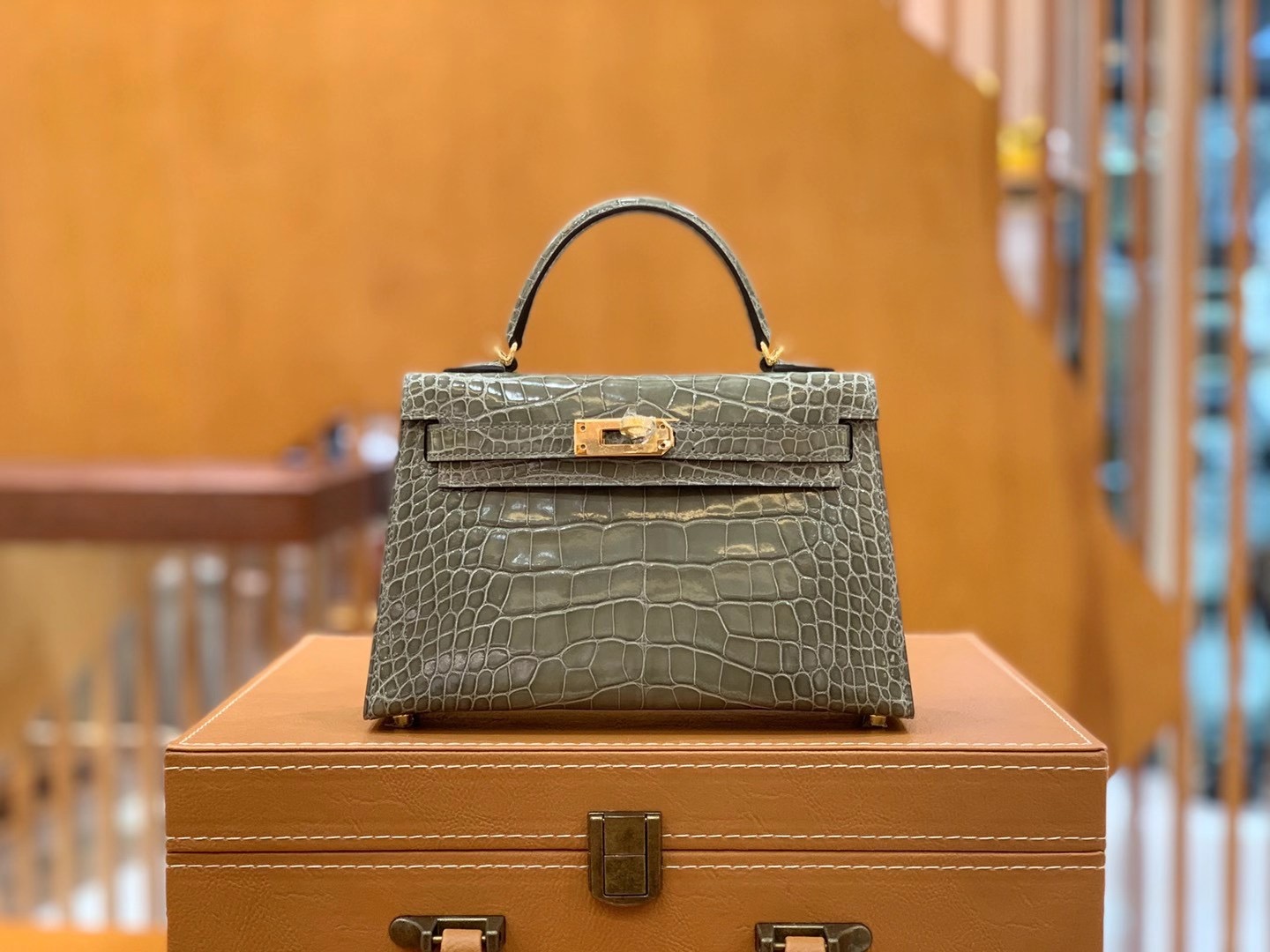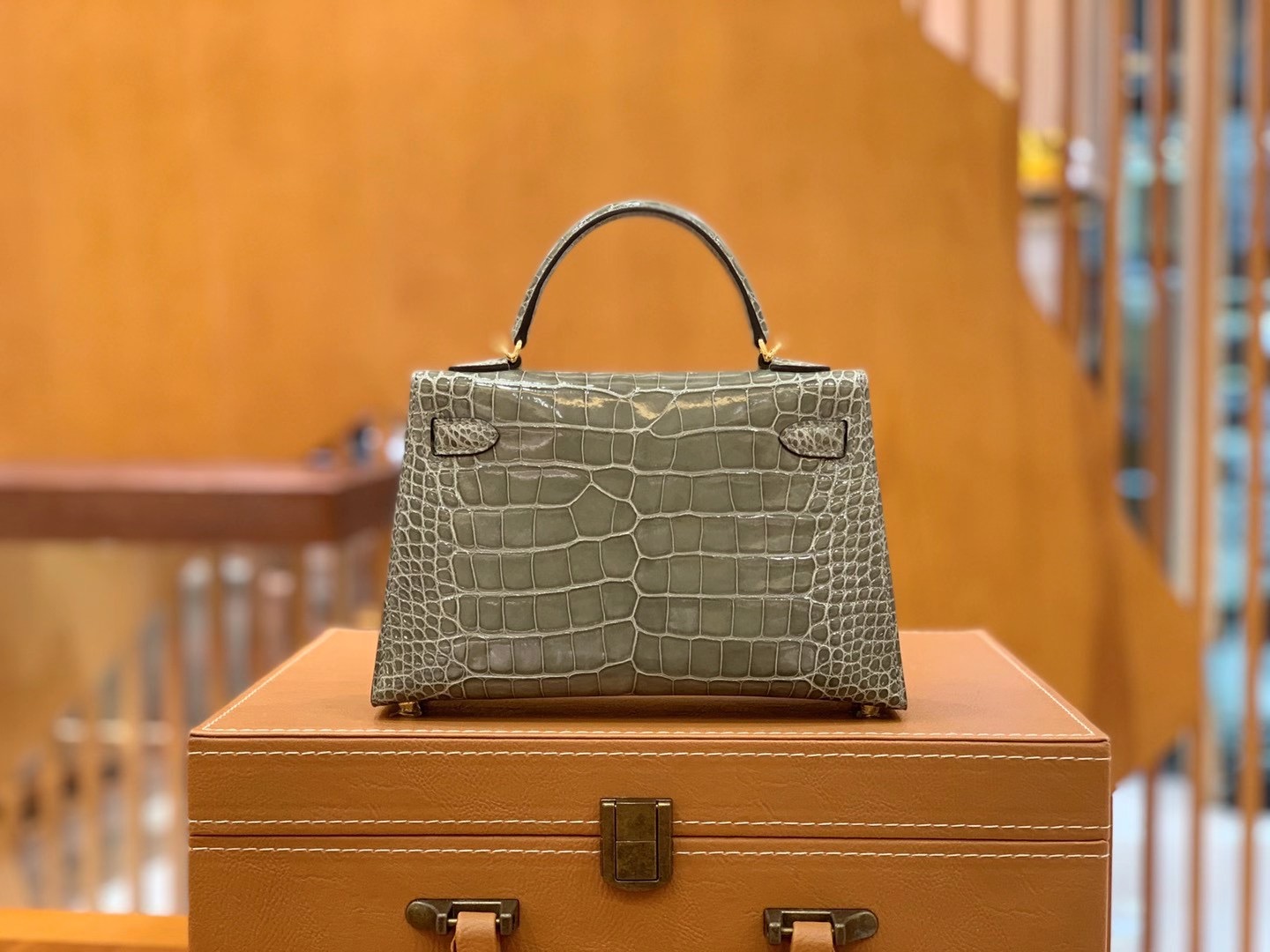 Mini Kelly II 19cm Turtle Dove Grey Imported first-class American crocodile. Fully hand-sewn
