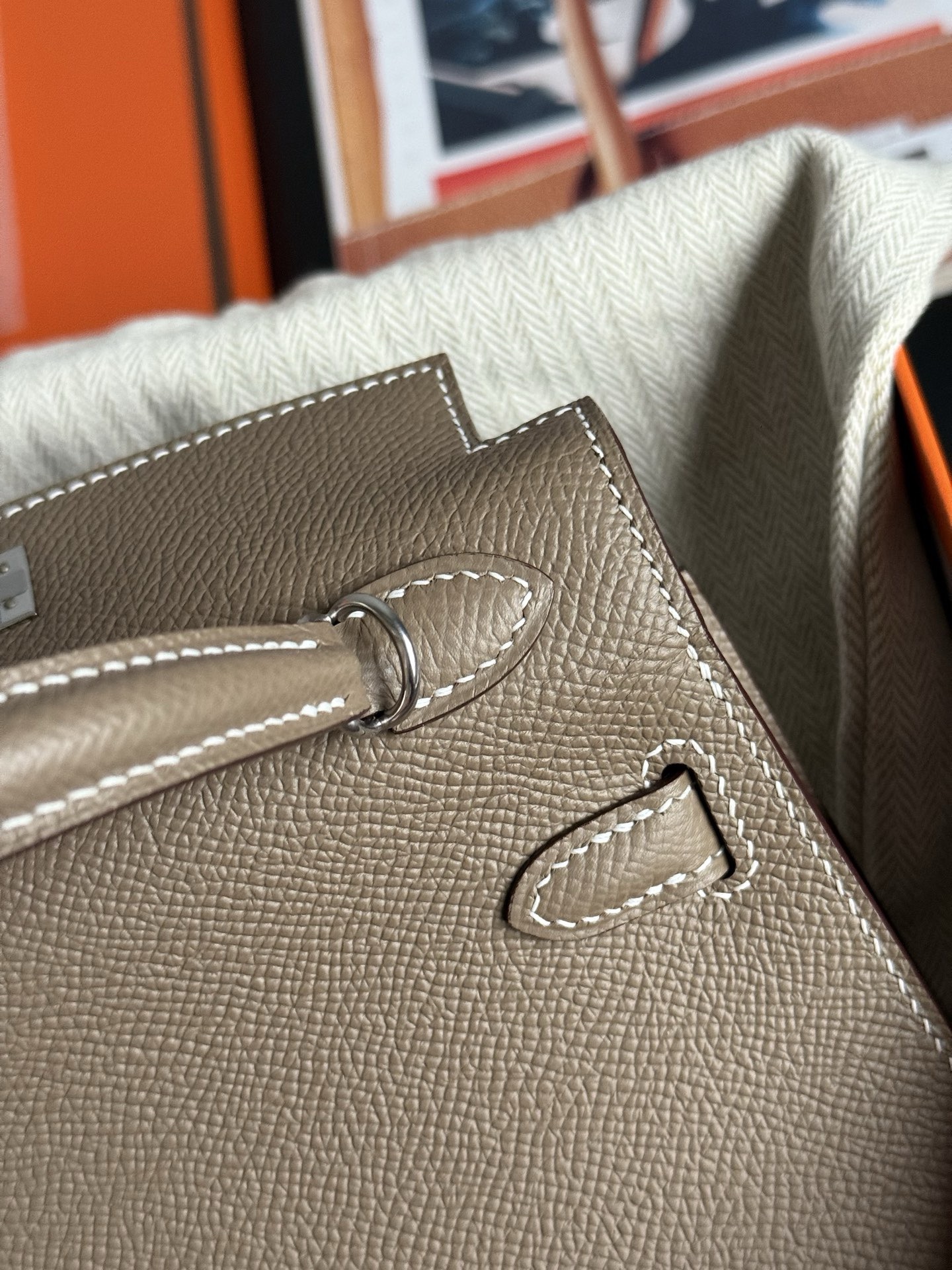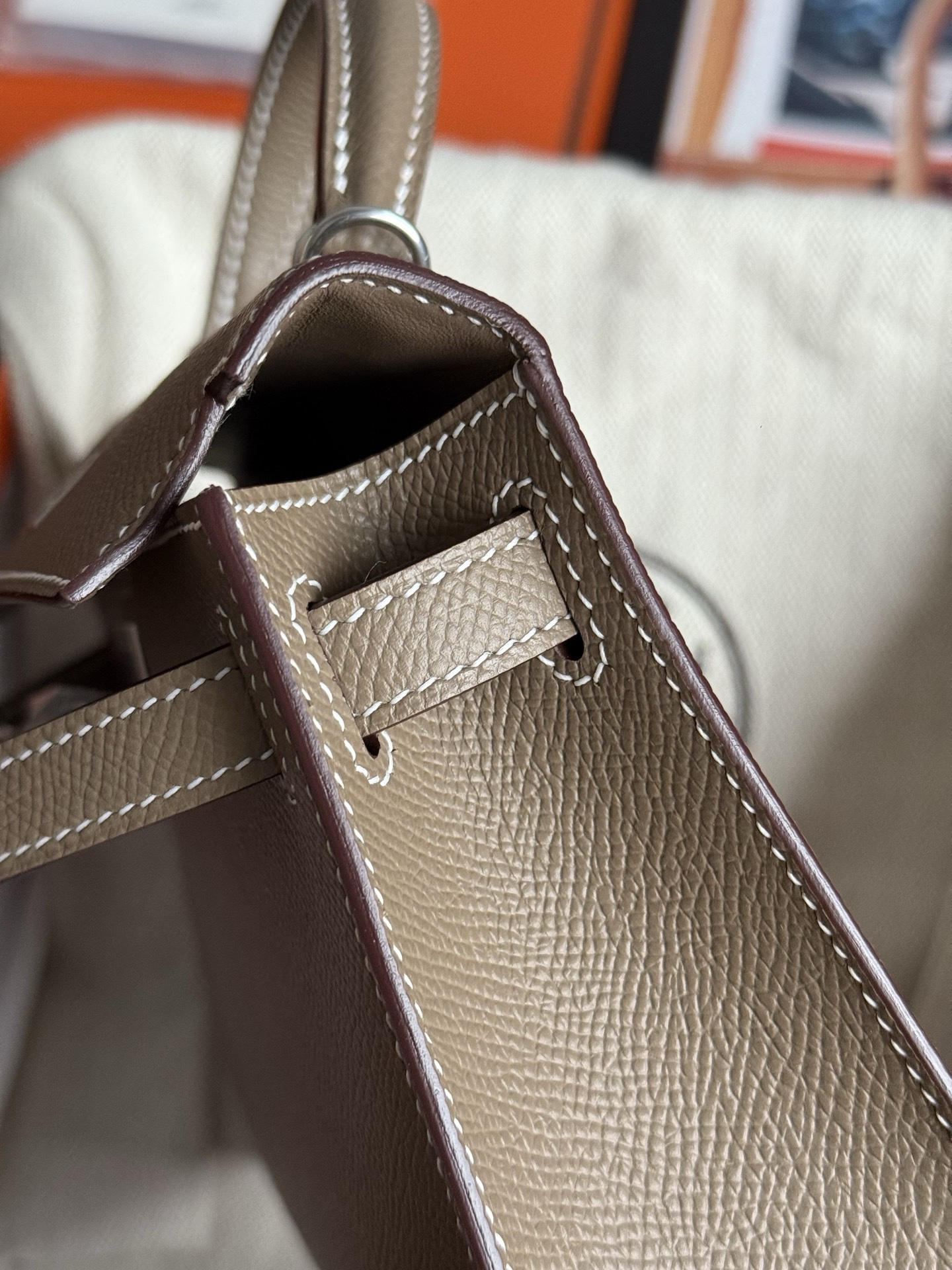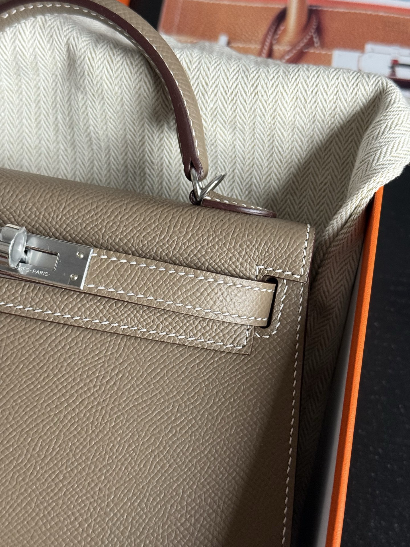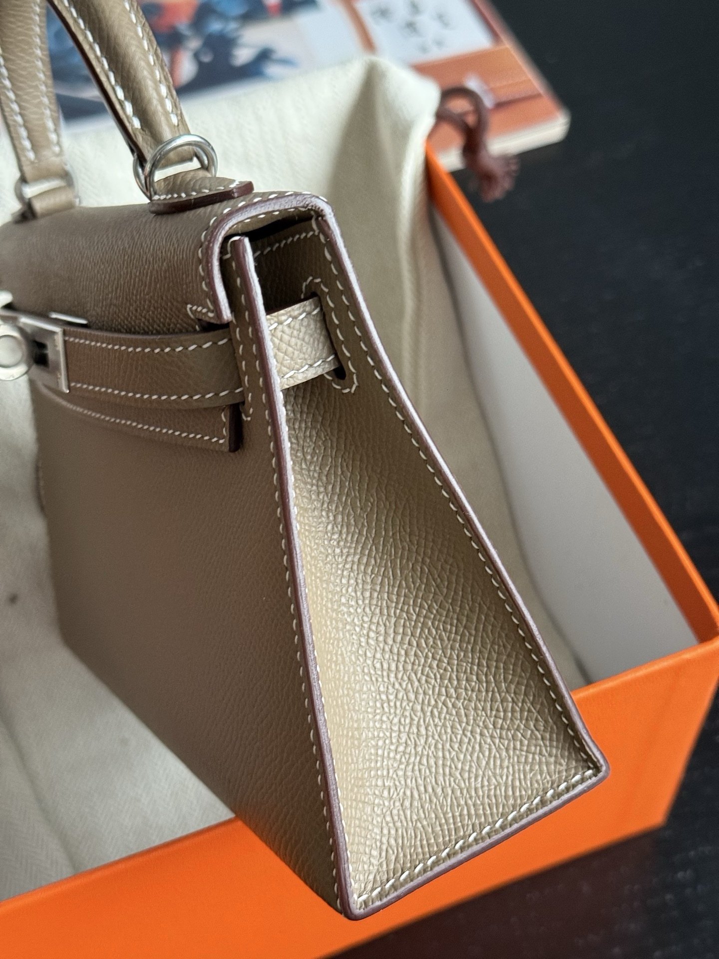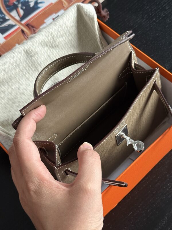 Mini Kelly Epsom 18 Etoupe PHW Stamp K