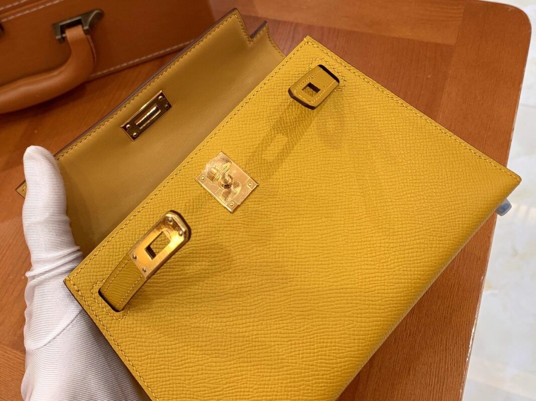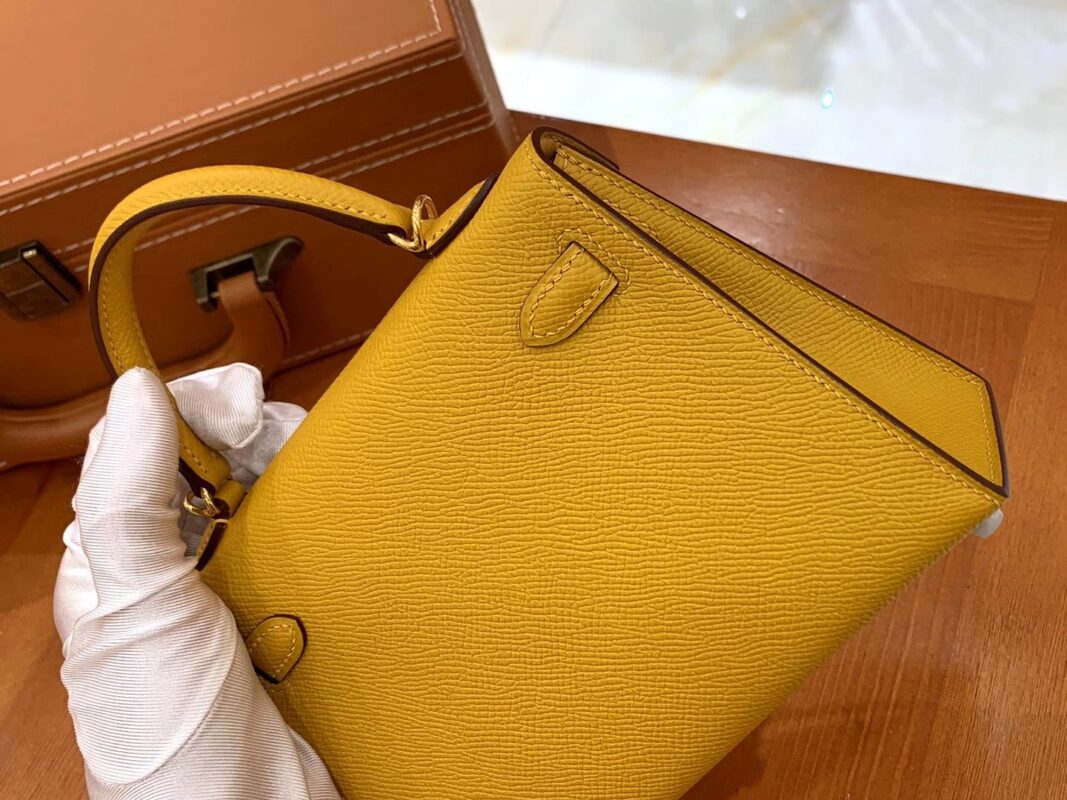 Mini Kelly II 19cm Amber Yellow Imported Epsom cowhide, French beeswax thread, 100% hand-sewn