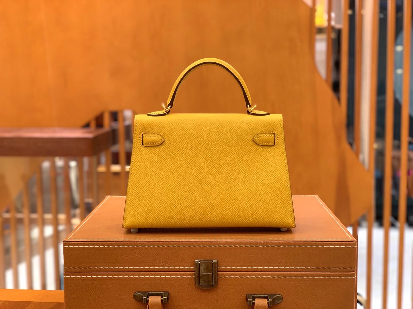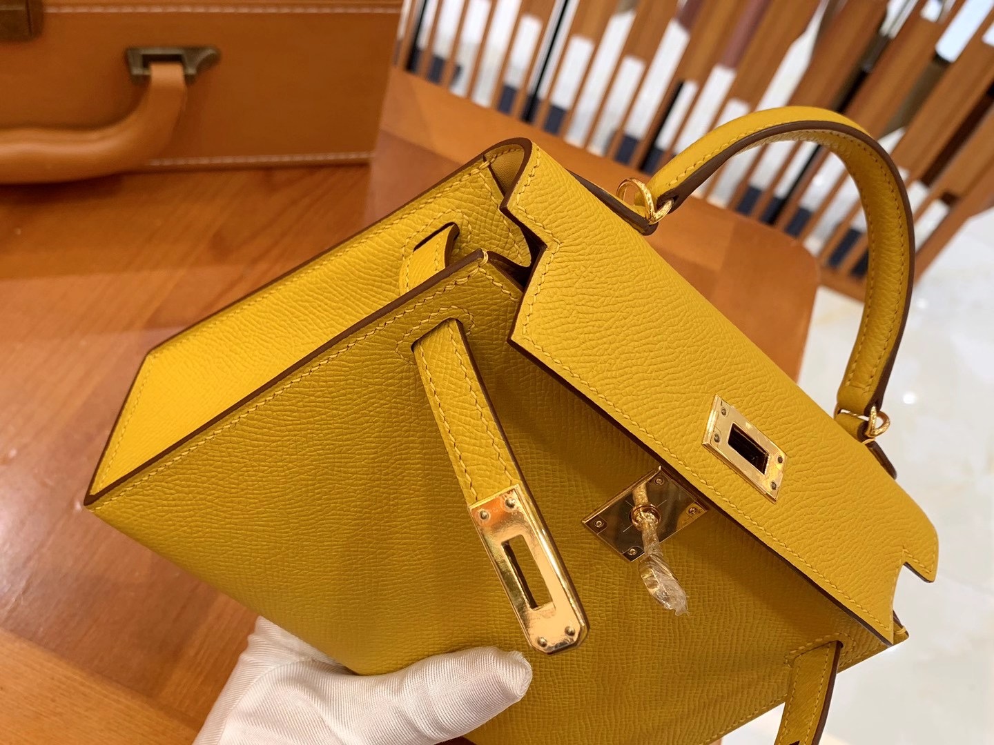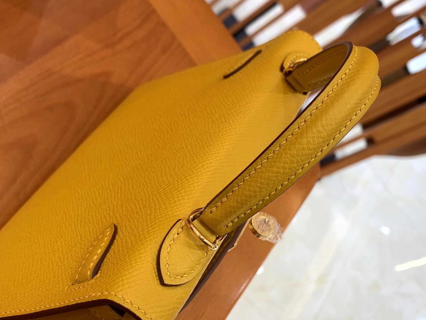 Mini Kelly II 19cm Amber Yellow Imported Epsom cowhide, French beeswax thread, 100% hand-sewn
