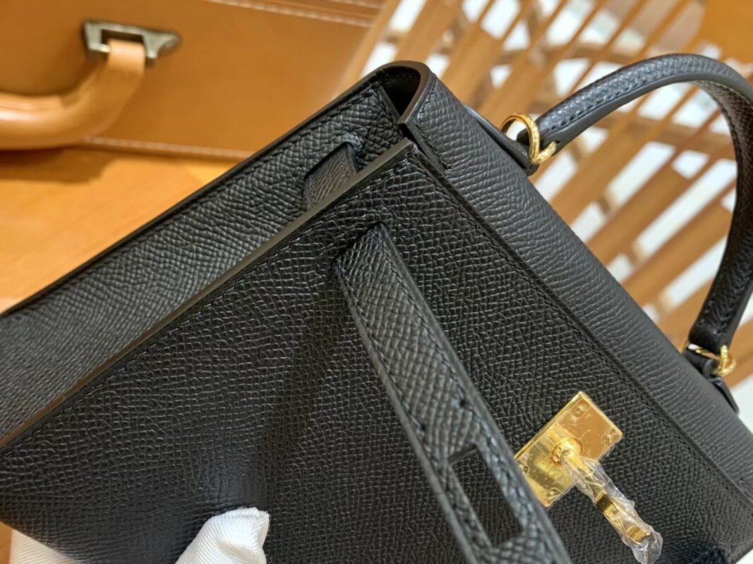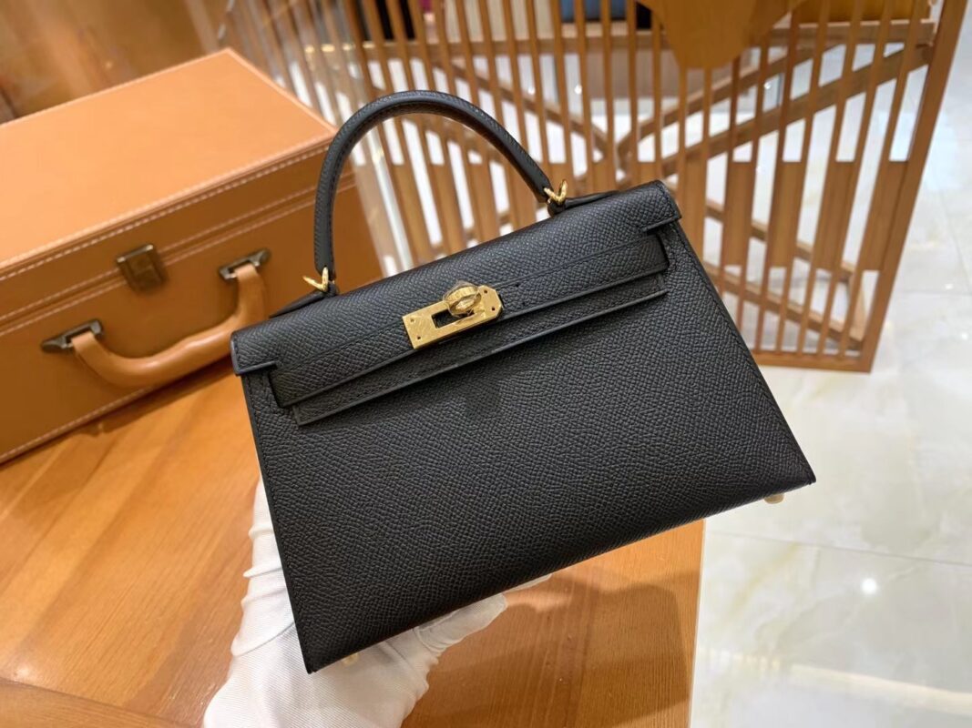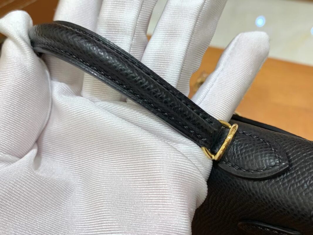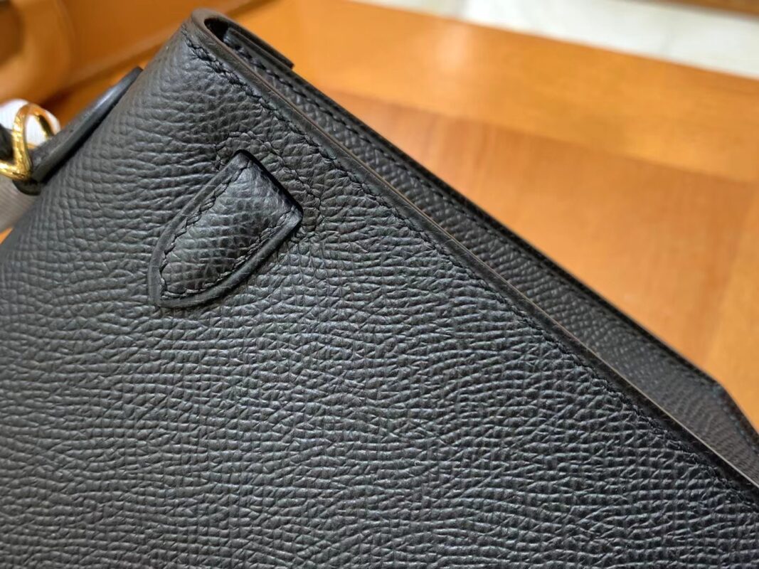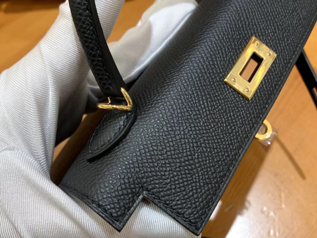 Mini Kelly Second Generation Black Golden Buckle Imported Epsom leather, imported raw materials, all hand sewn