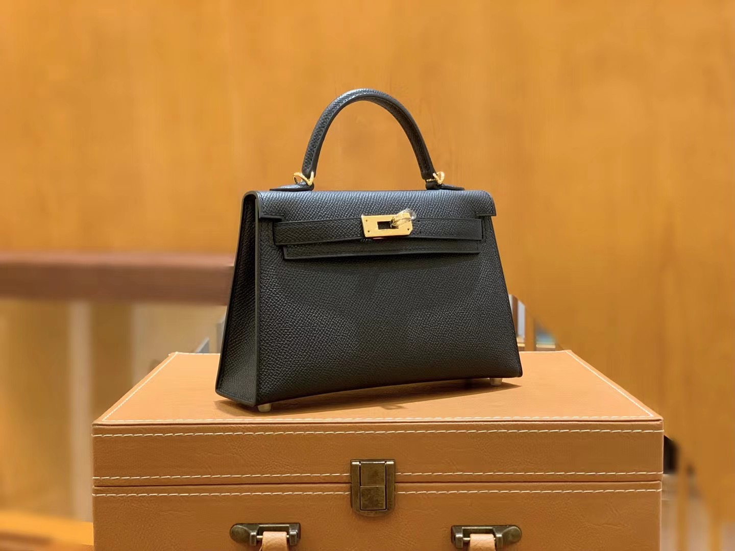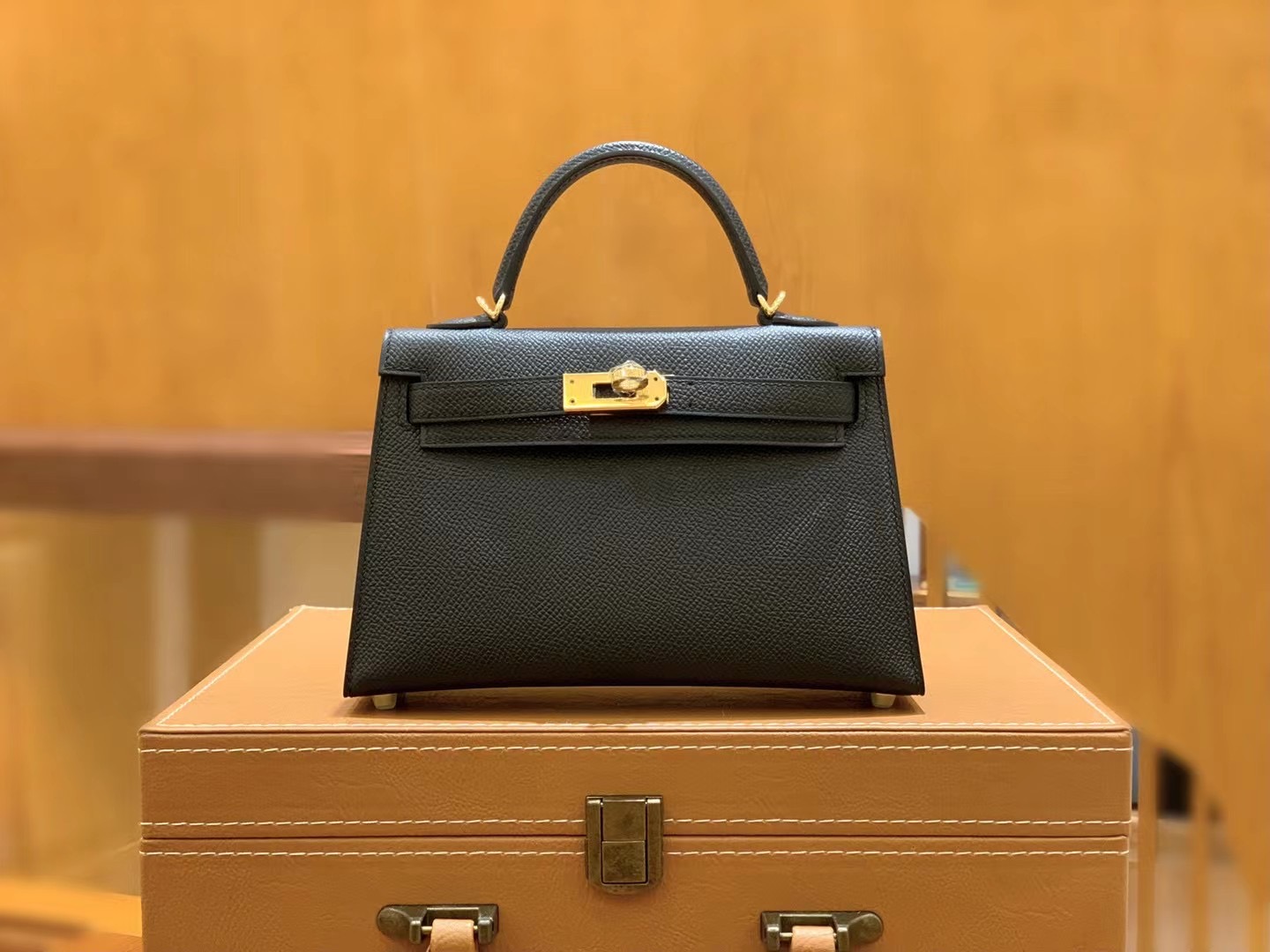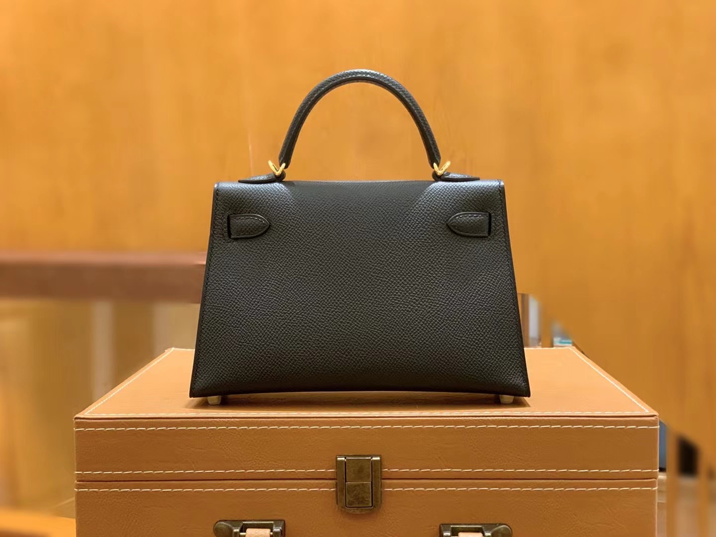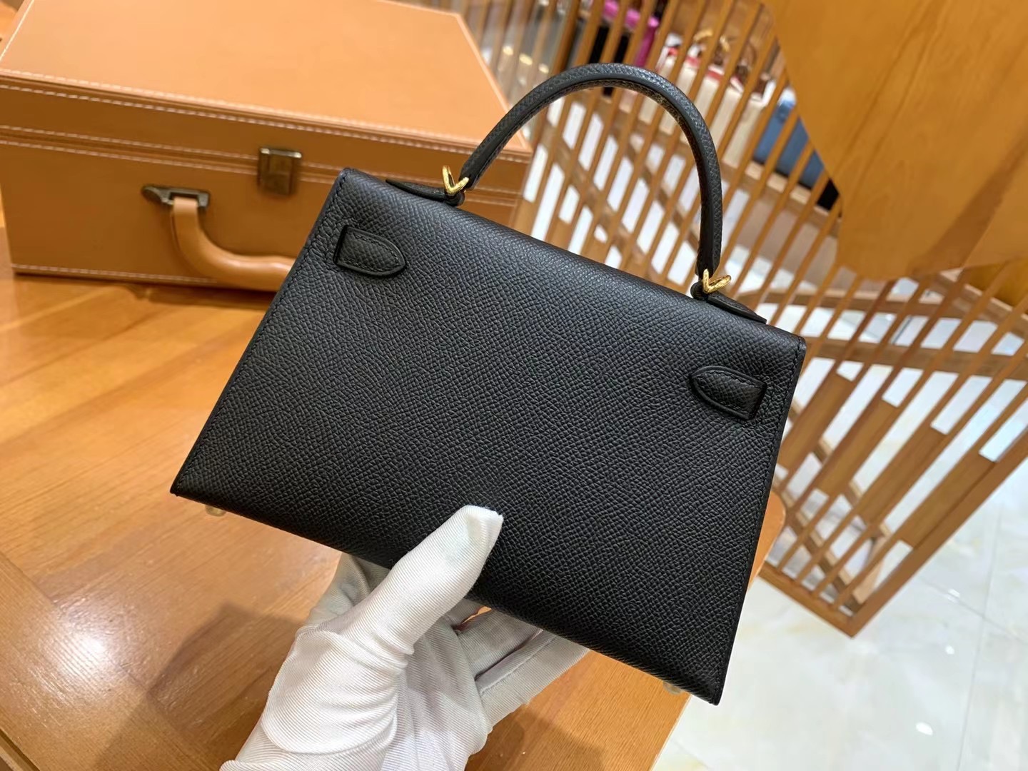 Mini Kelly Second Generation Black Golden Buckle Imported Epsom leather, imported raw materials, all hand sewn
