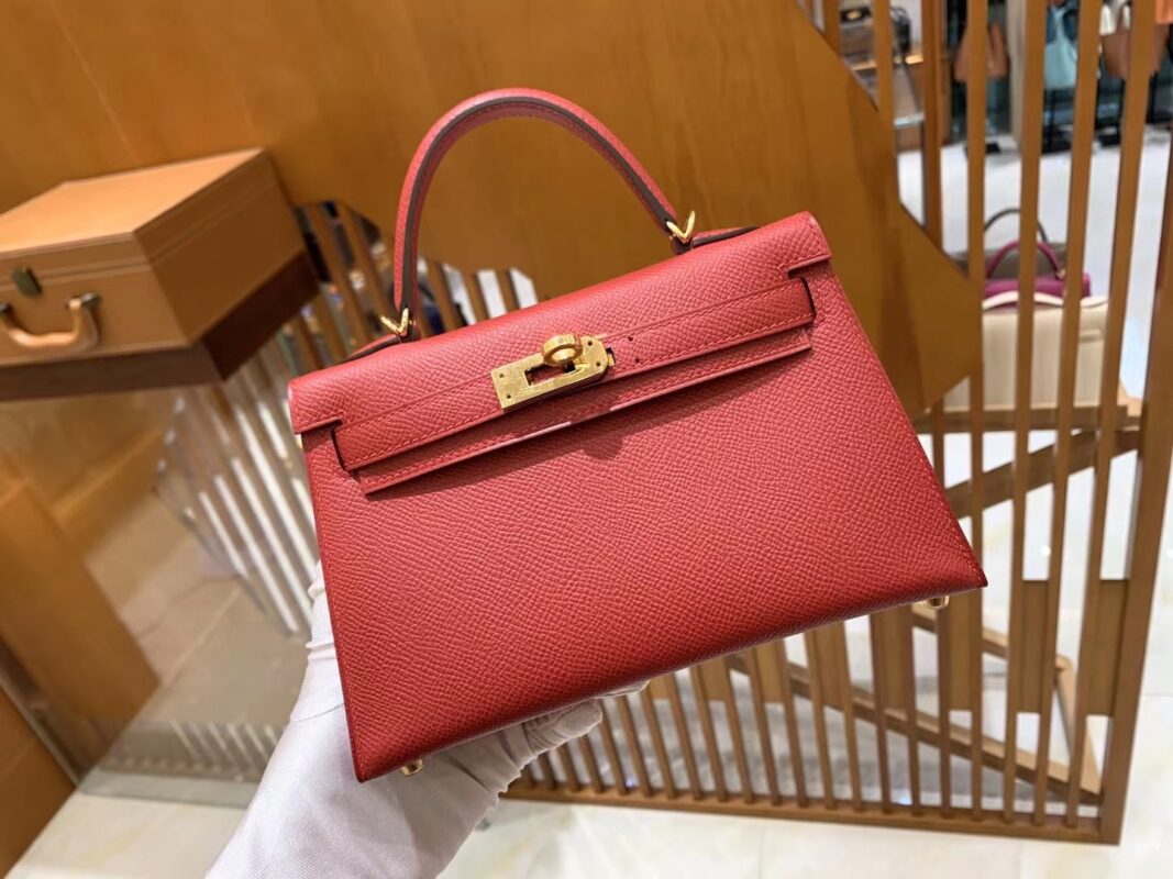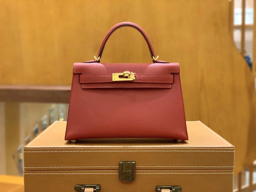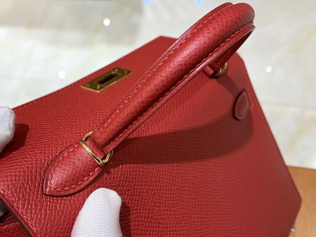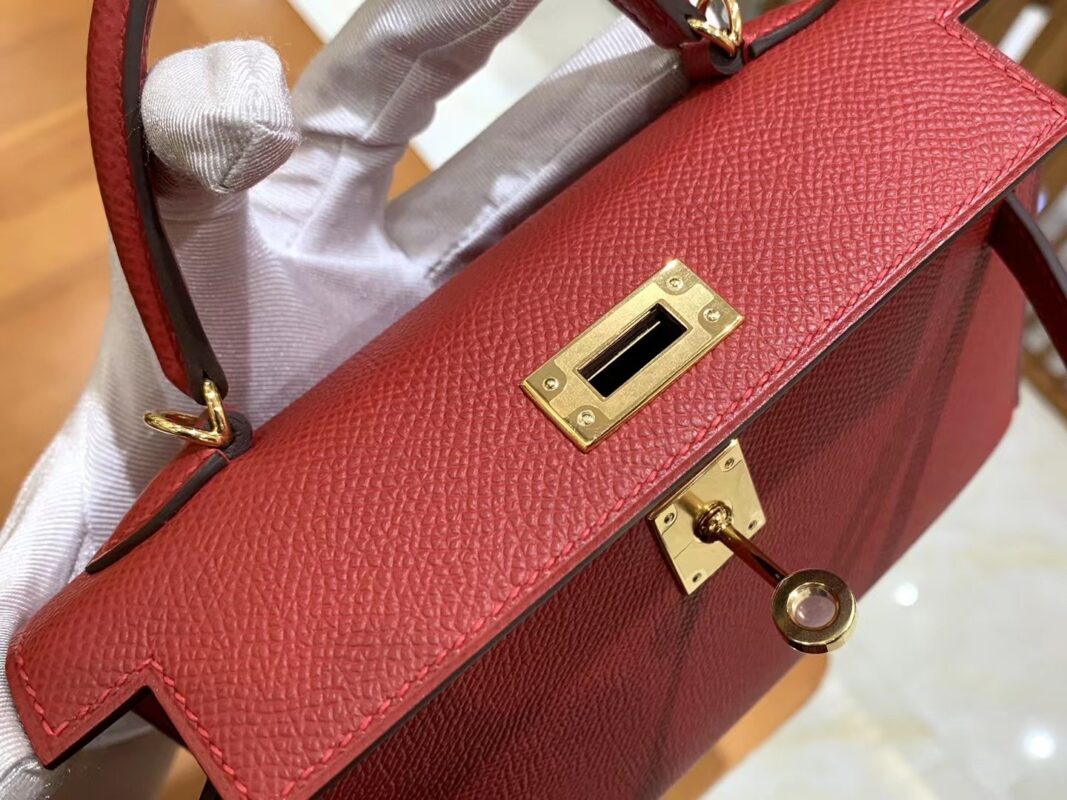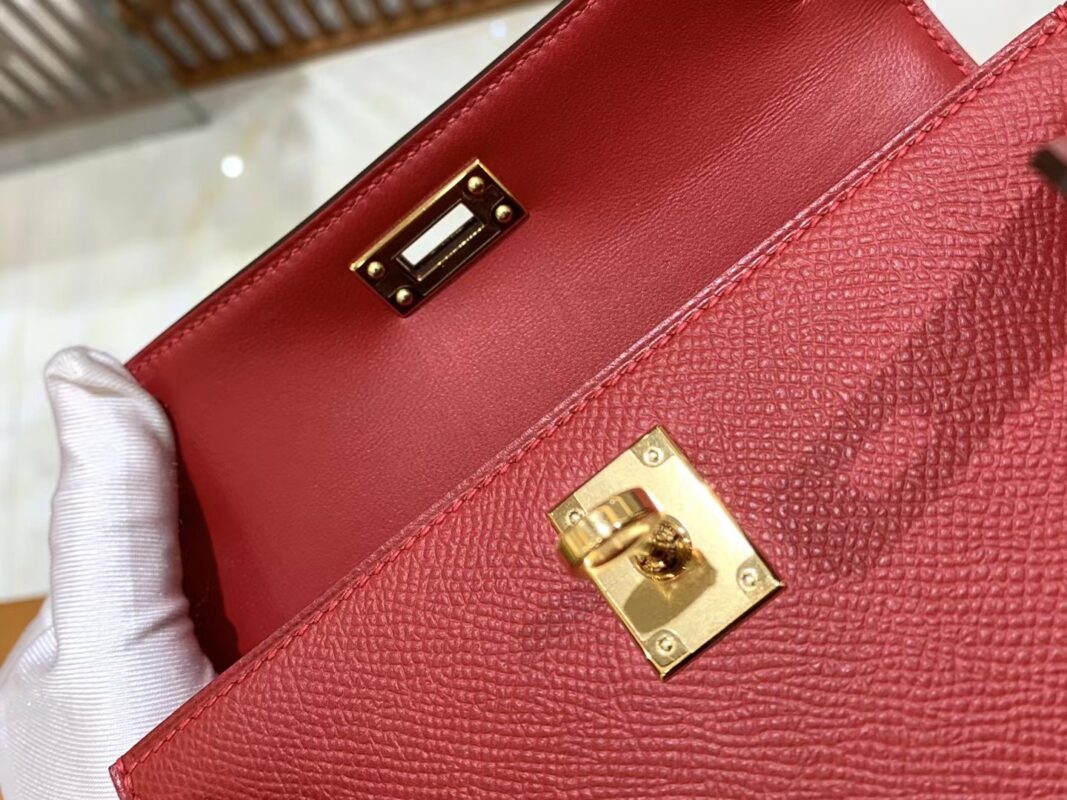 Mini Kelly second generation Chinese Red Gold BuckleImported Epsom leather, imported raw materials, all hand-sewn