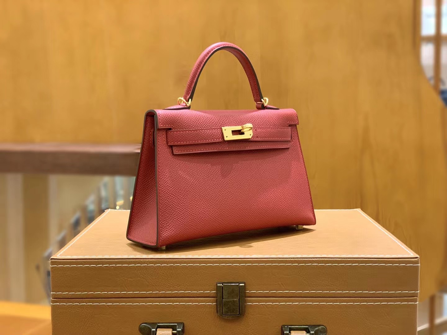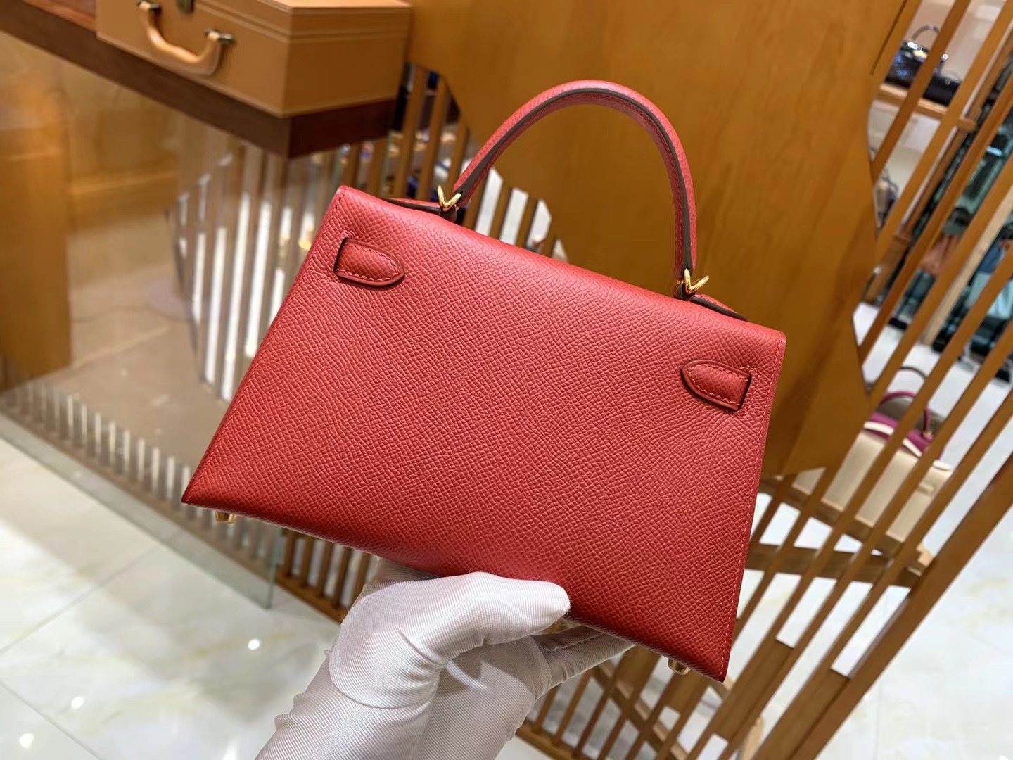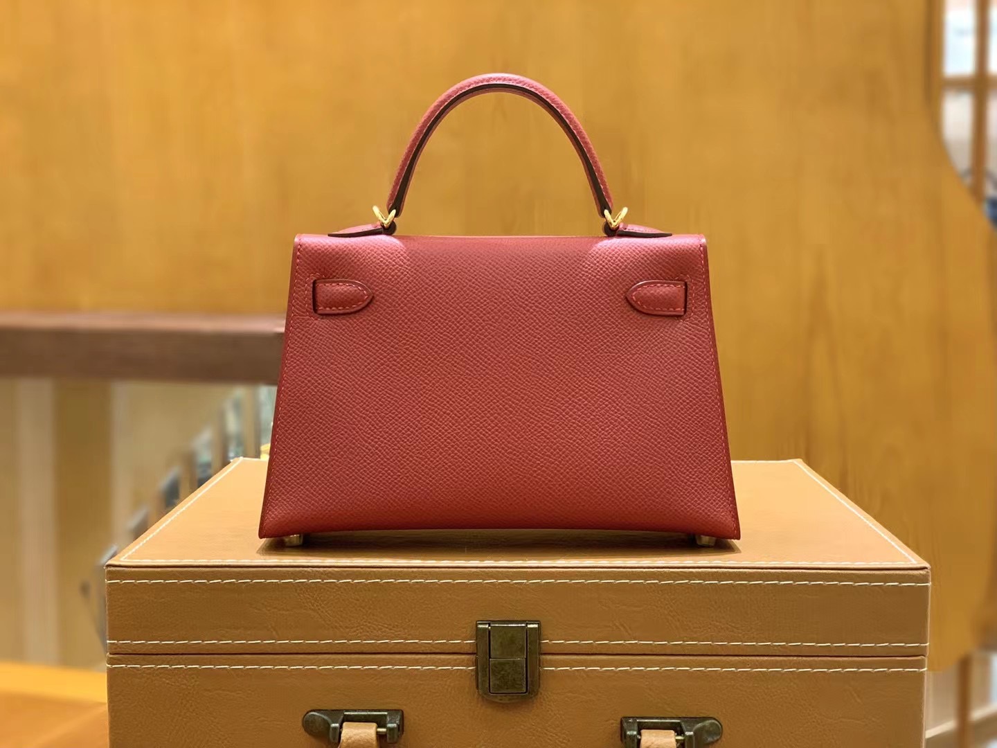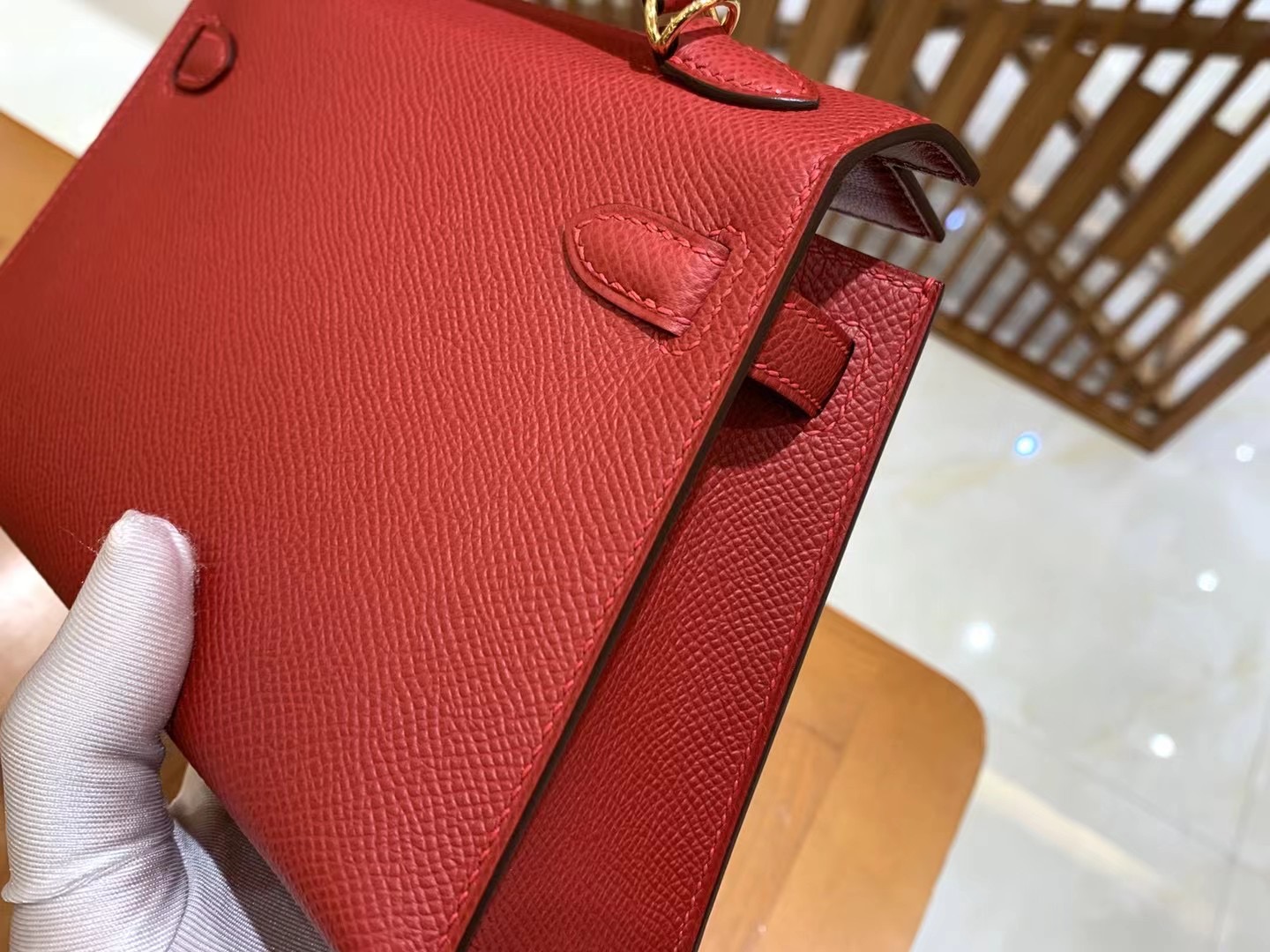 Mini Kelly second generation Chinese Red Gold BuckleImported Epsom leather, imported raw materials, all hand-sewn