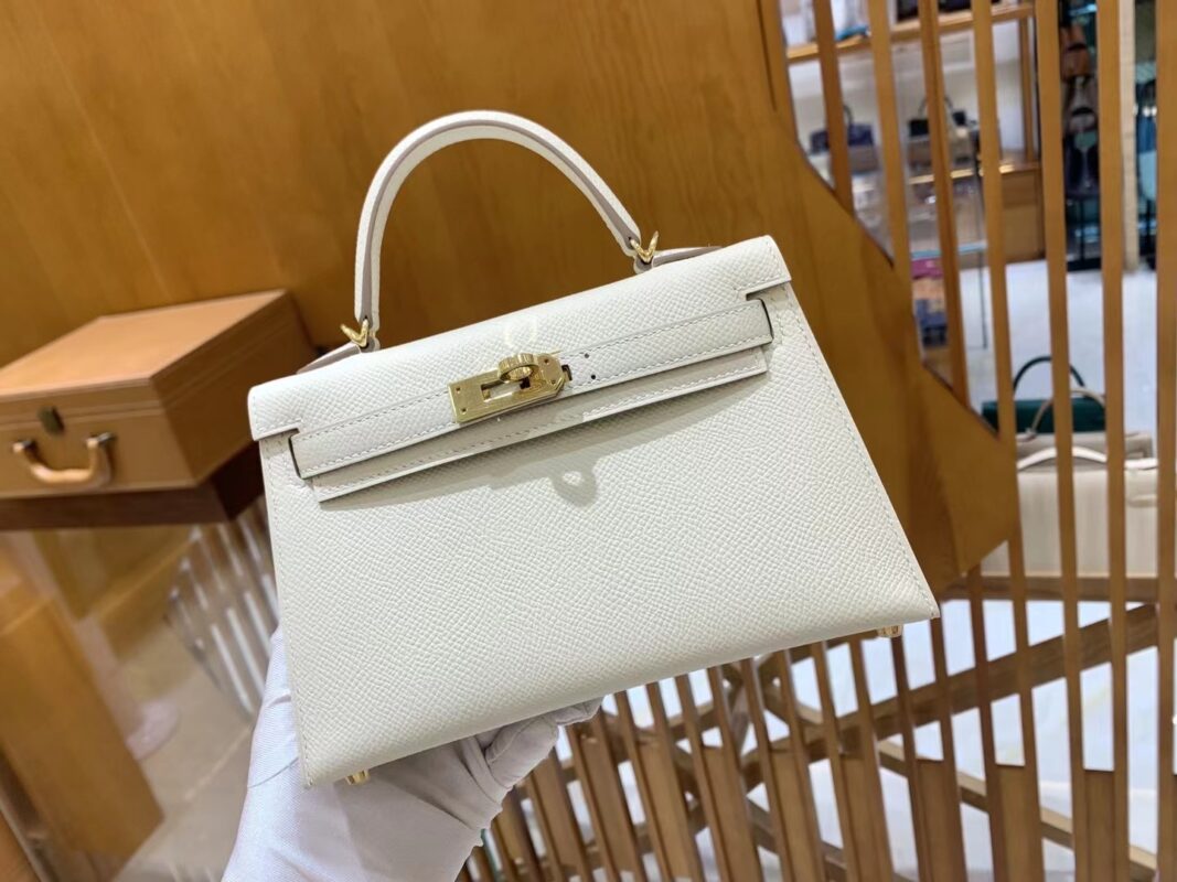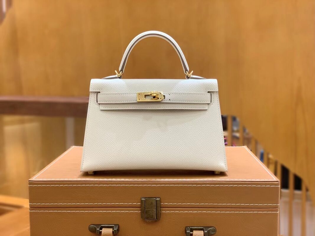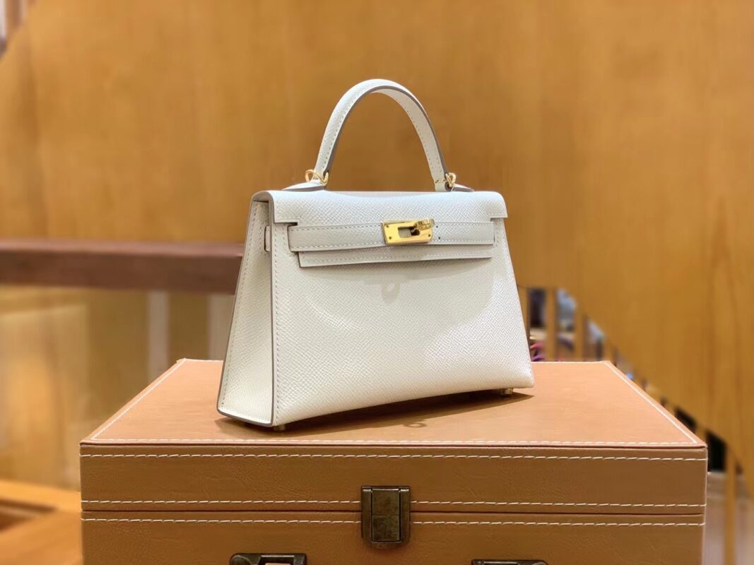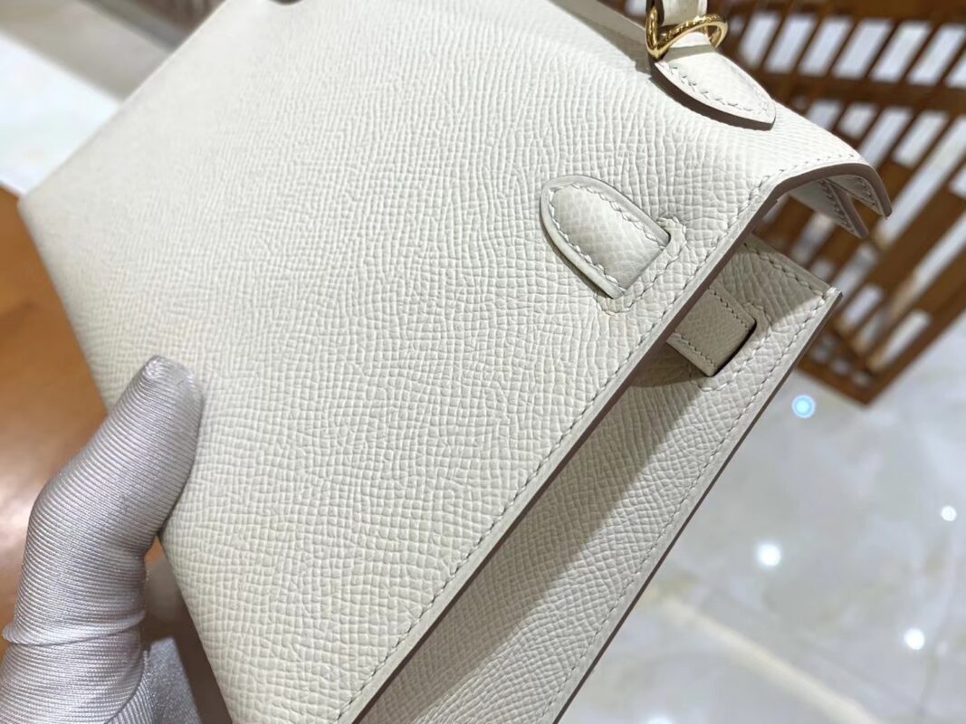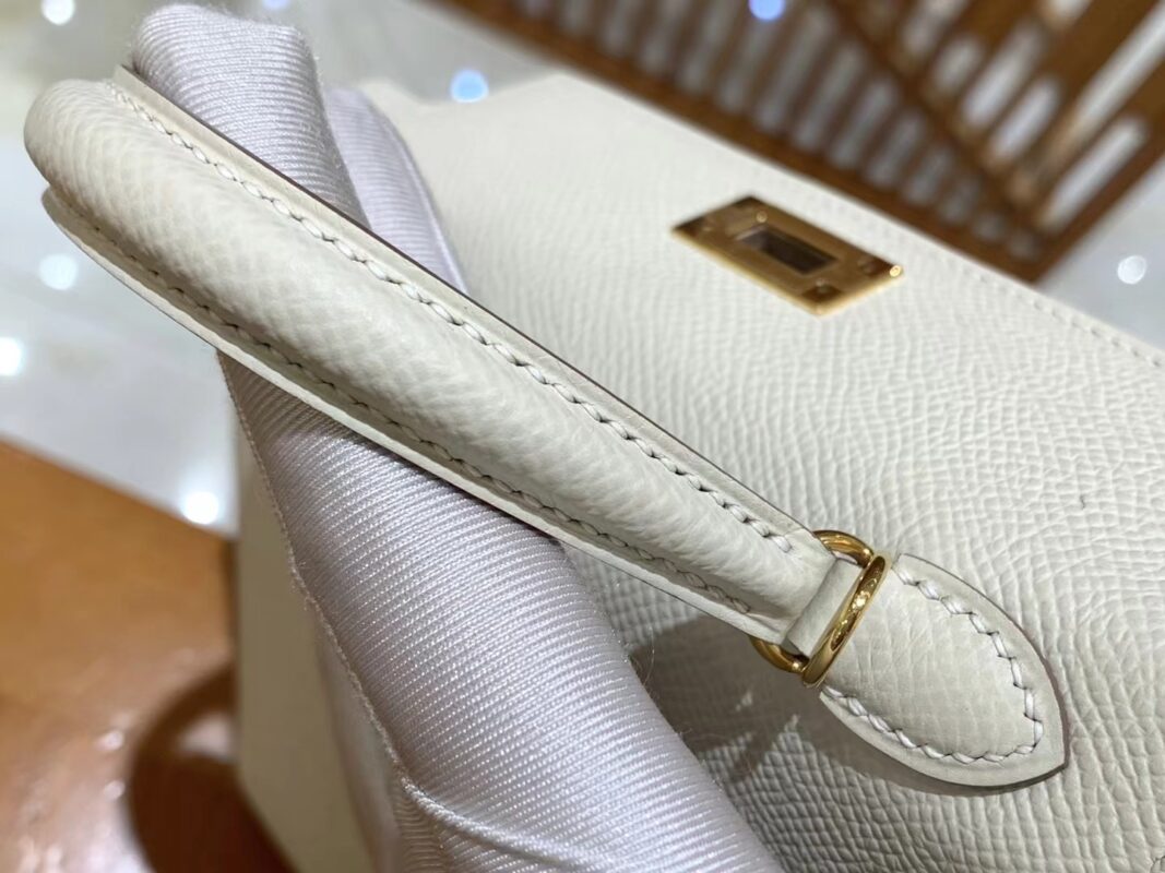 Mini Kelly Second Generation Craie Platinum BuckleImported Epsom leather, imported raw materials, all hand sewn