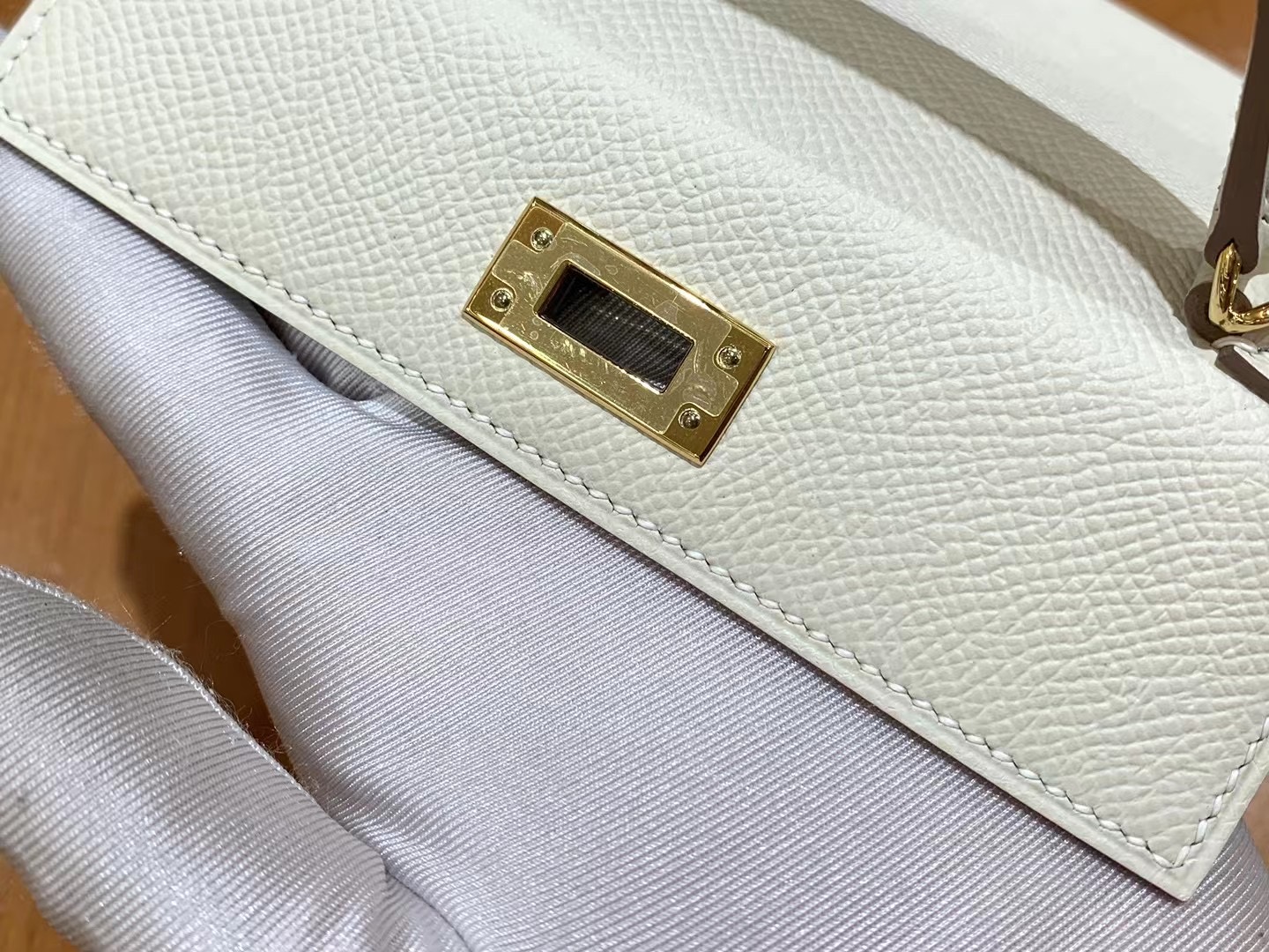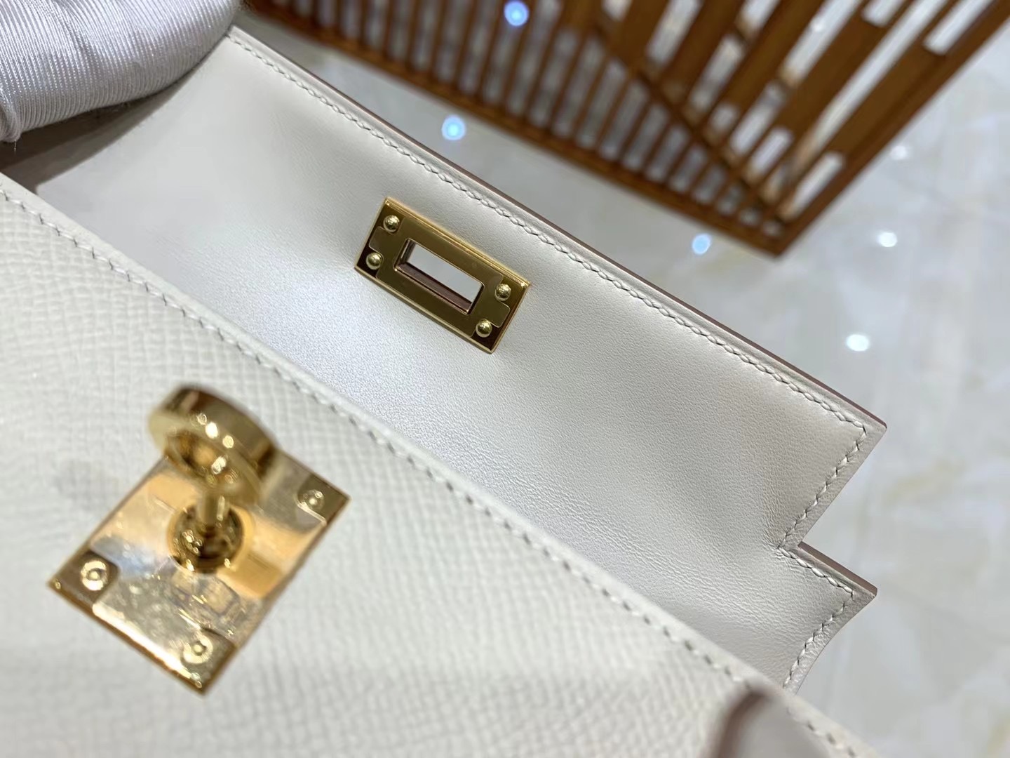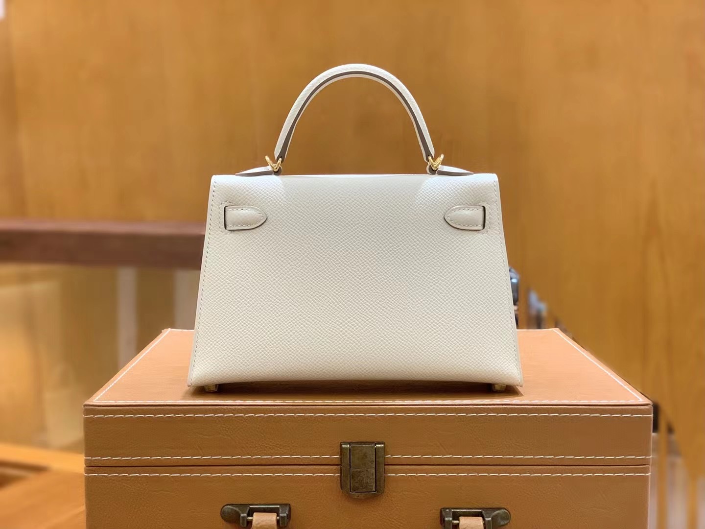 Mini Kelly Second Generation Craie Platinum BuckleImported Epsom leather, imported raw materials, all hand sewn