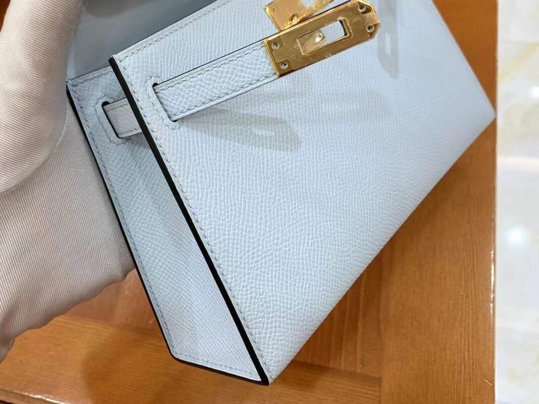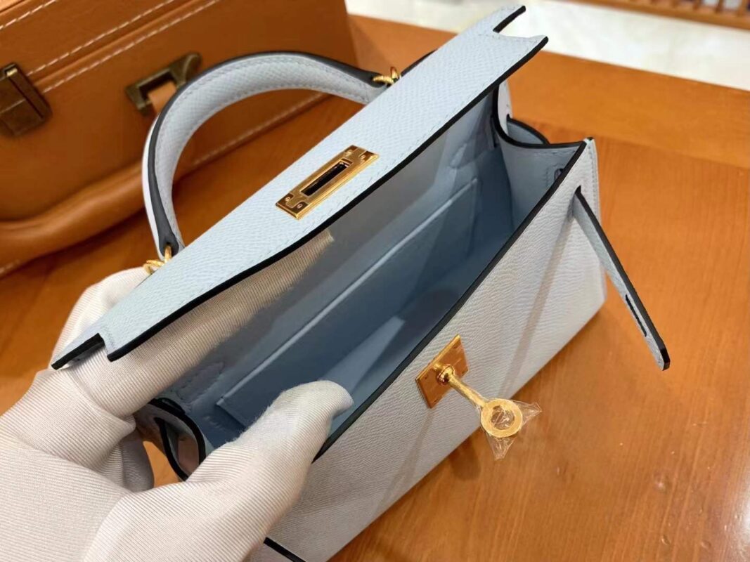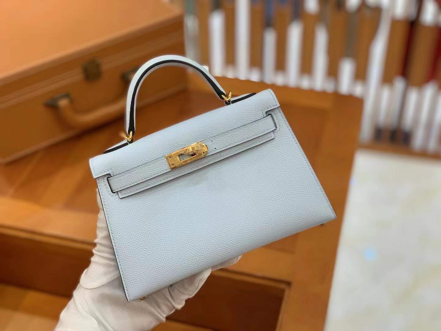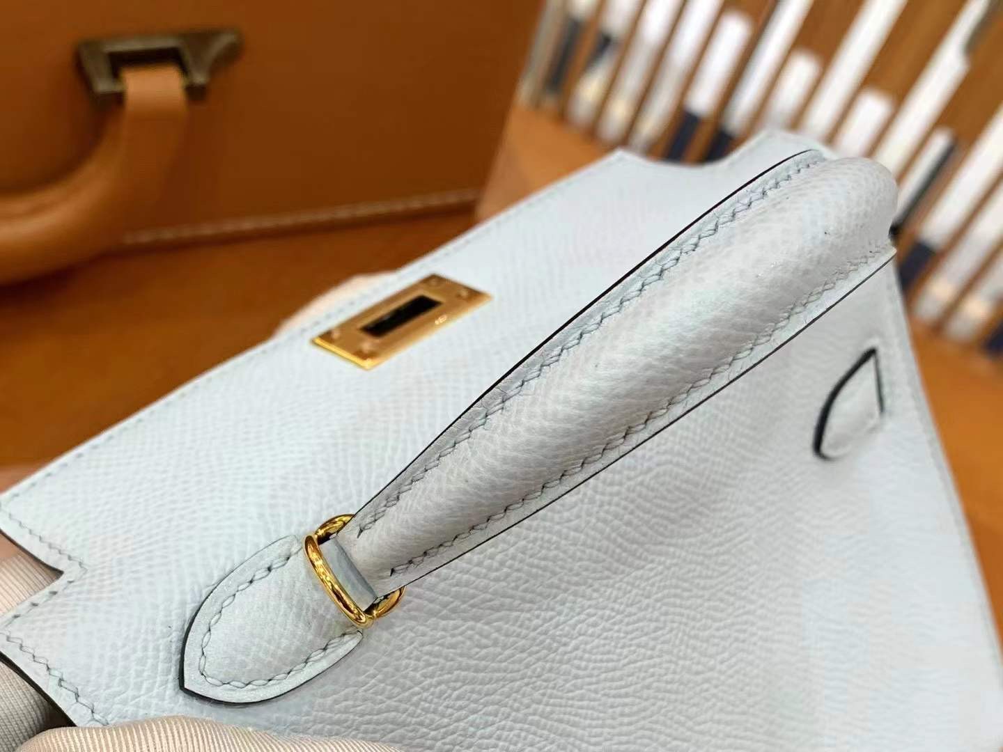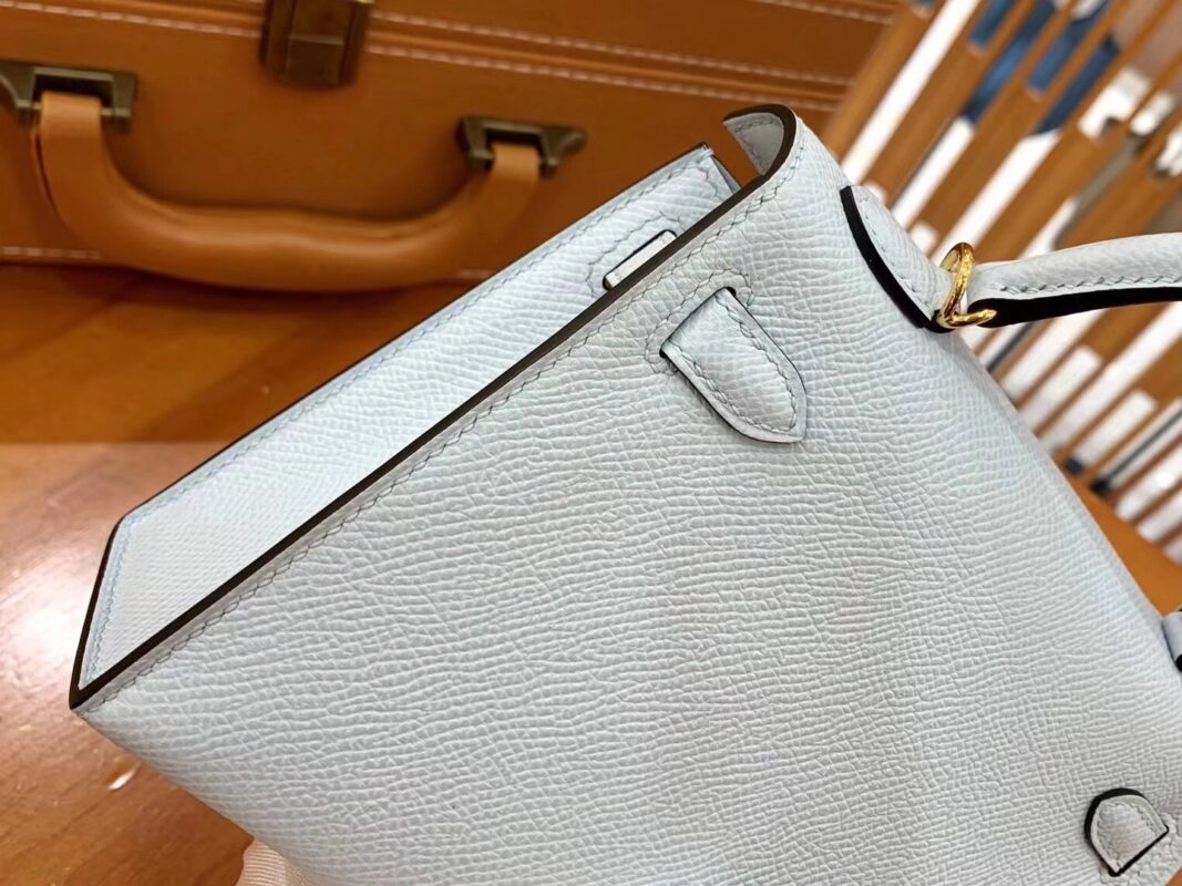 Mini Kelly II 19cm Holy Grail Blue Imported Epsom cowhide, French beeswax thread, 100% hand-sewn