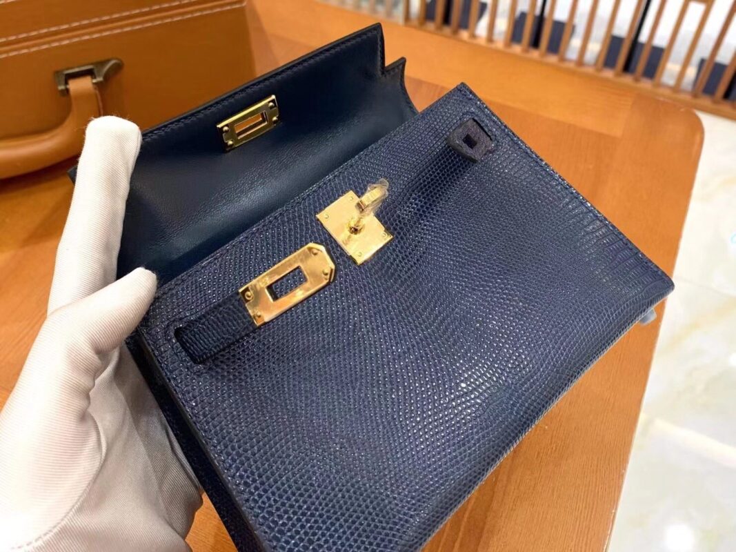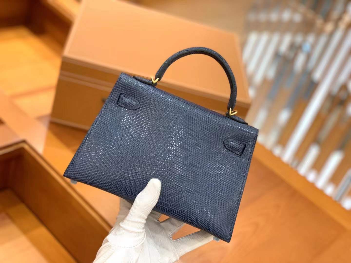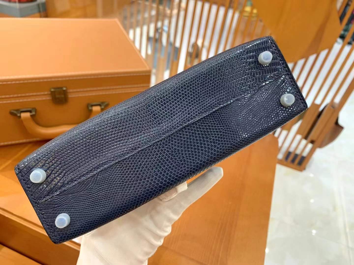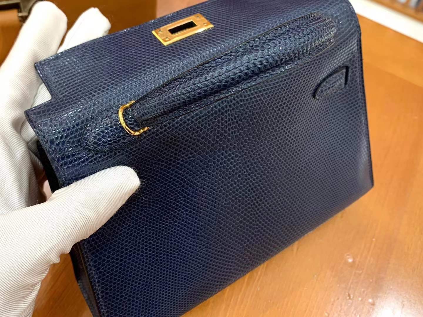 Mini Kelly II 19cm Midnight Blue Imported wild lizard skin. Hand-sewn