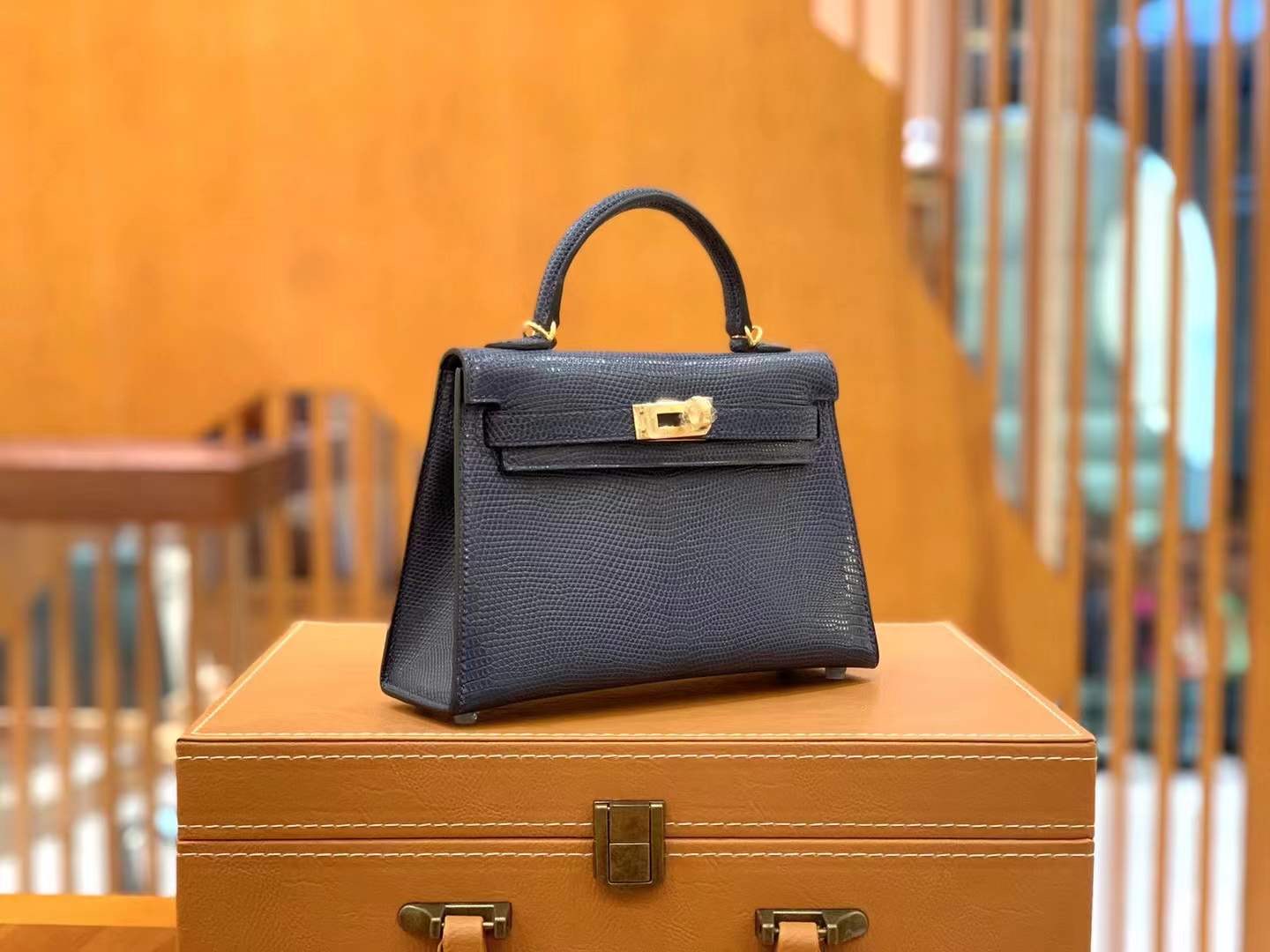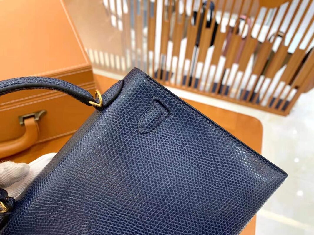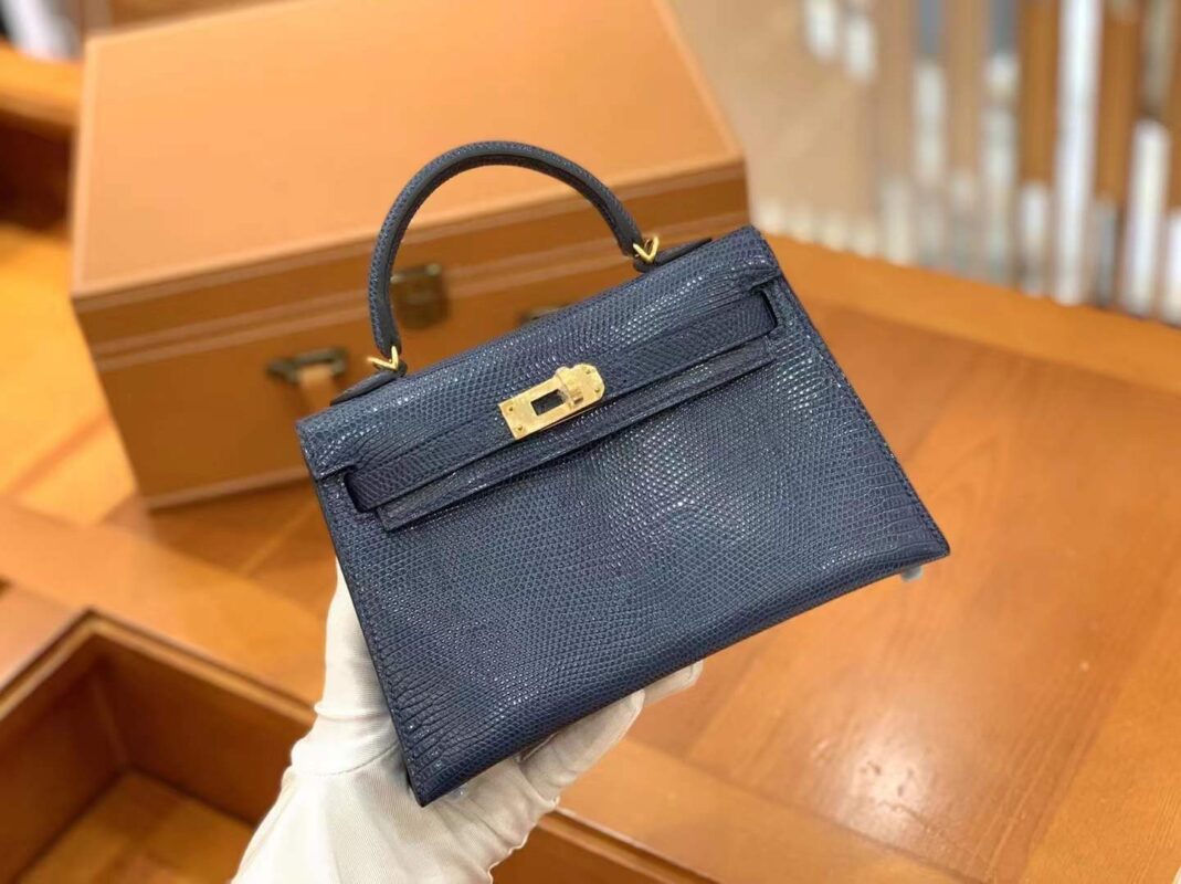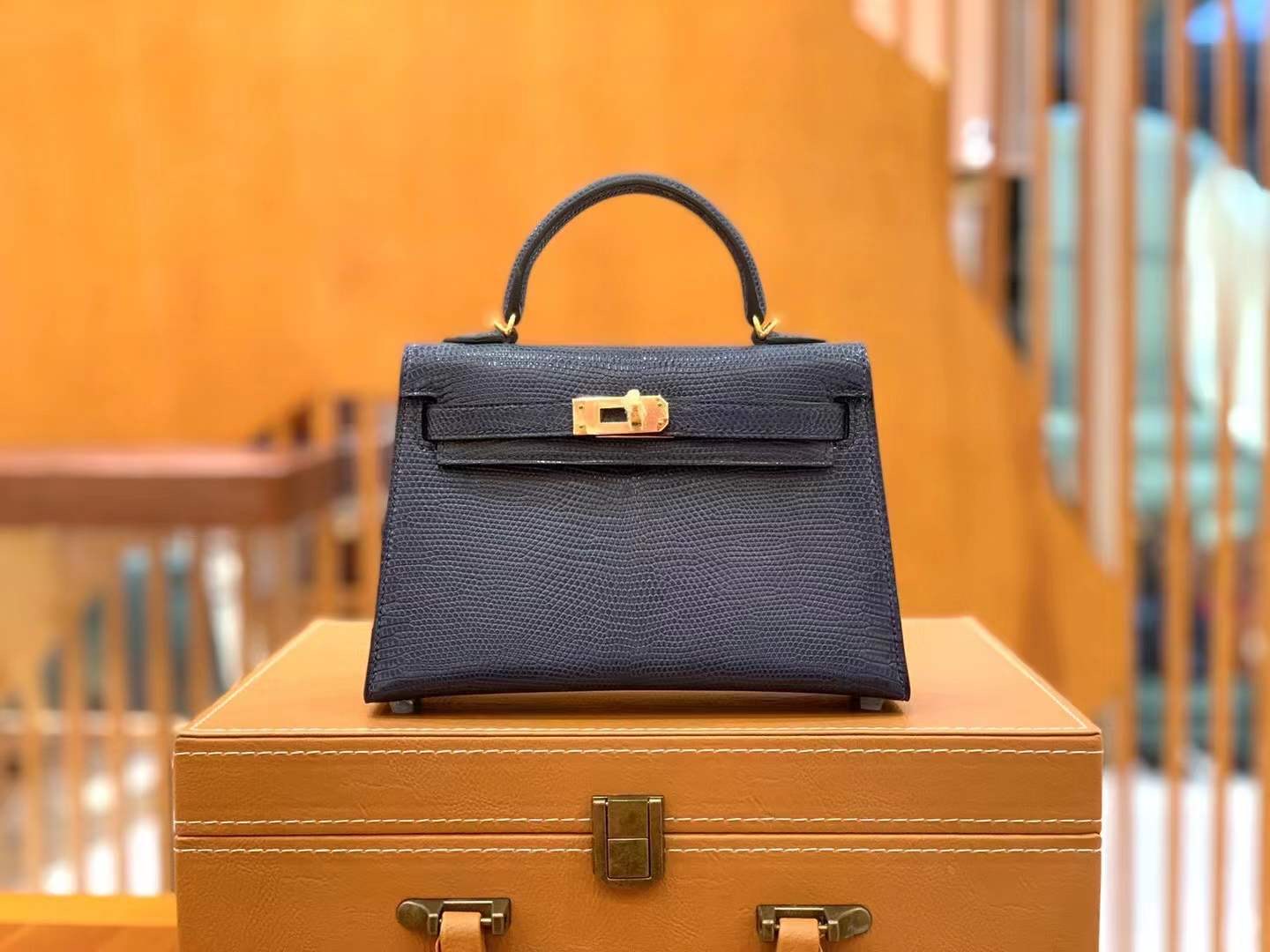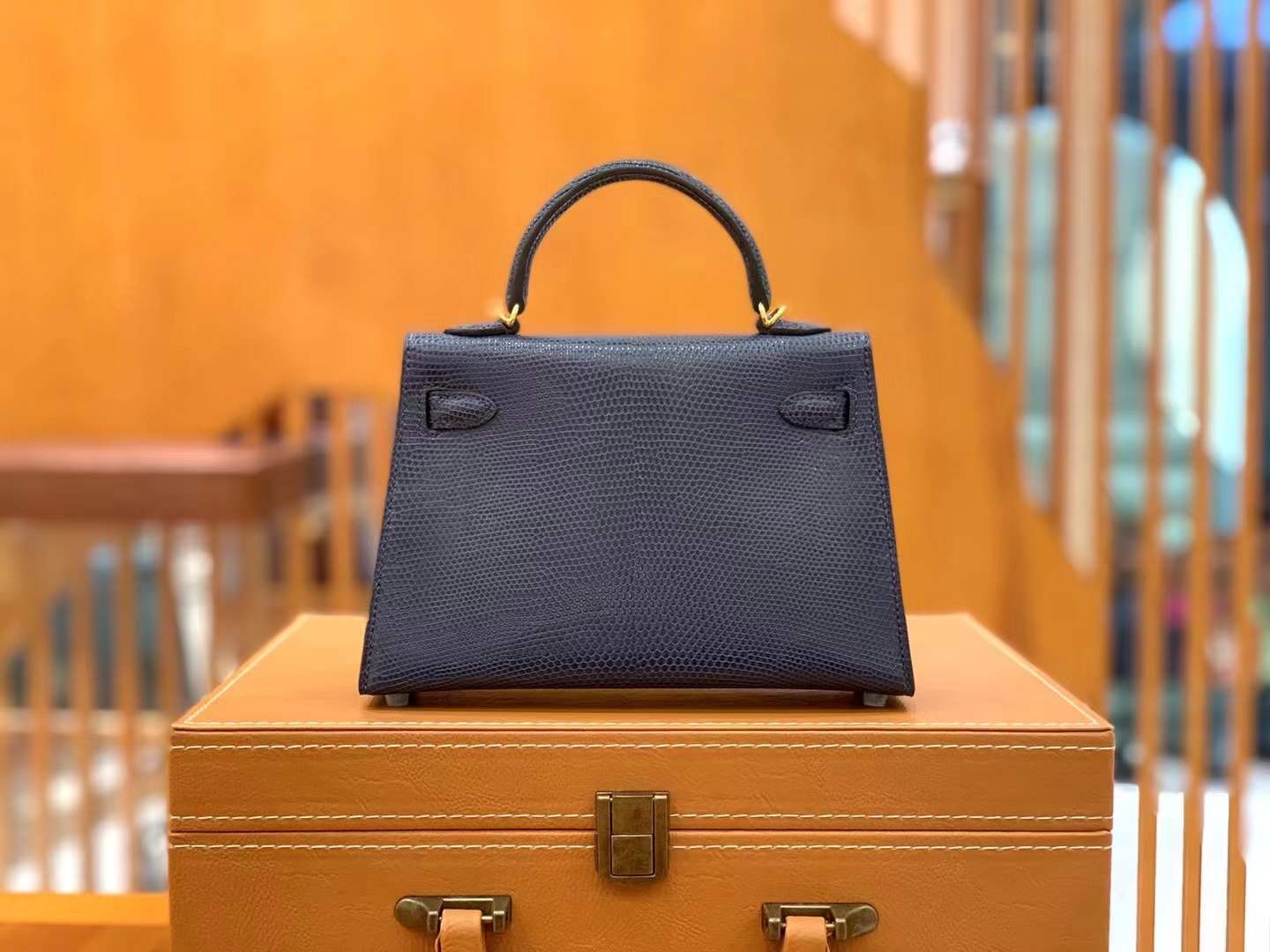 Mini Kelly II 19cm Midnight Blue Imported wild lizard skin. Hand-sewn