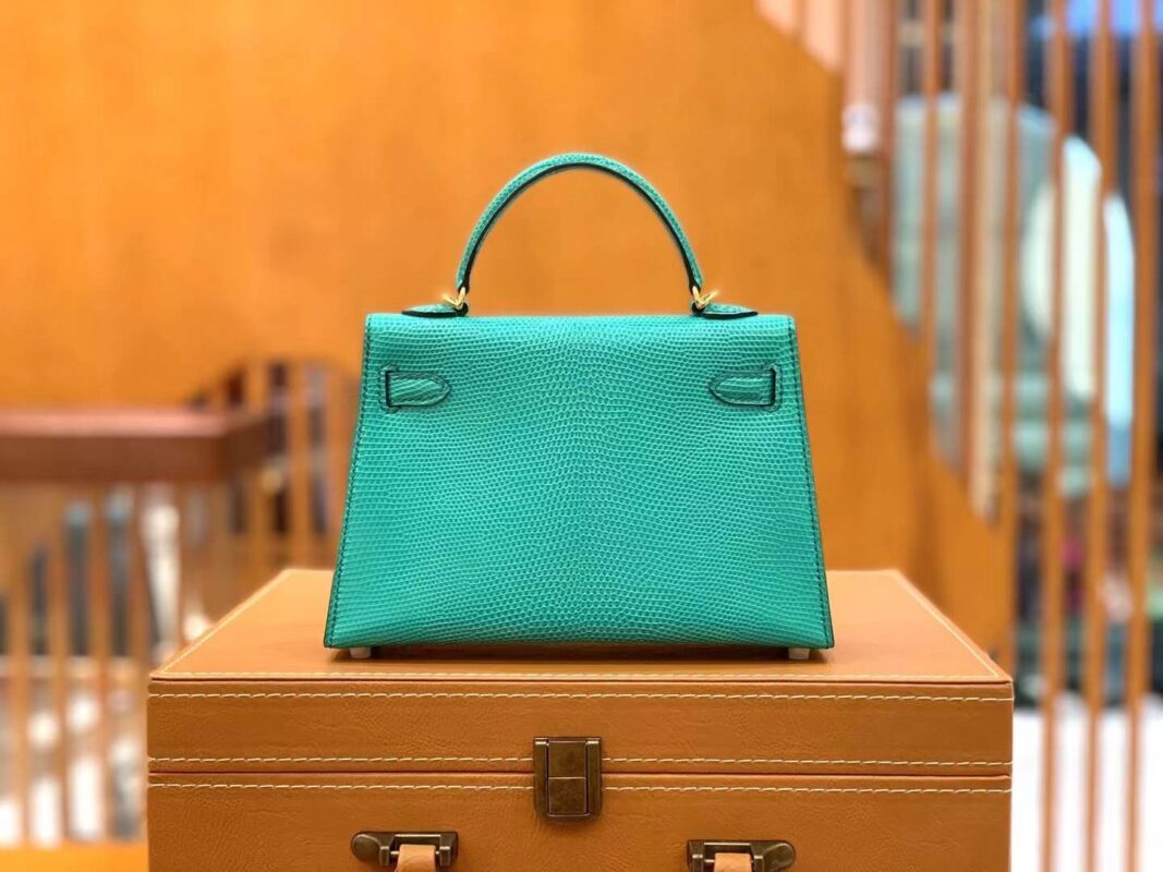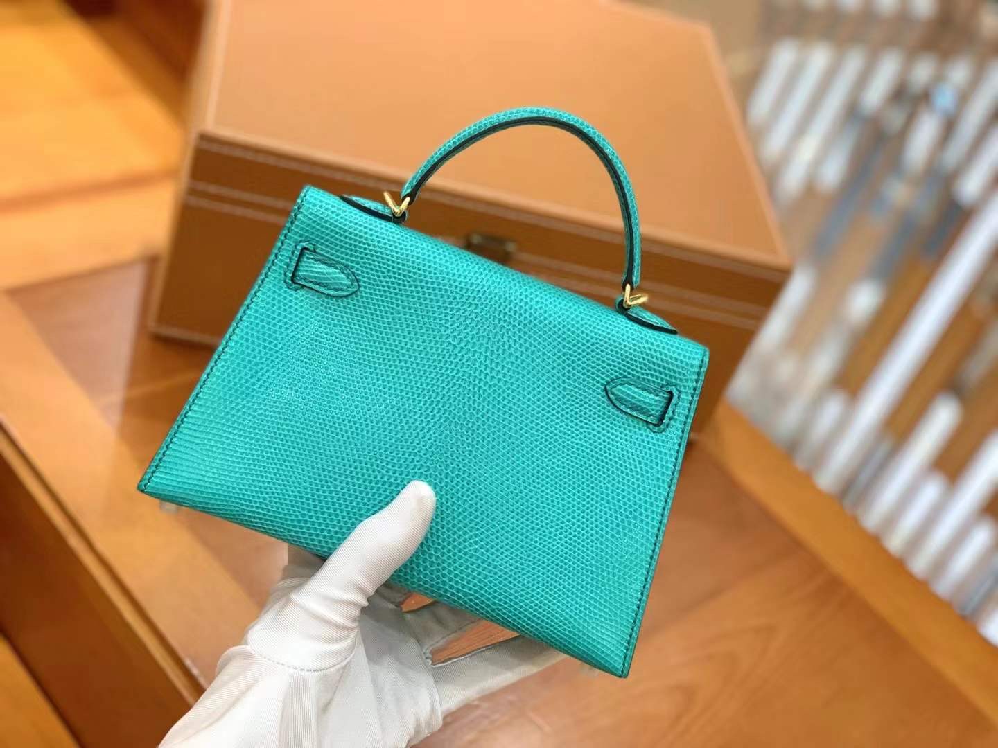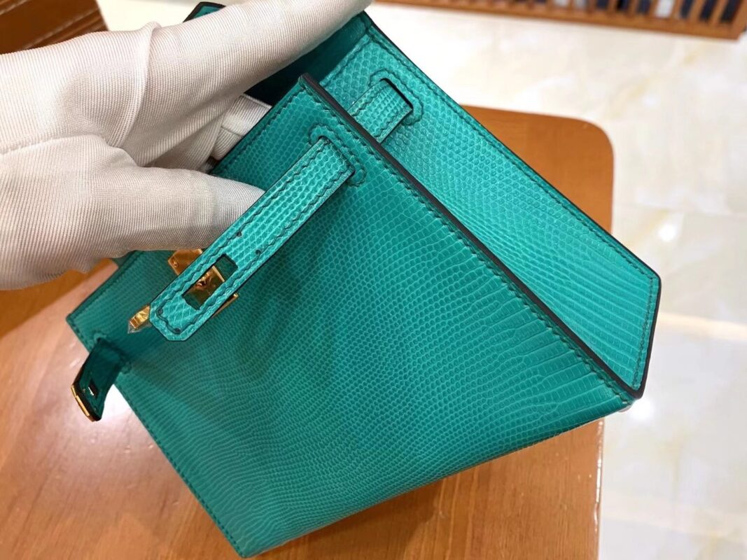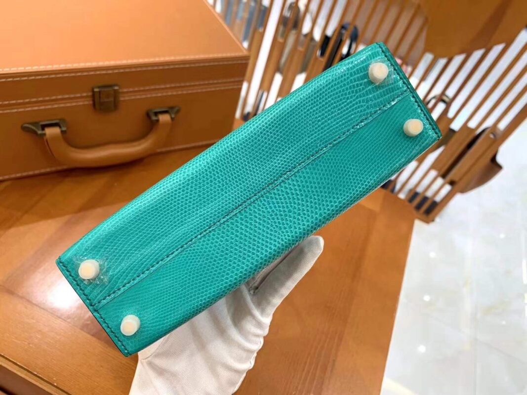 Mini Kelly II 19cm Verona Green Imported wild lizard skin. Hand-sewn