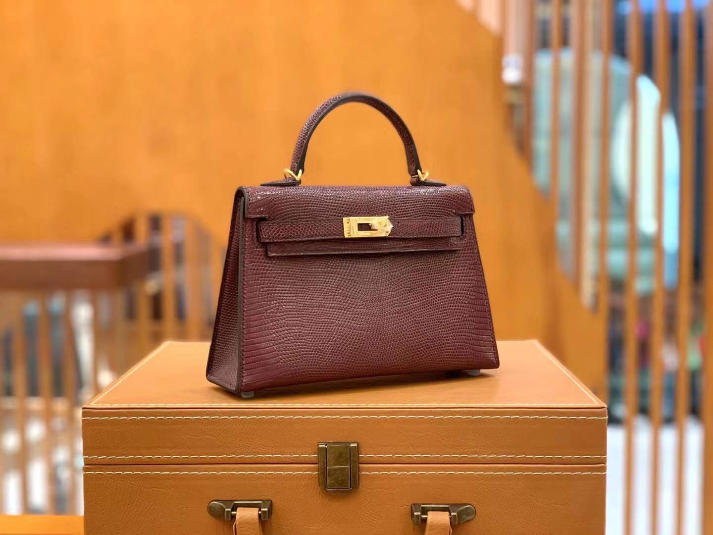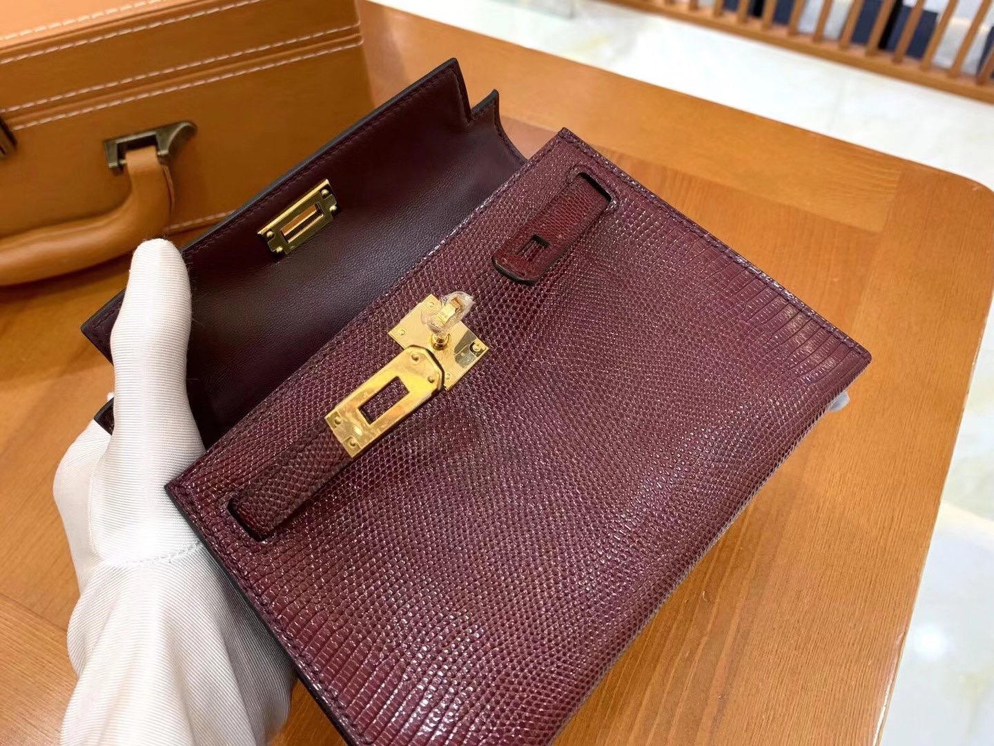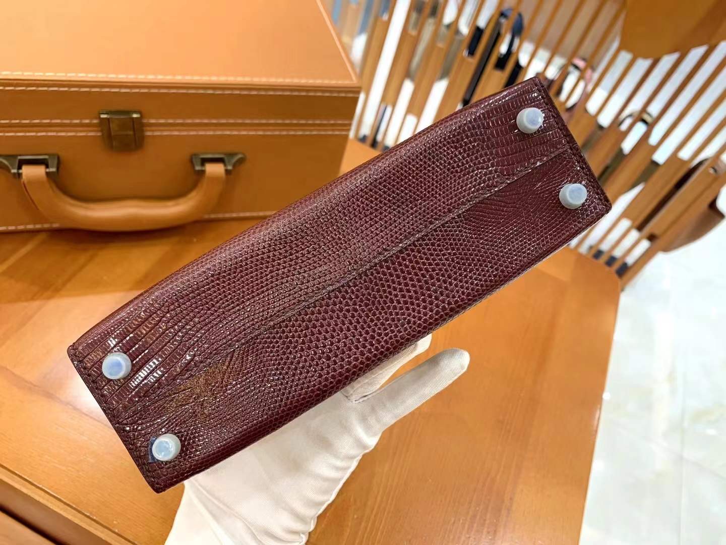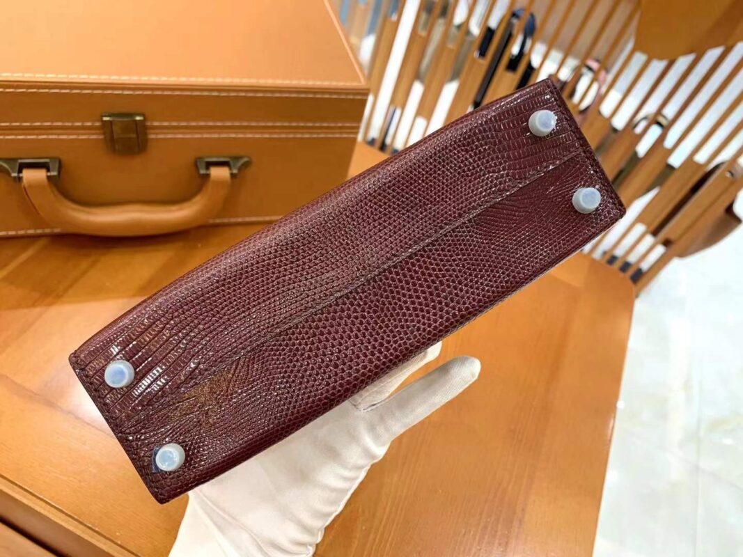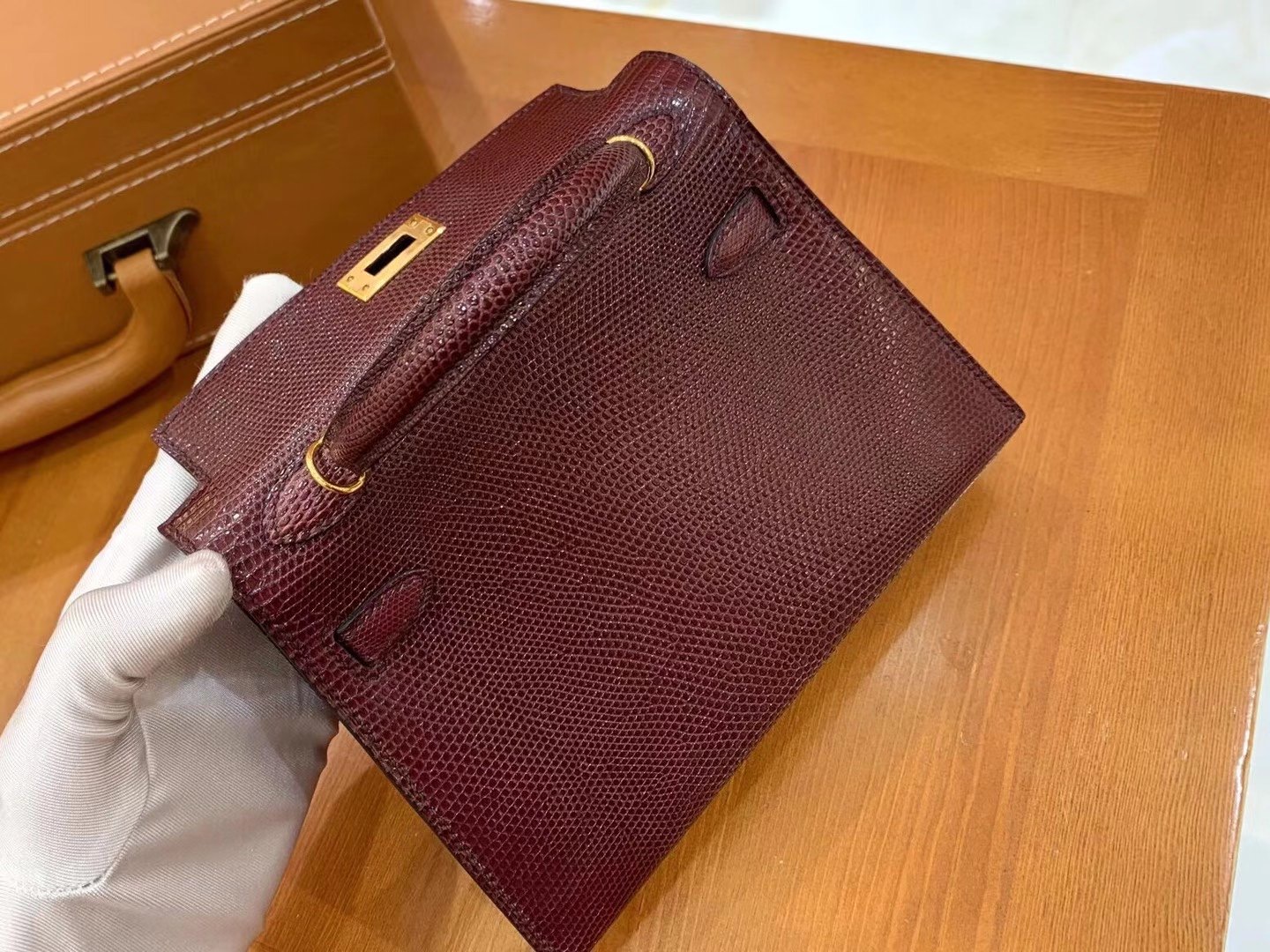 Mini Kelly II 19cm Wine Red Imported wild lizard skin. Hand-sewn