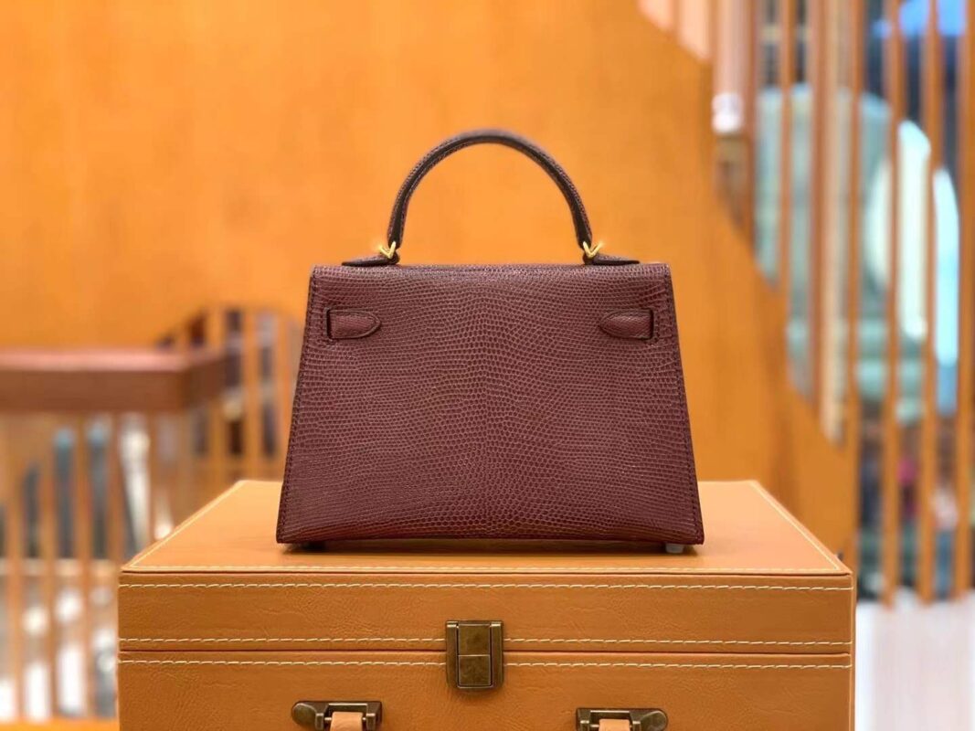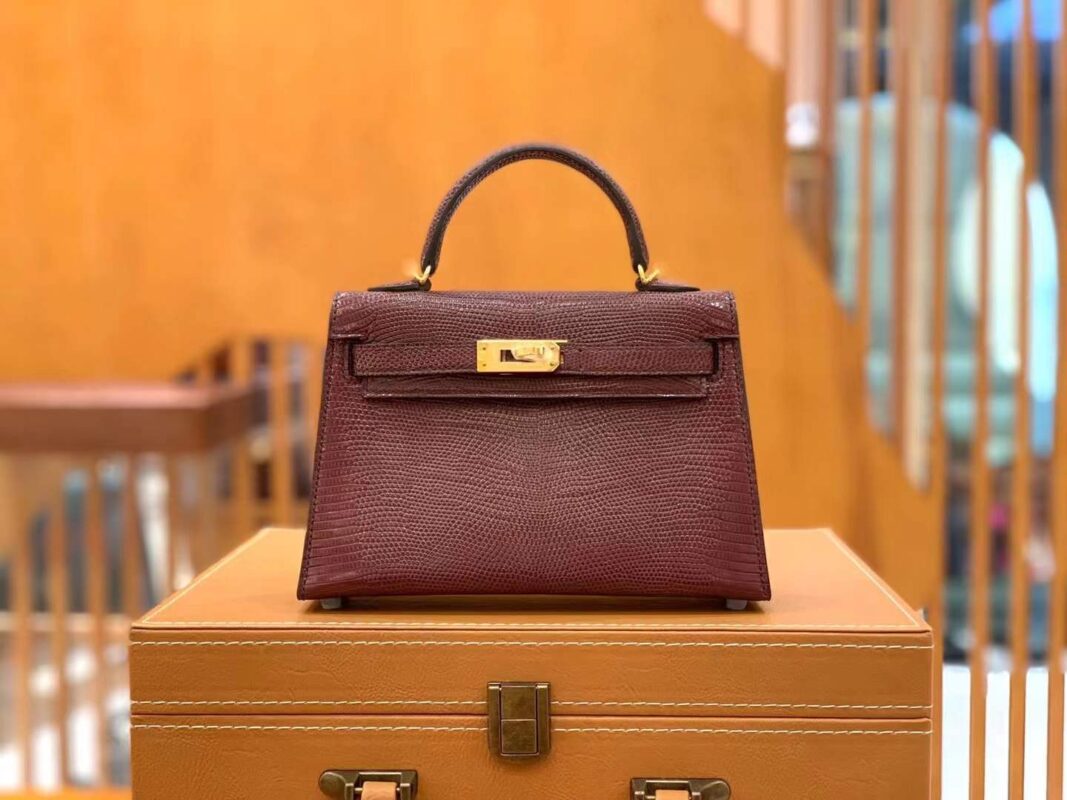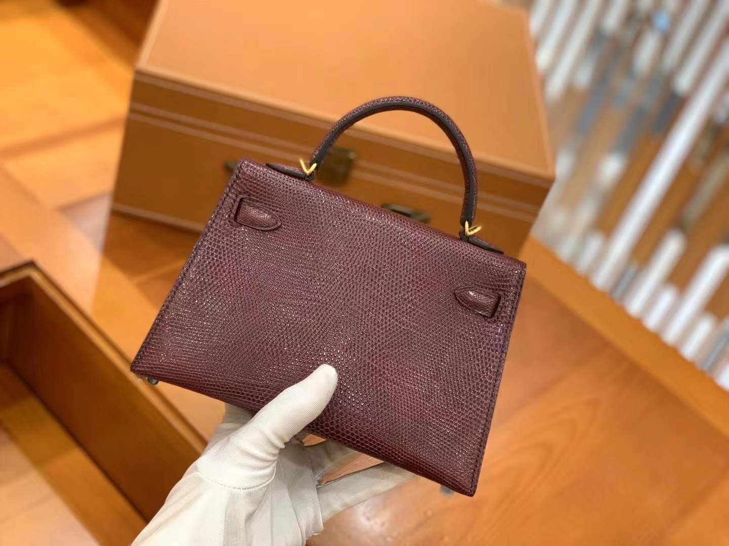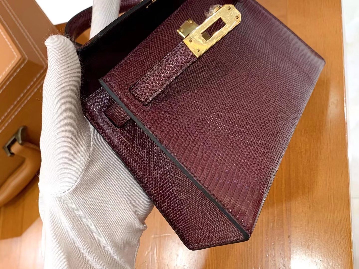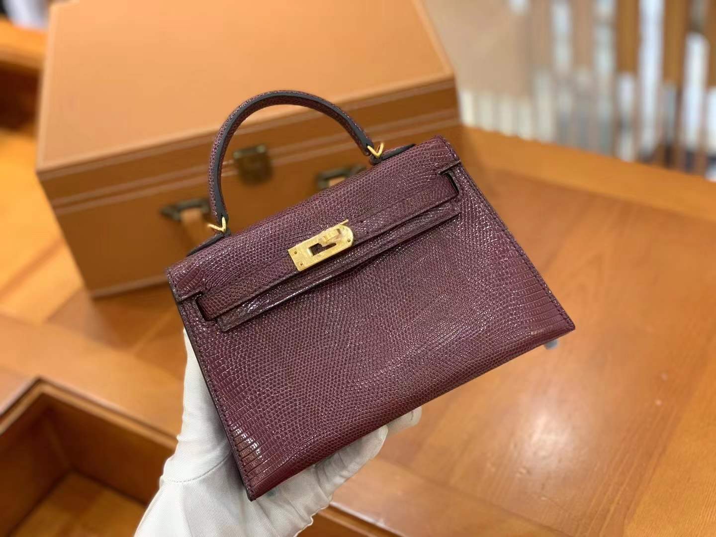 Mini Kelly II 19cm Wine Red Imported wild lizard skin. Hand-sewn