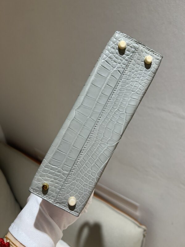 Mini kelly 2 19cm second generation American alligator Alligator #square American alligator Alligator matte Matte pearl gray spell 3Q powder