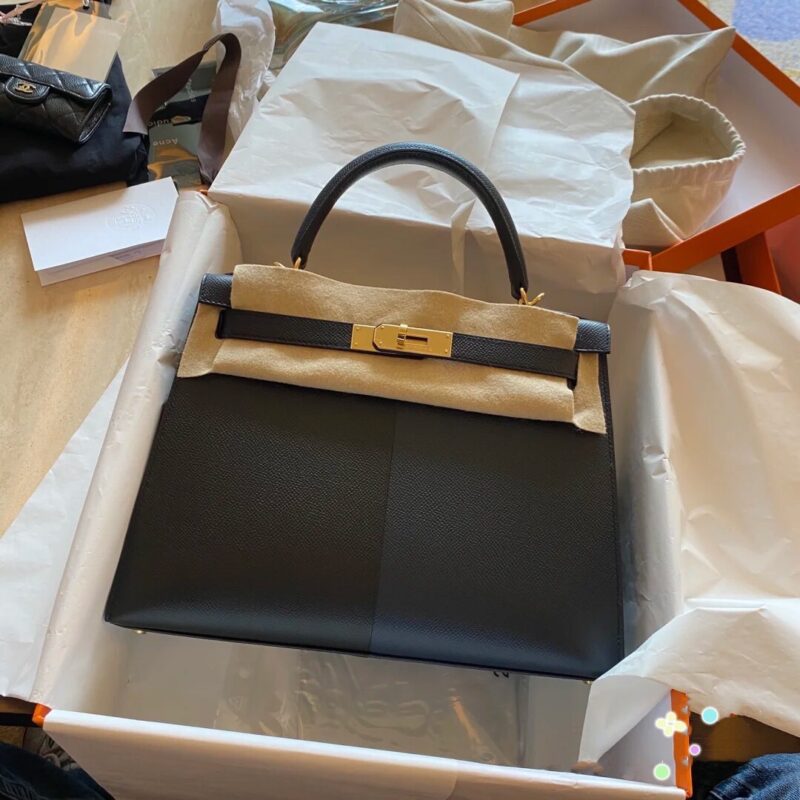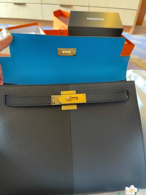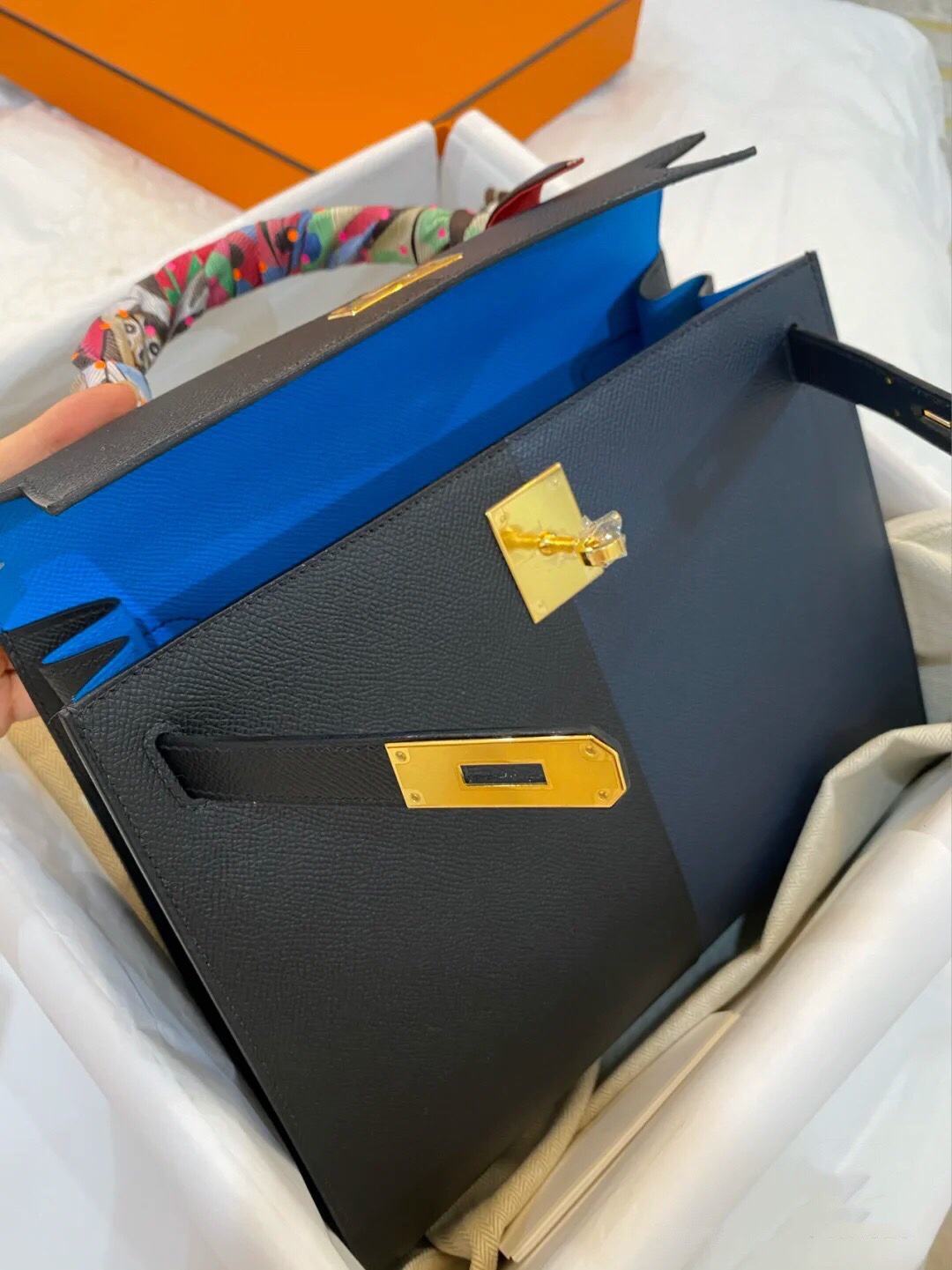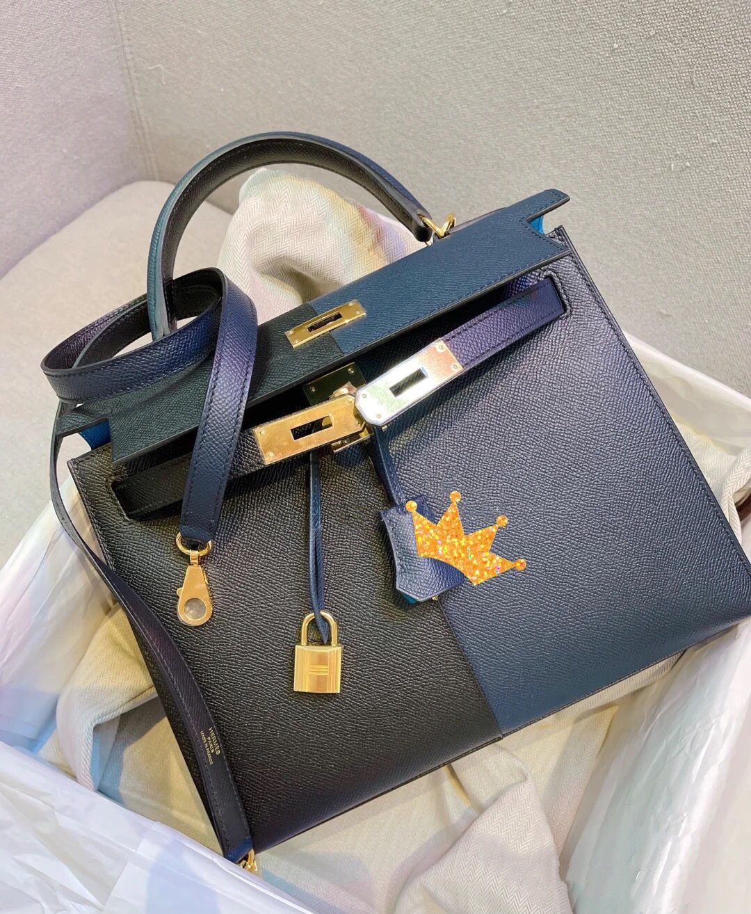 Mini Kelly Casaque Epsom in Noir&Indigo&Bleu Frida