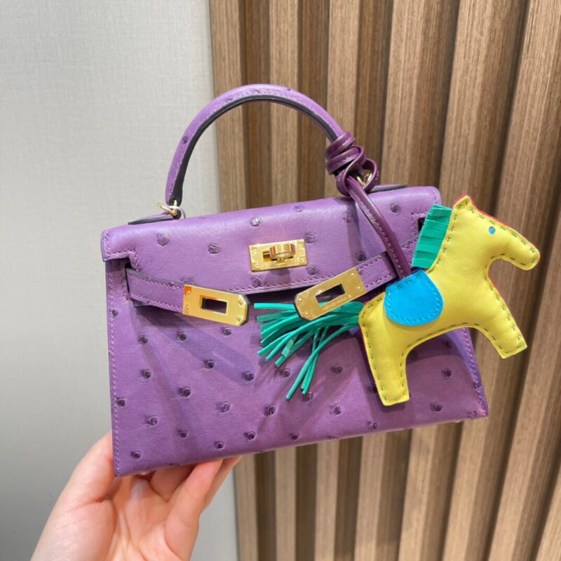 Mini Kelly 2nd Generation Ostrich Leather P9 Sea Anemone Purple