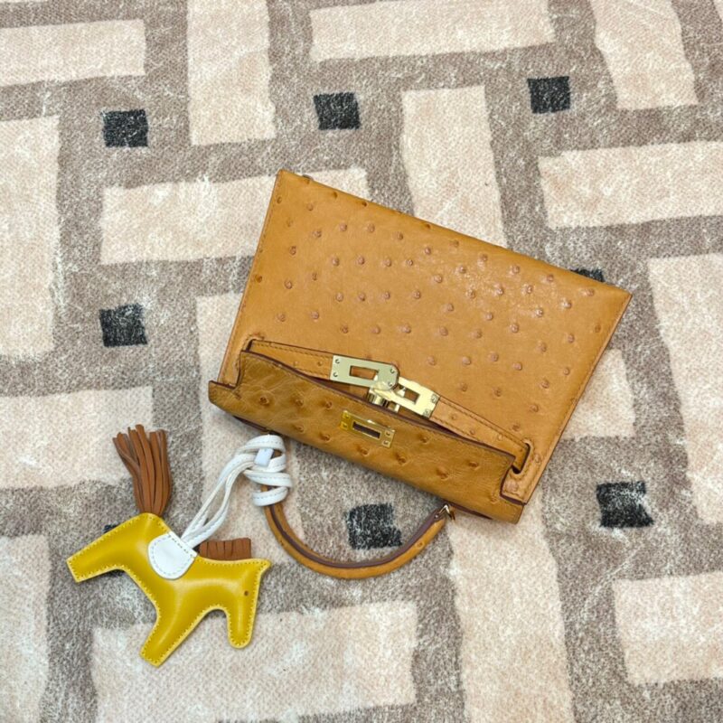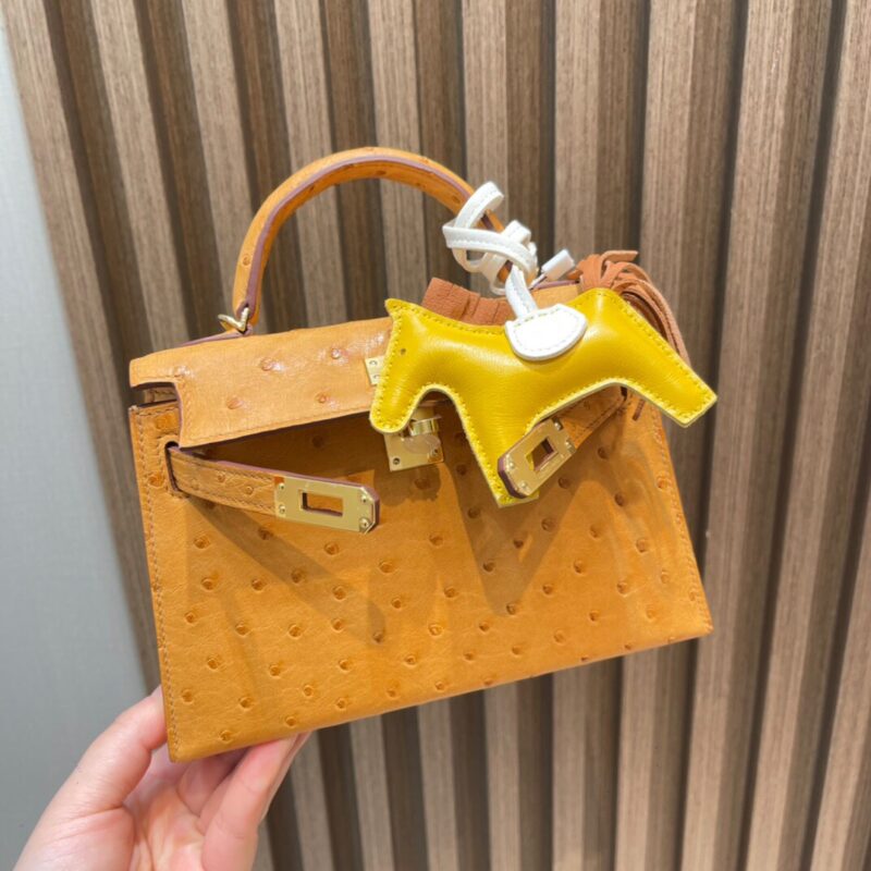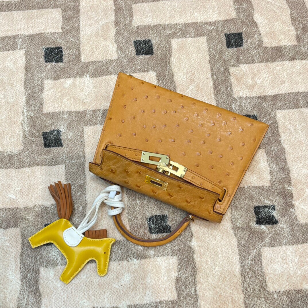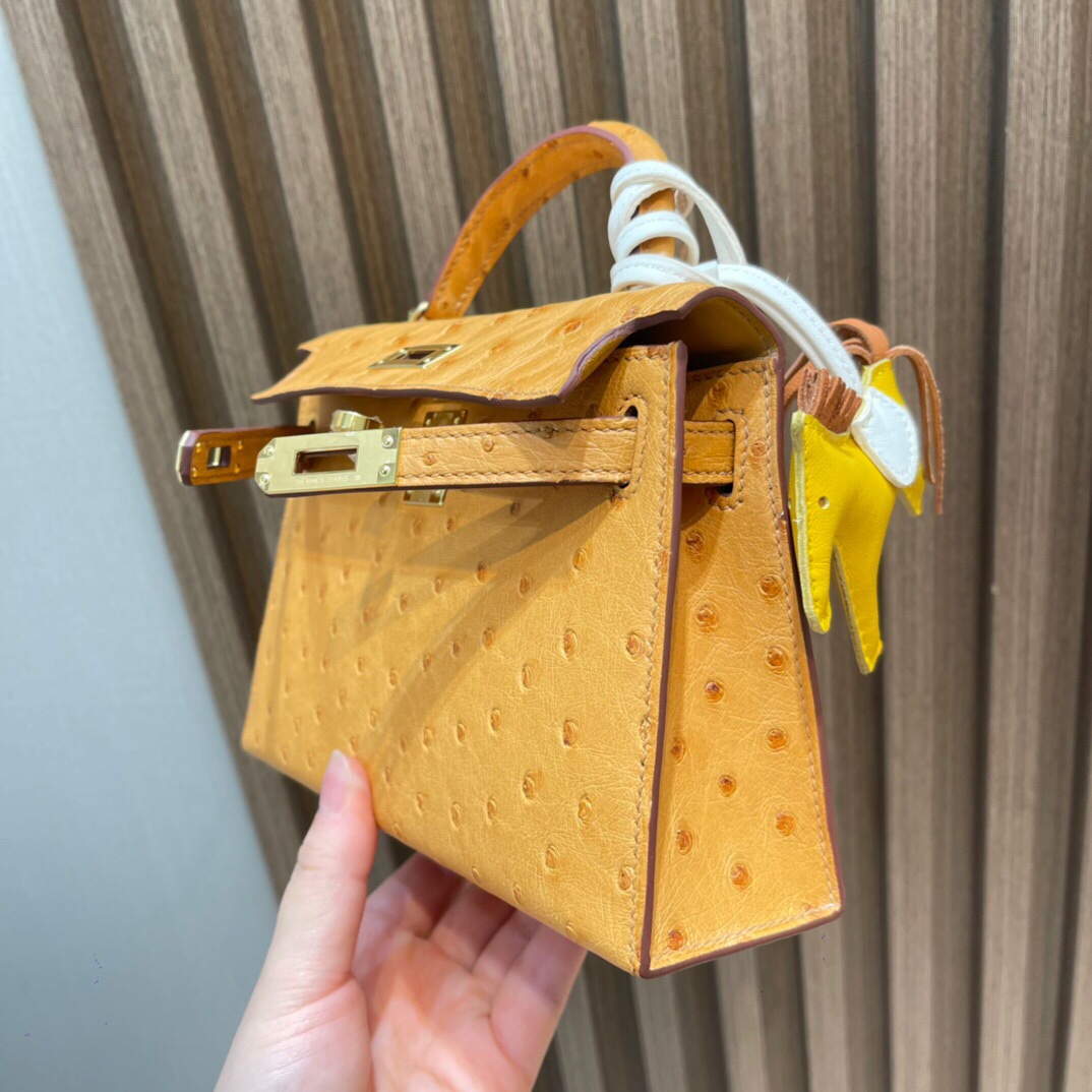 Mini Kelly 2nd Generation Ostrich Skin 22 Safran